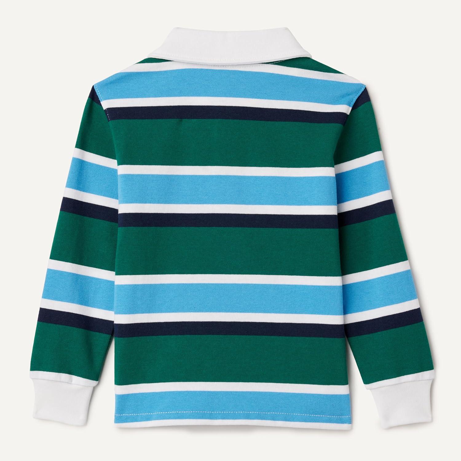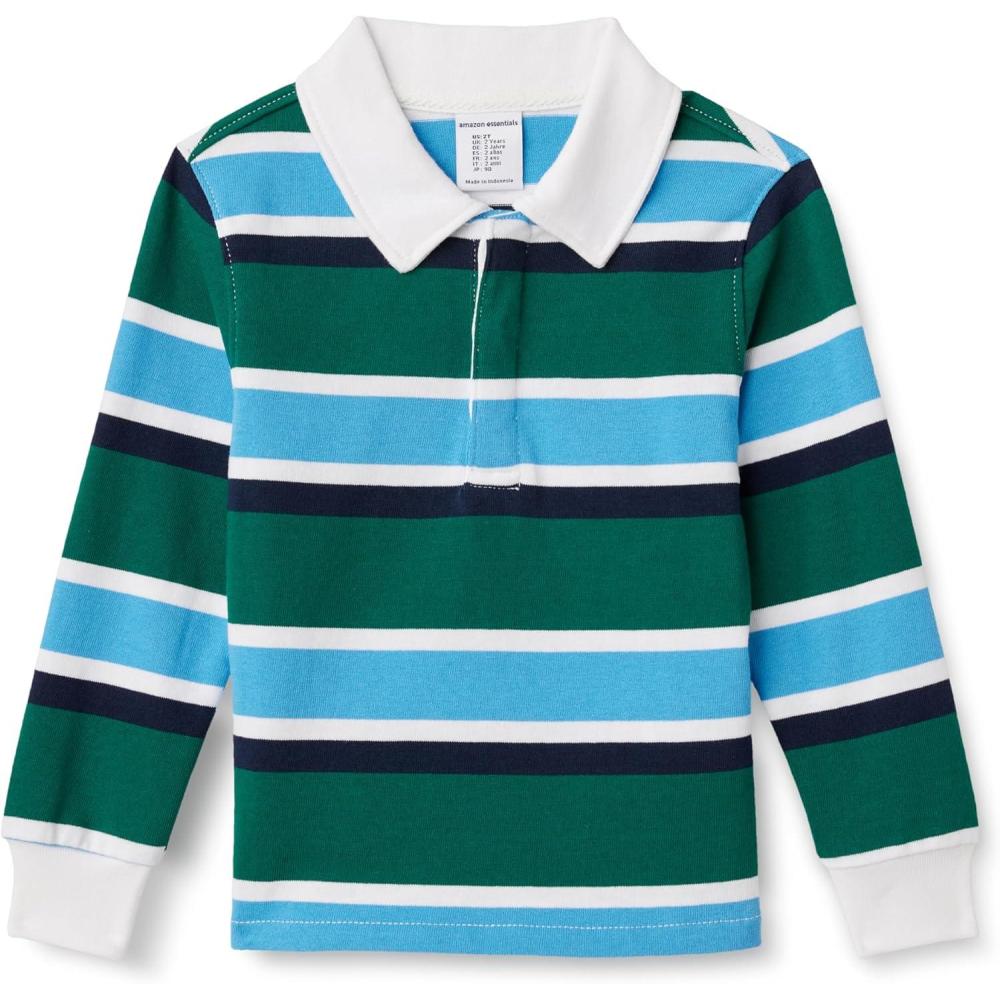 Amazon Essentials Boys and Toddlers’ Rugby Polo Shirt(Dark Emerald Green Blue Block Stripe)
