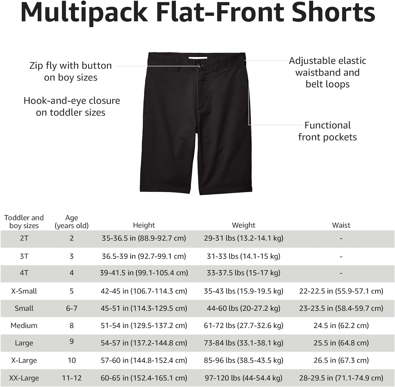 Amazon Essentials Boys and Toddlers’ Uniform Woven Flat-Front Shorts, Multipacks(3 Black)