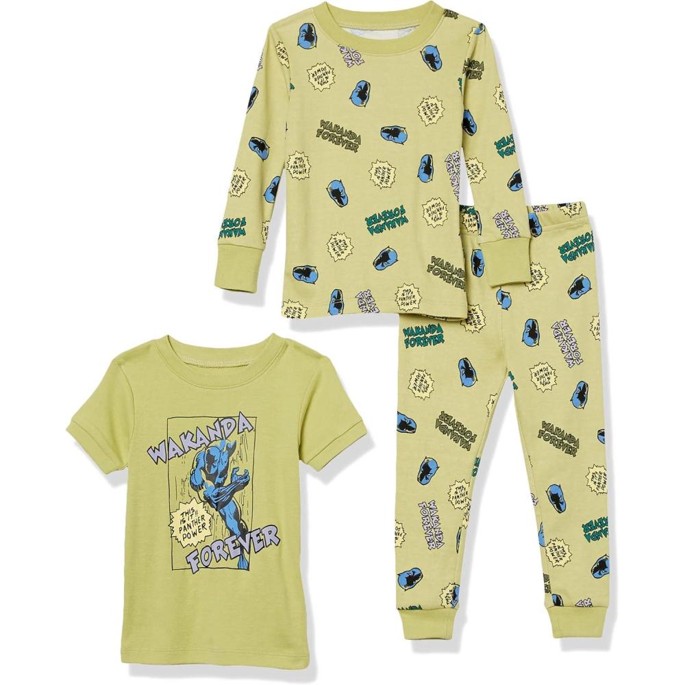 Amazon Essentials Boys Snug-Fit Pajama Sleep Sets, 3-Piece(Marvel Black Panther)