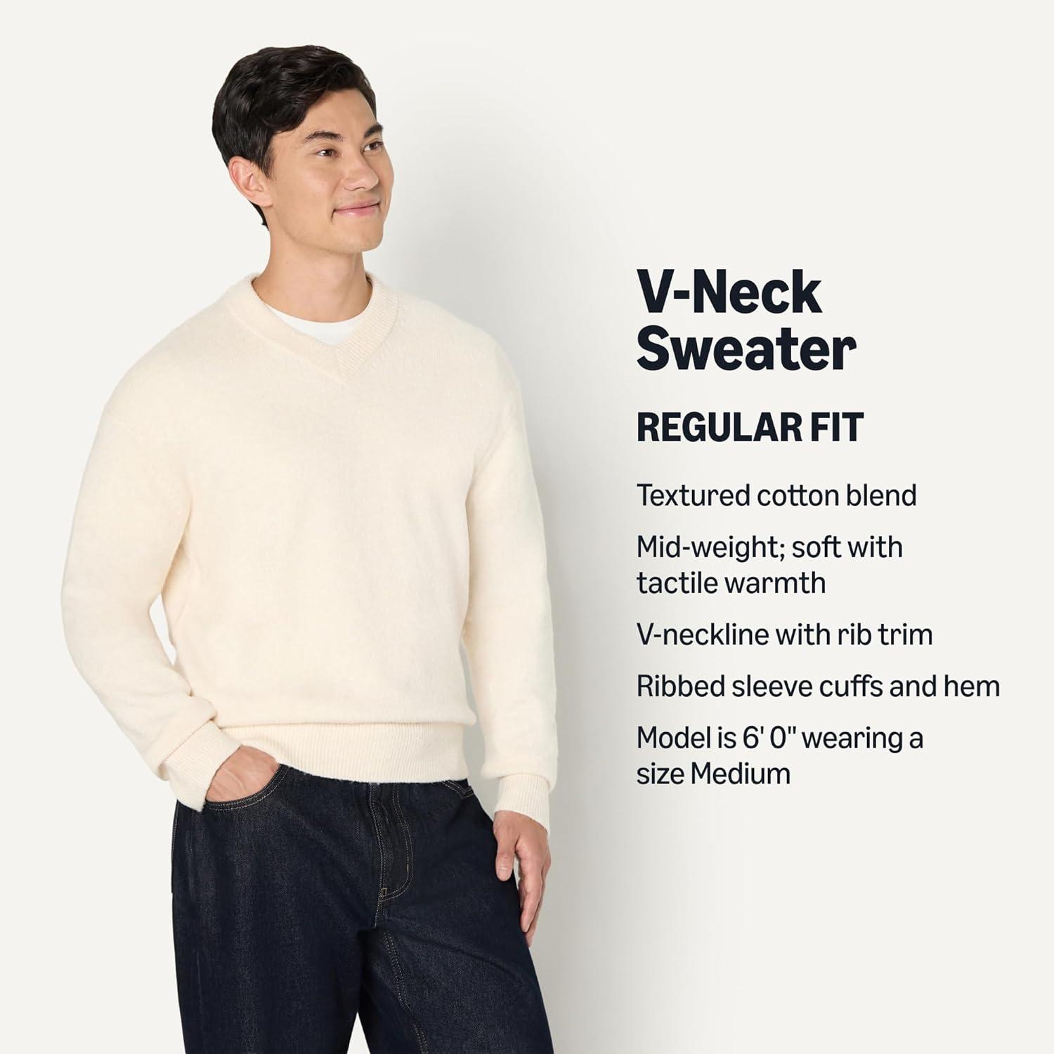 Amazon Essentials (Demi’s Pick) Men’s Regular-Fit Cotton Blend V-Neck Sweater(Oatmeal Heather)