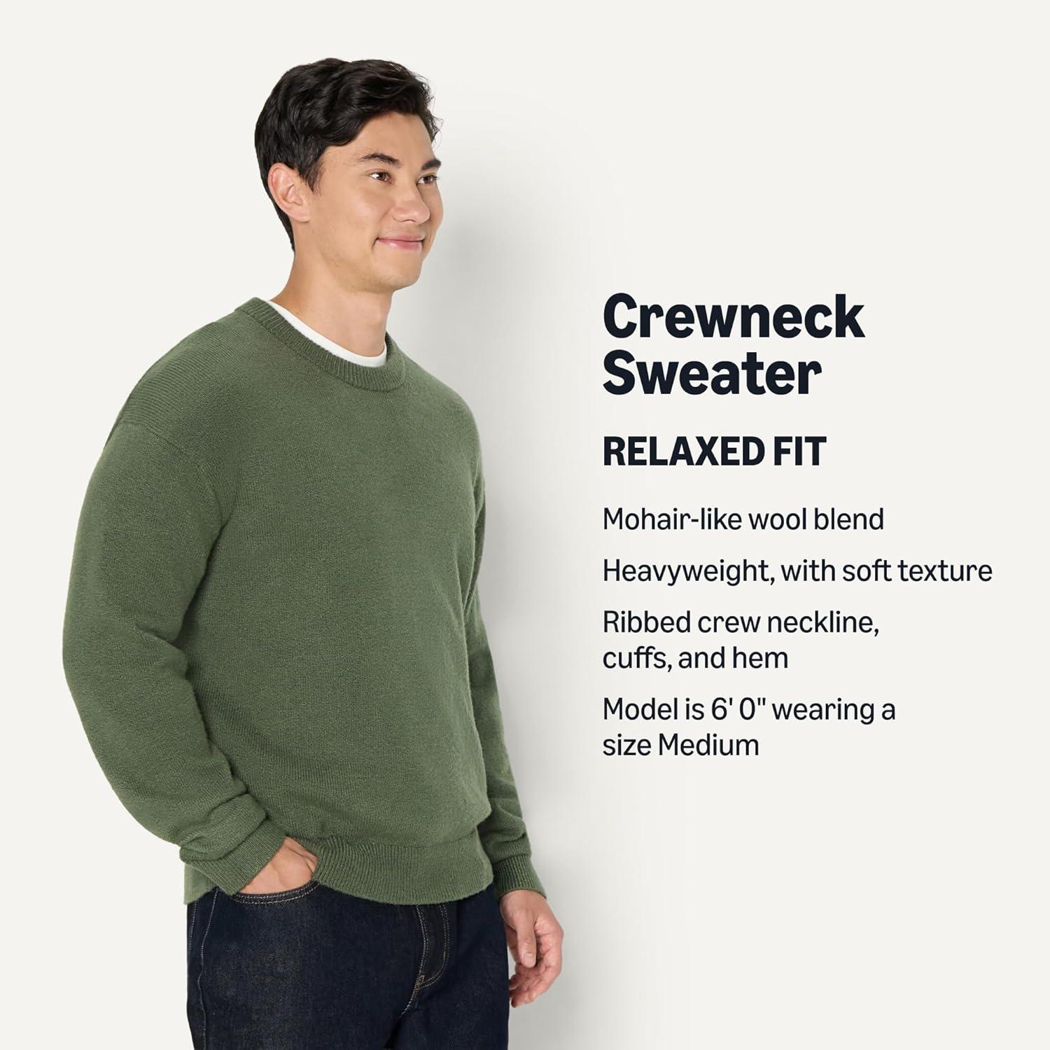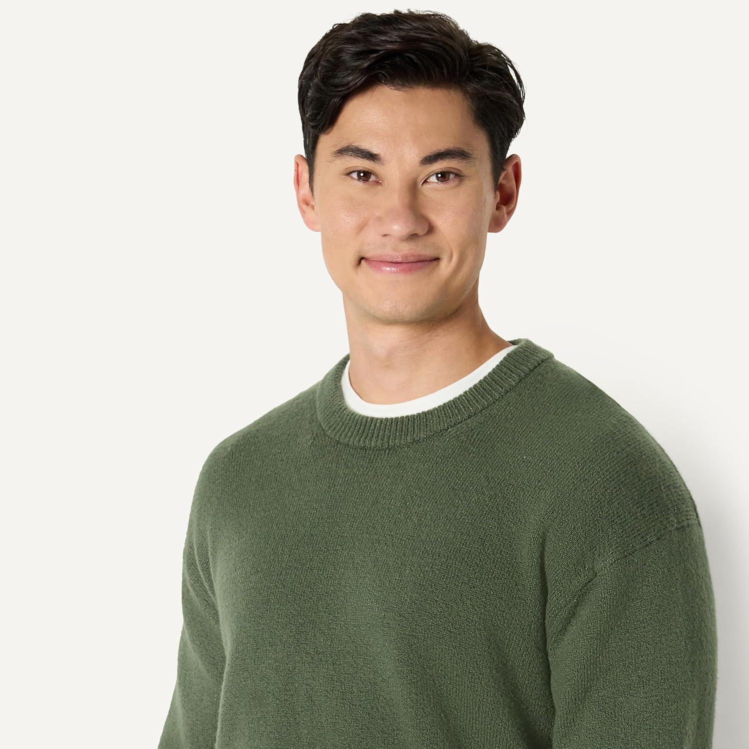 Amazon Essentials (Demi's Pick) Men's Relaxed-Fit Cotton Blend Textured Crewneck Pullover Sweater(Dark Olive)