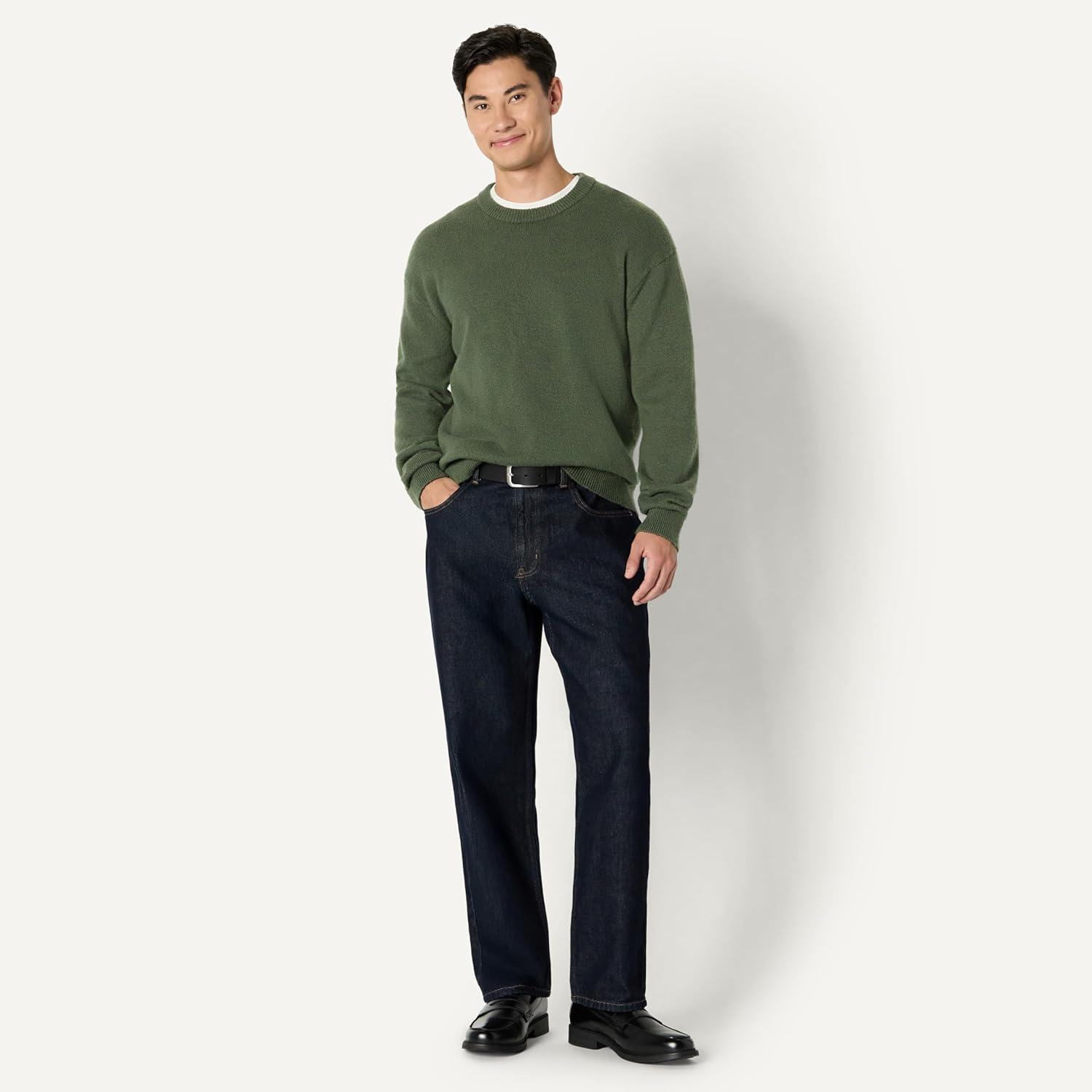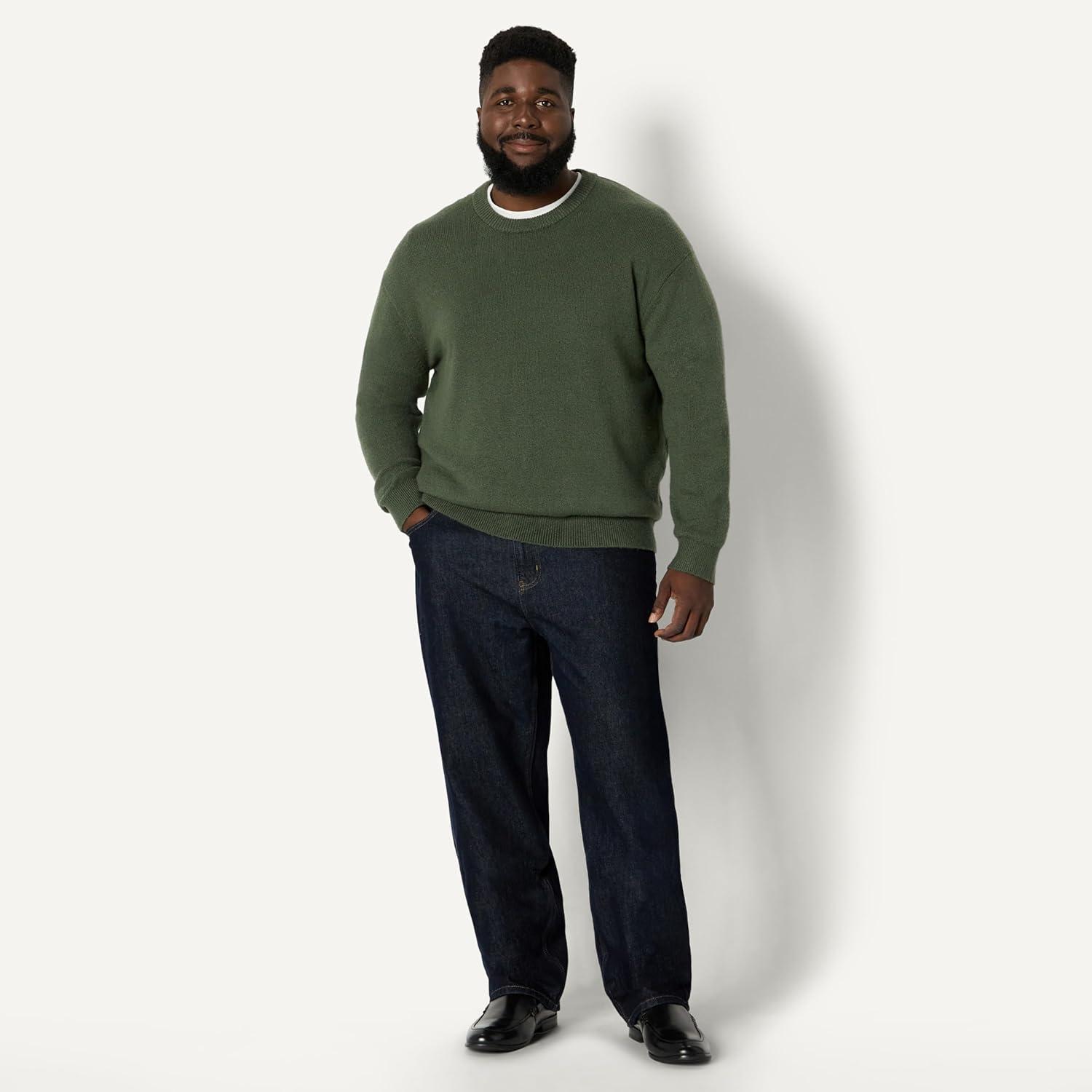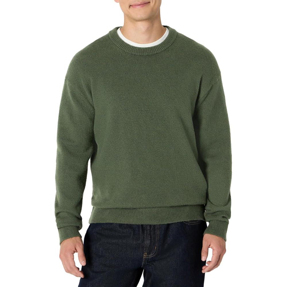 Amazon Essentials (Demi’s Pick) Men’s Relaxed-Fit Cotton Blend Textured Crewneck Pullover Sweater(Dark Olive)
