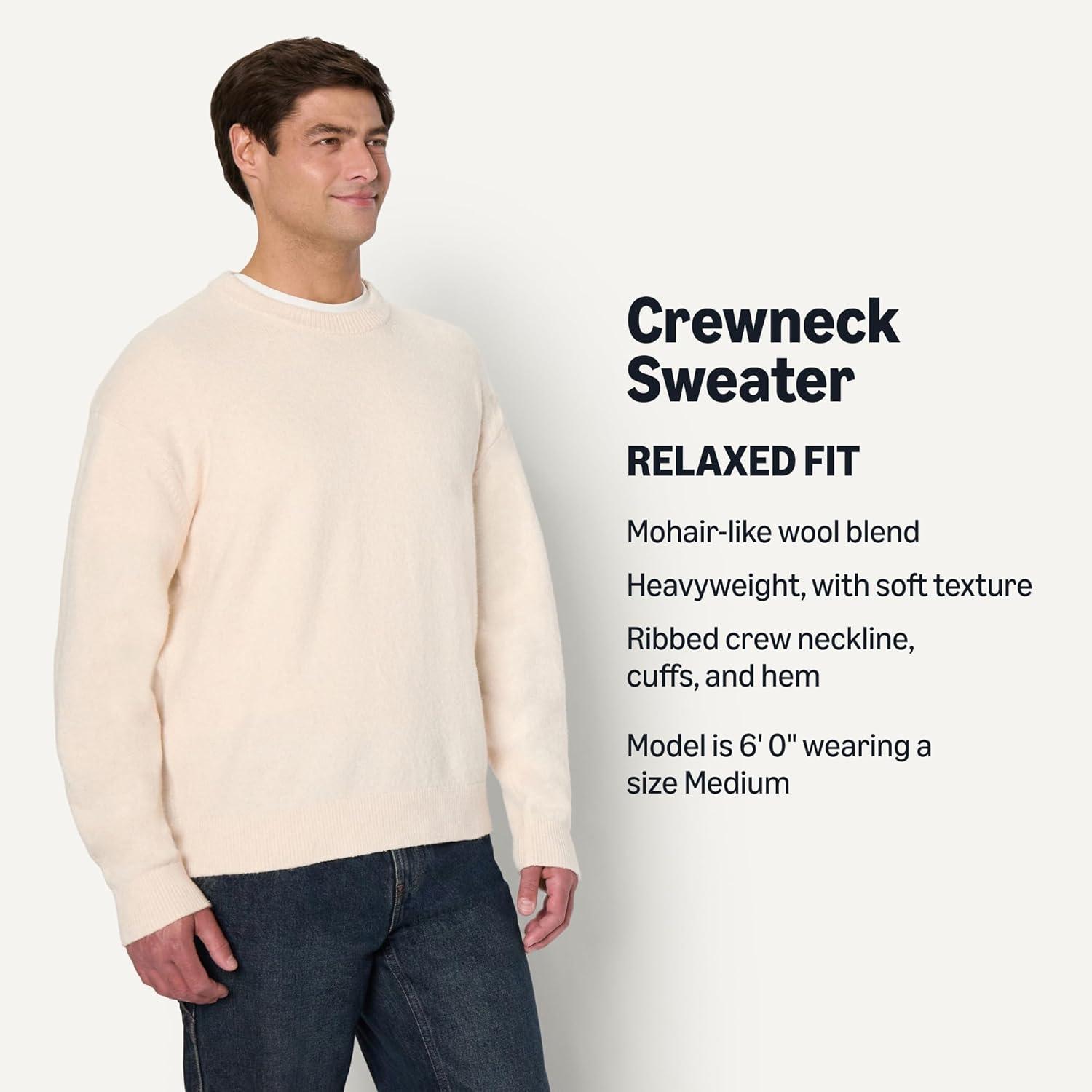 Amazon Essentials (Demi’s Pick) Men’s Relaxed-Fit Cotton Blend Textured Crewneck Pullover Sweater(Oatmeal Heather)