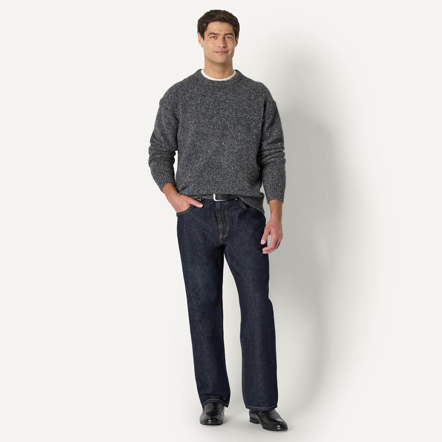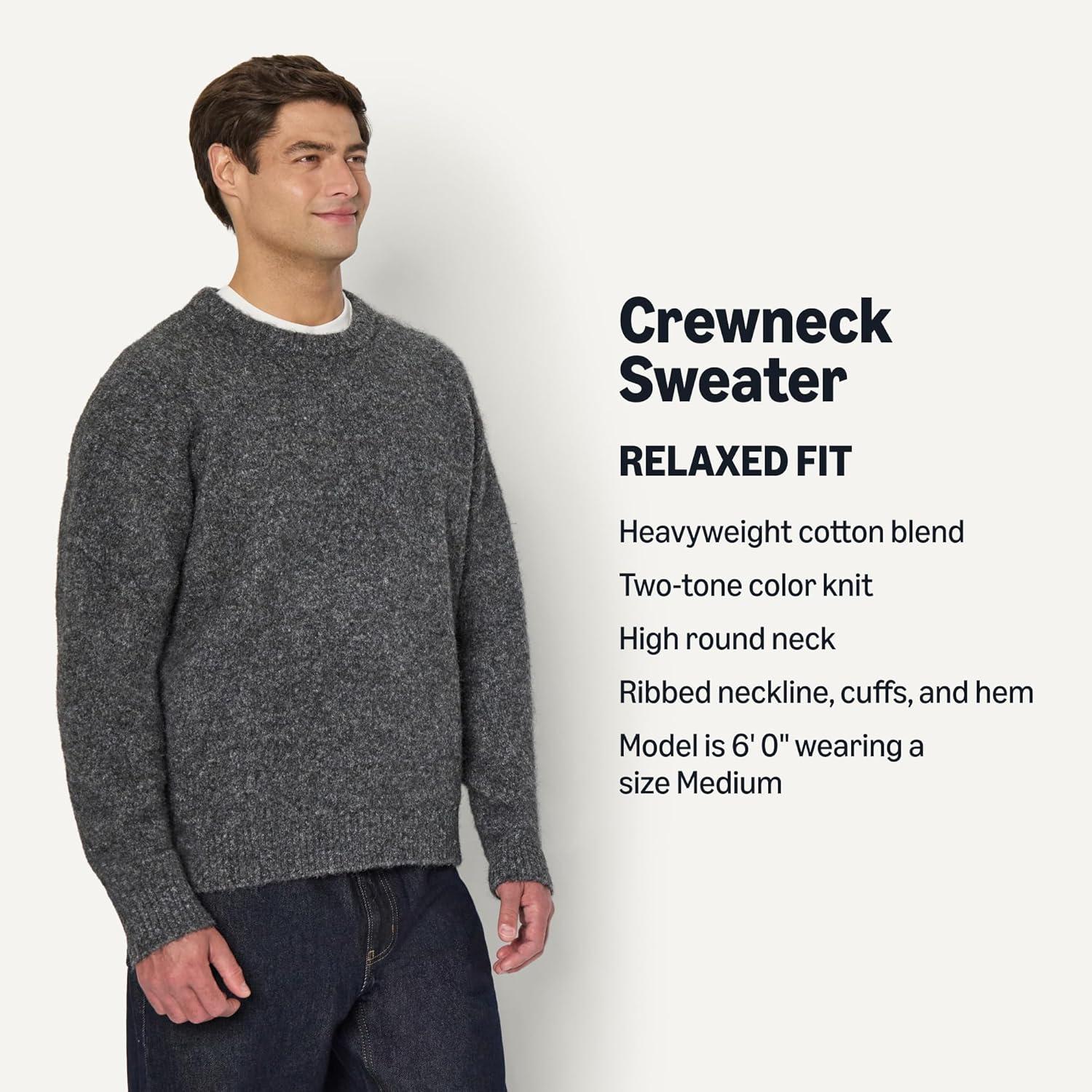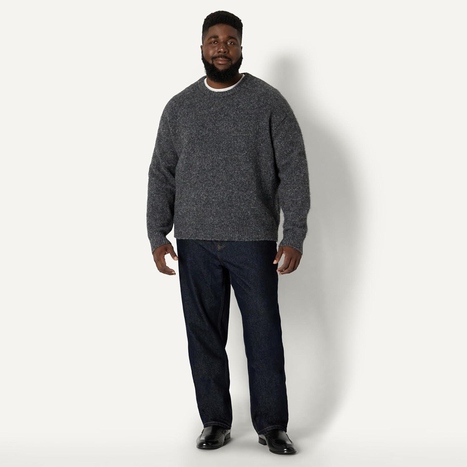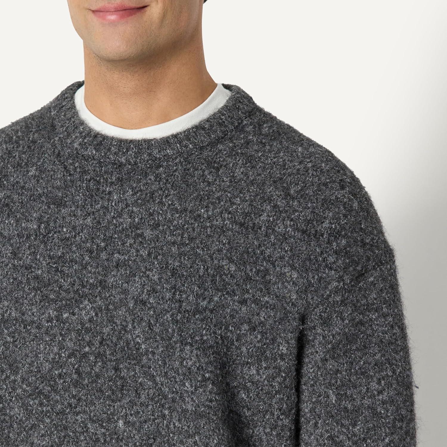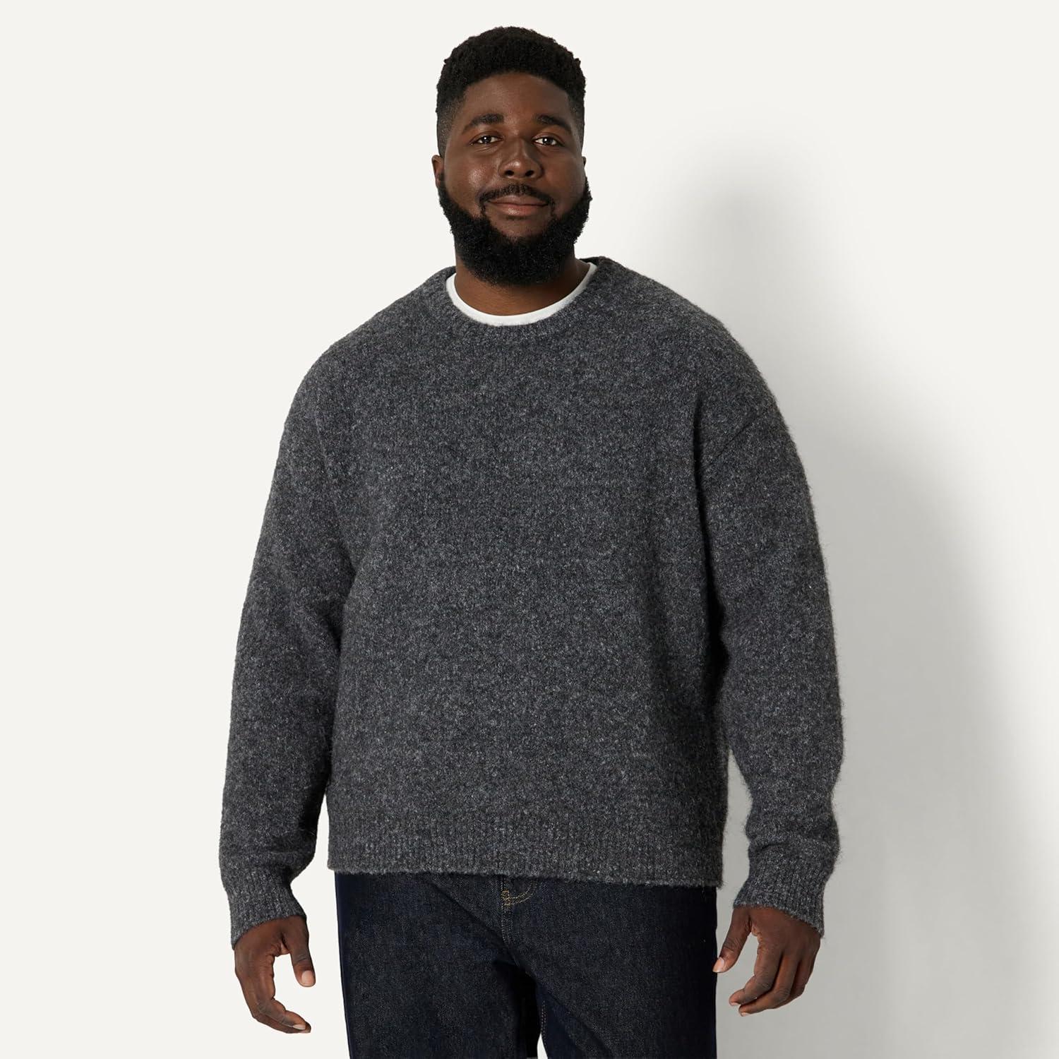 Amazon Essentials (Demi’s Pick) Men’s Relaxed-Fit Faux Mohair Crewneck Pullover Sweater(Charcoal Heather)
