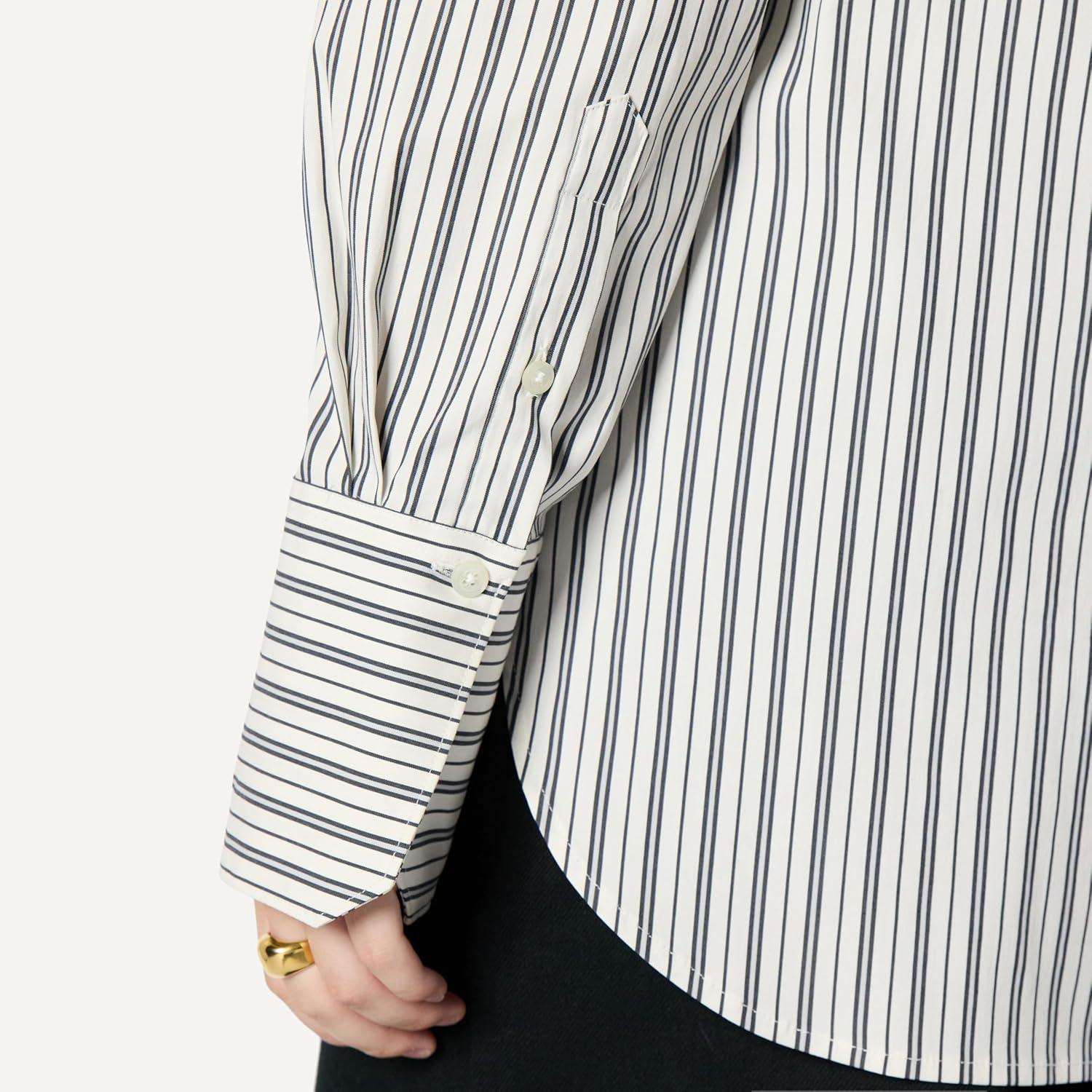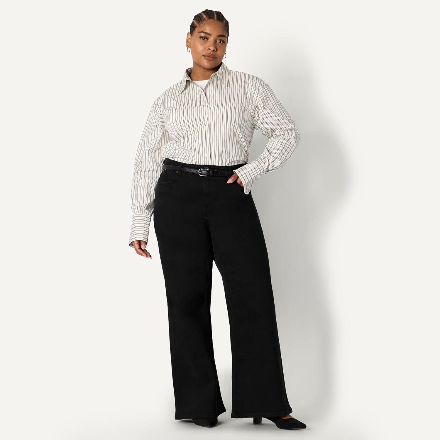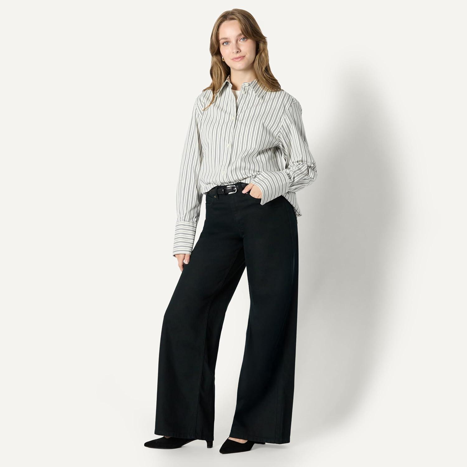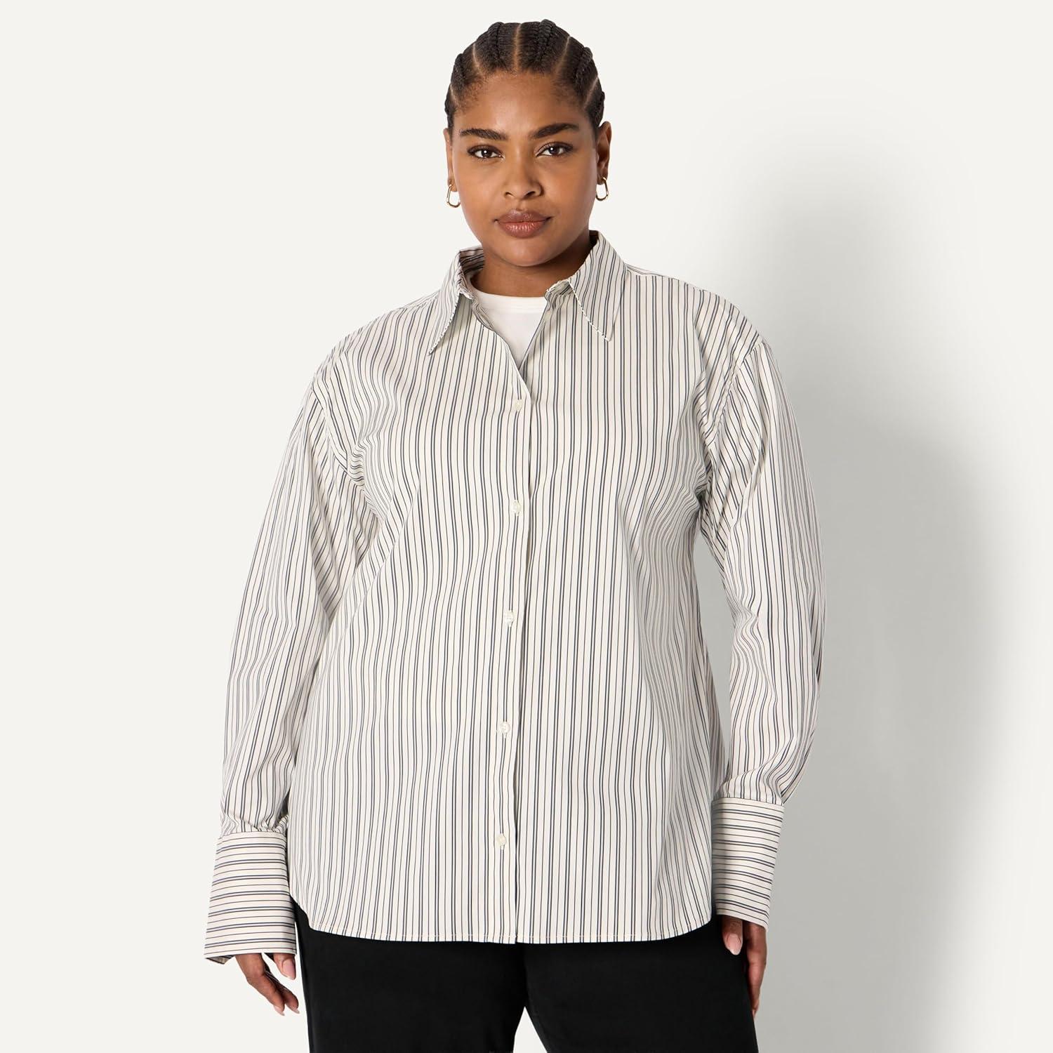 Amazon Essentials (Demi’s Pick) Women’s Oversized-Fit Cotton Stretch Poplin Button-Down Dress Shirt(Ivory Black Stripe)