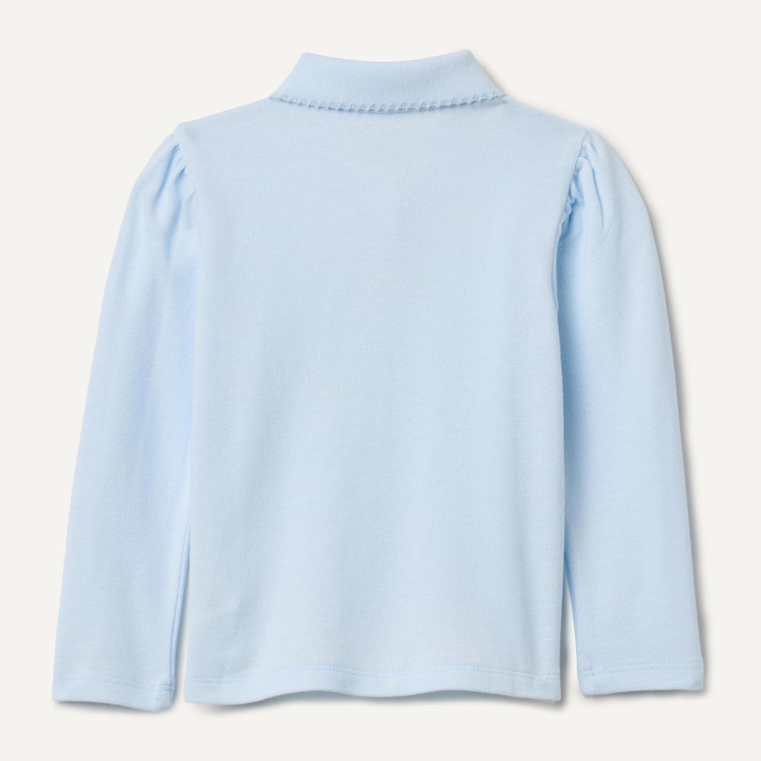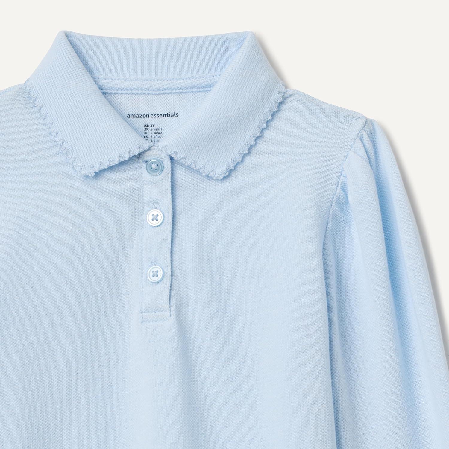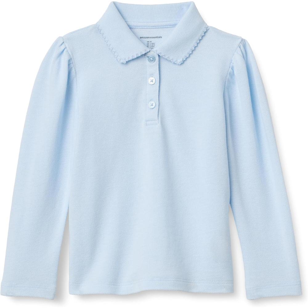 Amazon Essentials Girls and Toddlers' Uniform Pique Long Sleeve Polo Shirt(Light Blue)