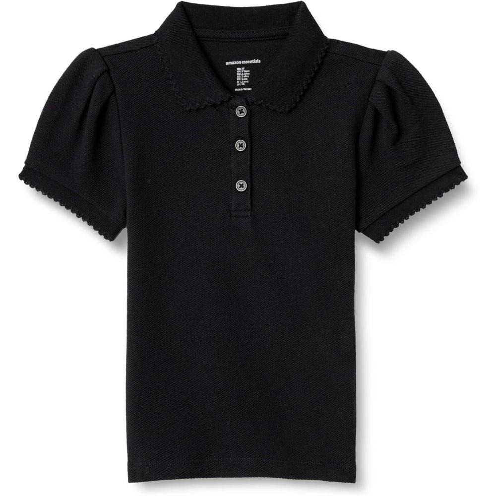 Amazon Essentials Girls and Toddlers’ Uniform Pique Polo Shirt(Black)
