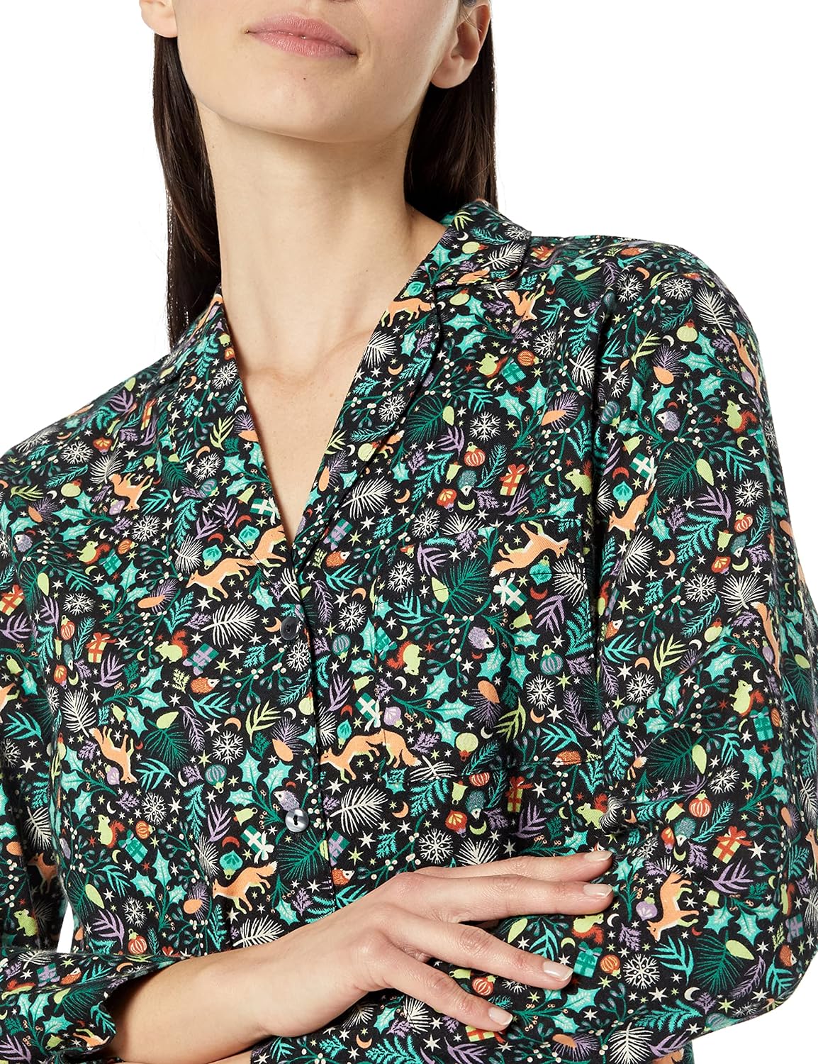Amazon Essentials Holiday Family Matching Pajama Sets(Women’s Black Folkloric – Nightgown)