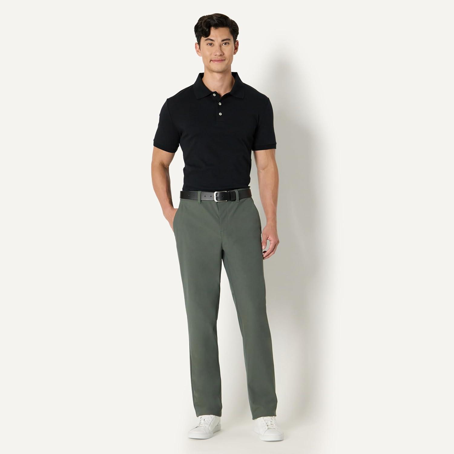 Amazon Essentials Men's Classic-Fit Travel Stretch Pant(Dark Green)