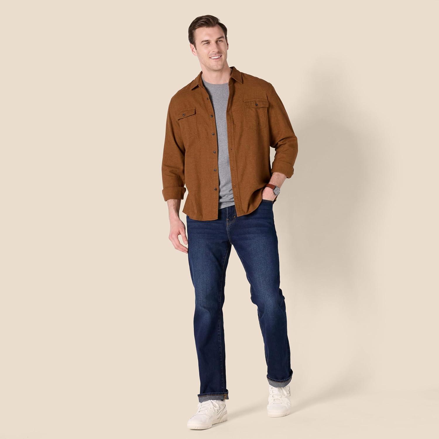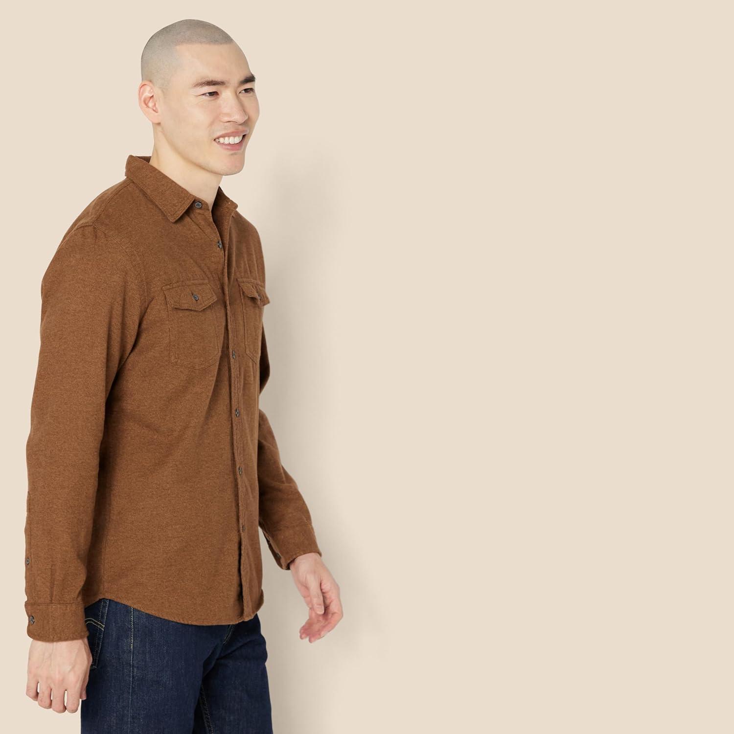 Amazon Essentials Men’s Flannel Shirts, Long-Sleeve, Slim-Fit, Two-Pocket, Plaid(Toffee Brown)