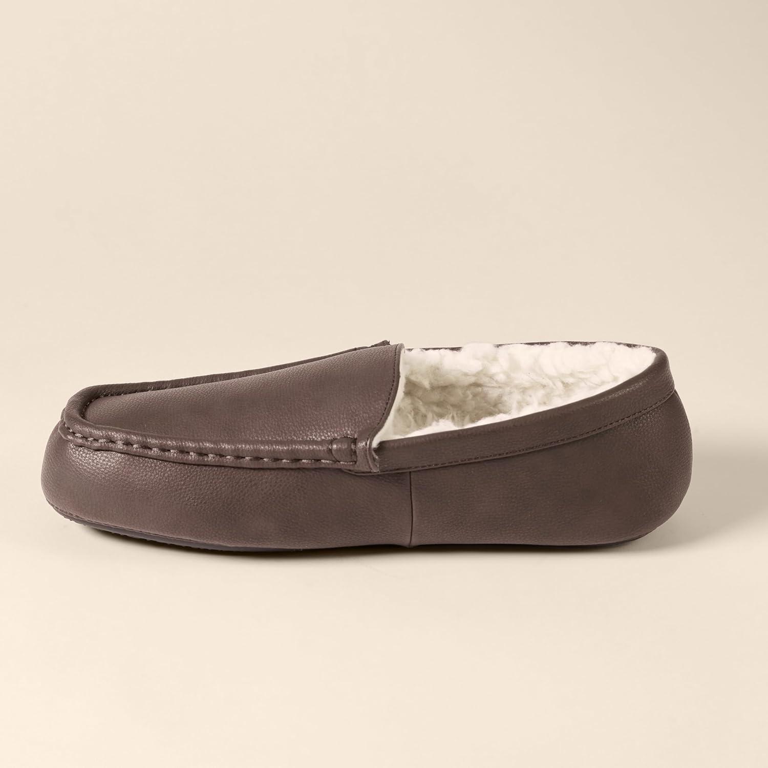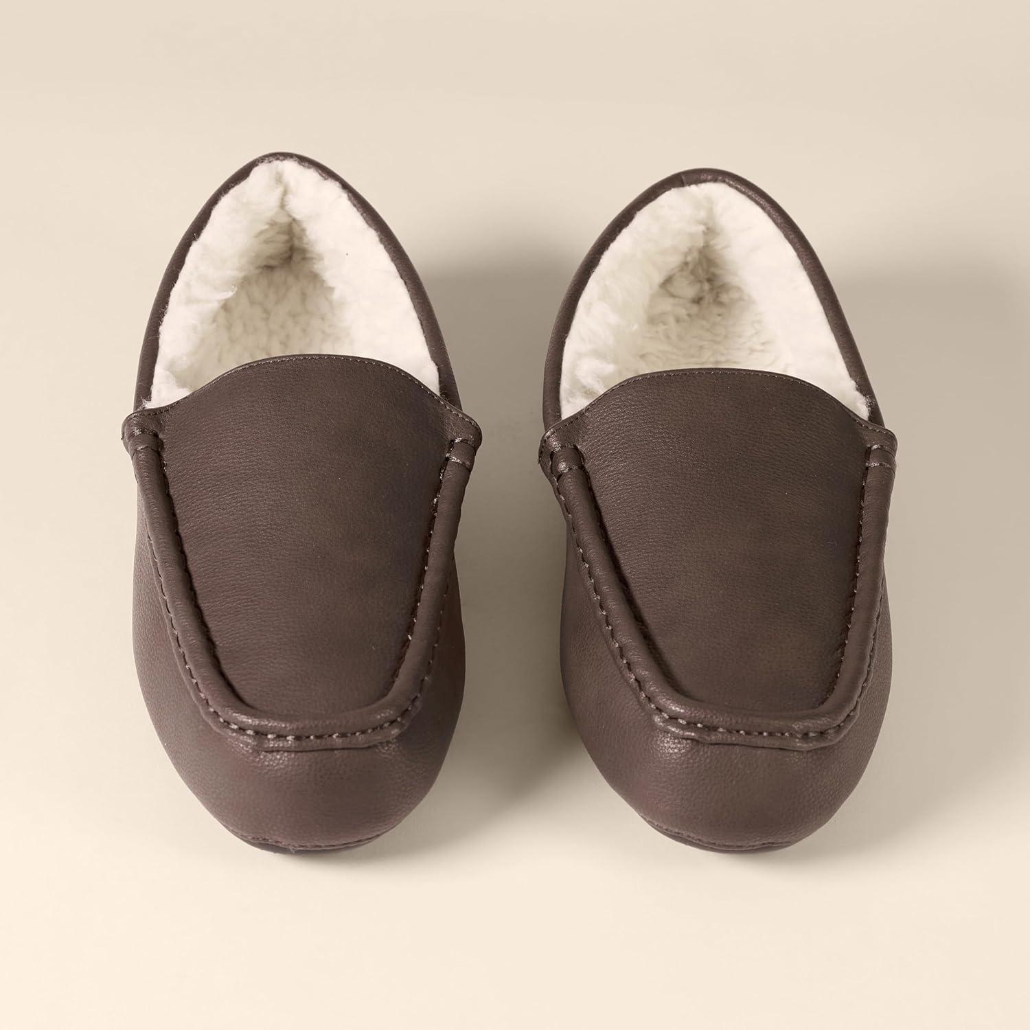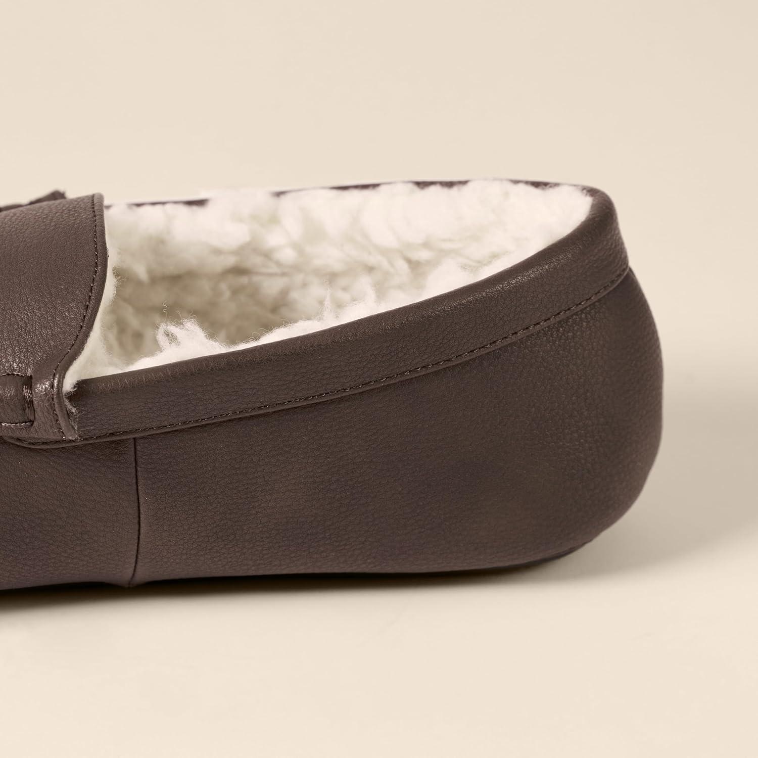 Amazon Essentials Men’s Microsuede Moccasin Slippers(Dark Brown Faux Leather)
