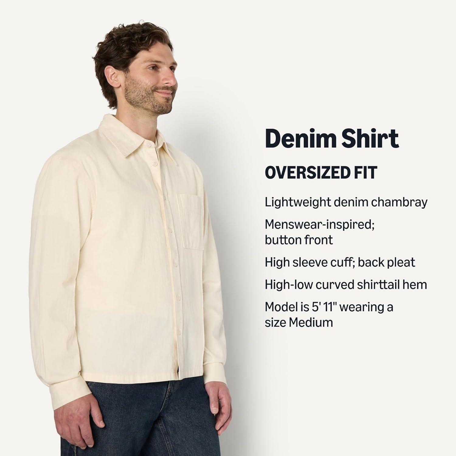 Amazon Essentials Men’s Modern Oversized-Fit Denim Button-Down Shirt(Ecru)