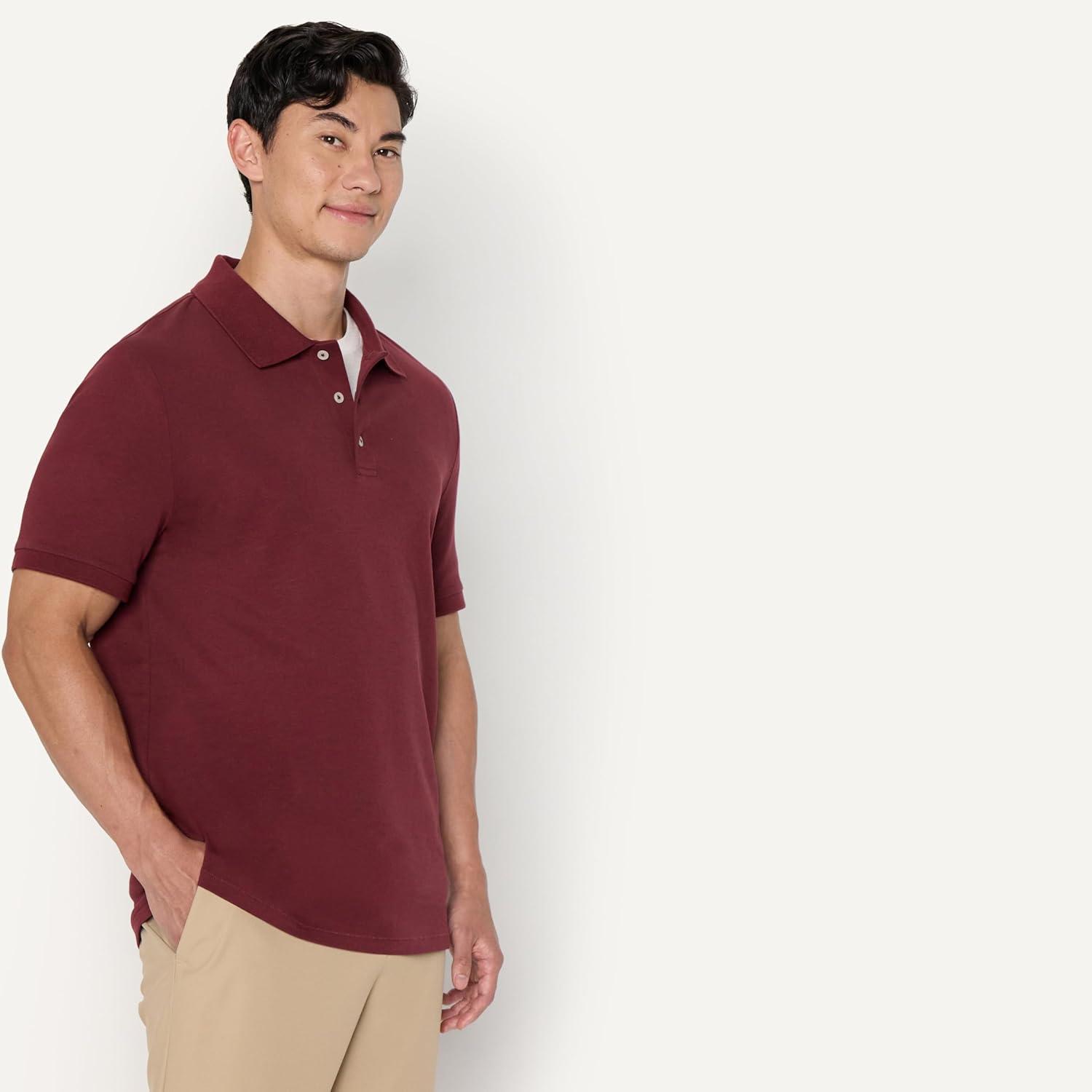 Amazon Essentials Men’s Regular Fit Interlock Polo Shirt(Rich Burgundy)
