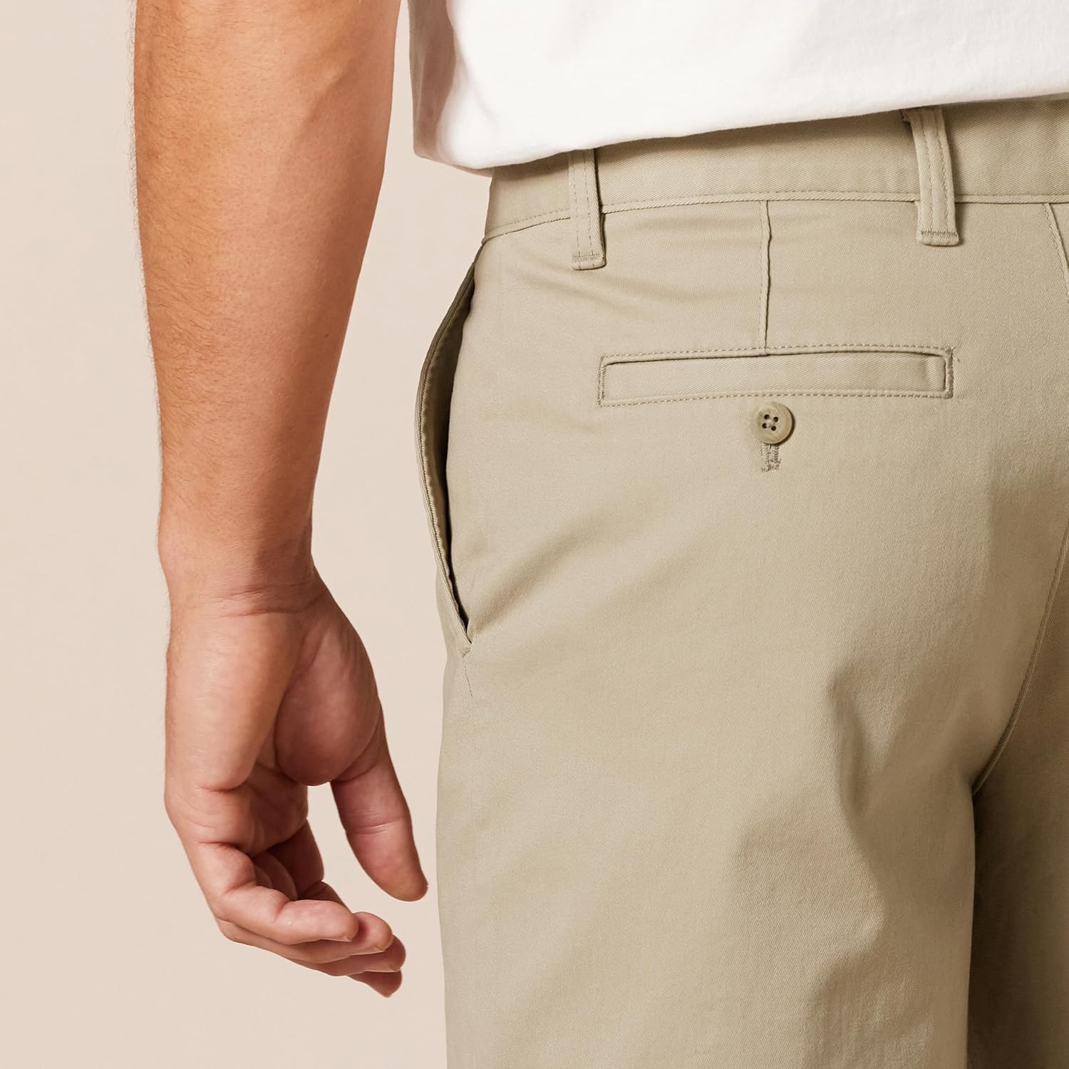 Amazon Essentials Men’s Slim-Fit 11″ Flat-Front Comfort Stretch Chino Short(Stone)