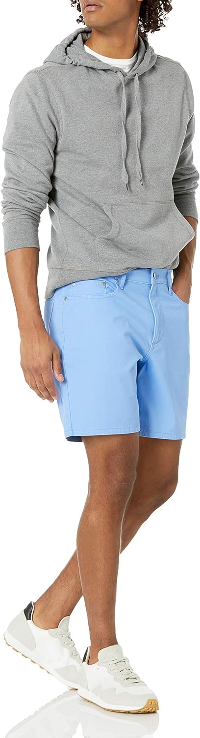 Amazon Essentials Men’s Straight-Fit 7″ Inseam Stretch 5-Pocket Shorts(Light Blue)