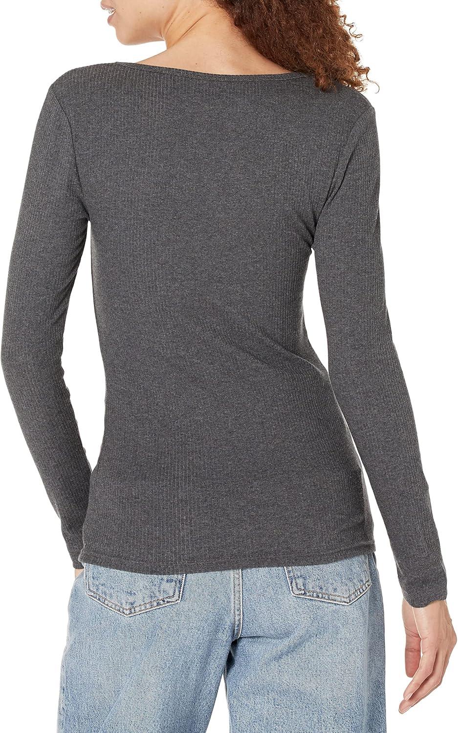 Amazon Essentials Sweater for Women, Long Sleeve Slim-Fit Rib Scoop Neck (Available in Plus Size), Pack of 2(Black/Charcoal Heather)