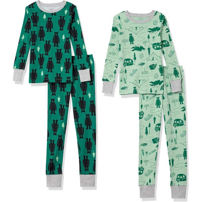 Amazon Essentials Unisex Babies Toddlers and Kids SnugFit Cotton Pajama Sleepwear Sets2 Bottle Green Polar BearMint Green Happy Camper
