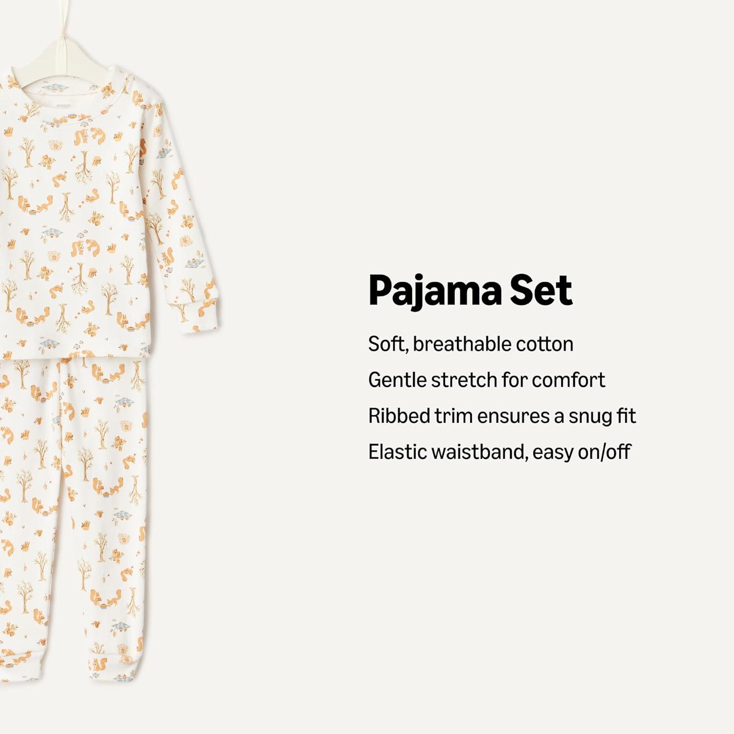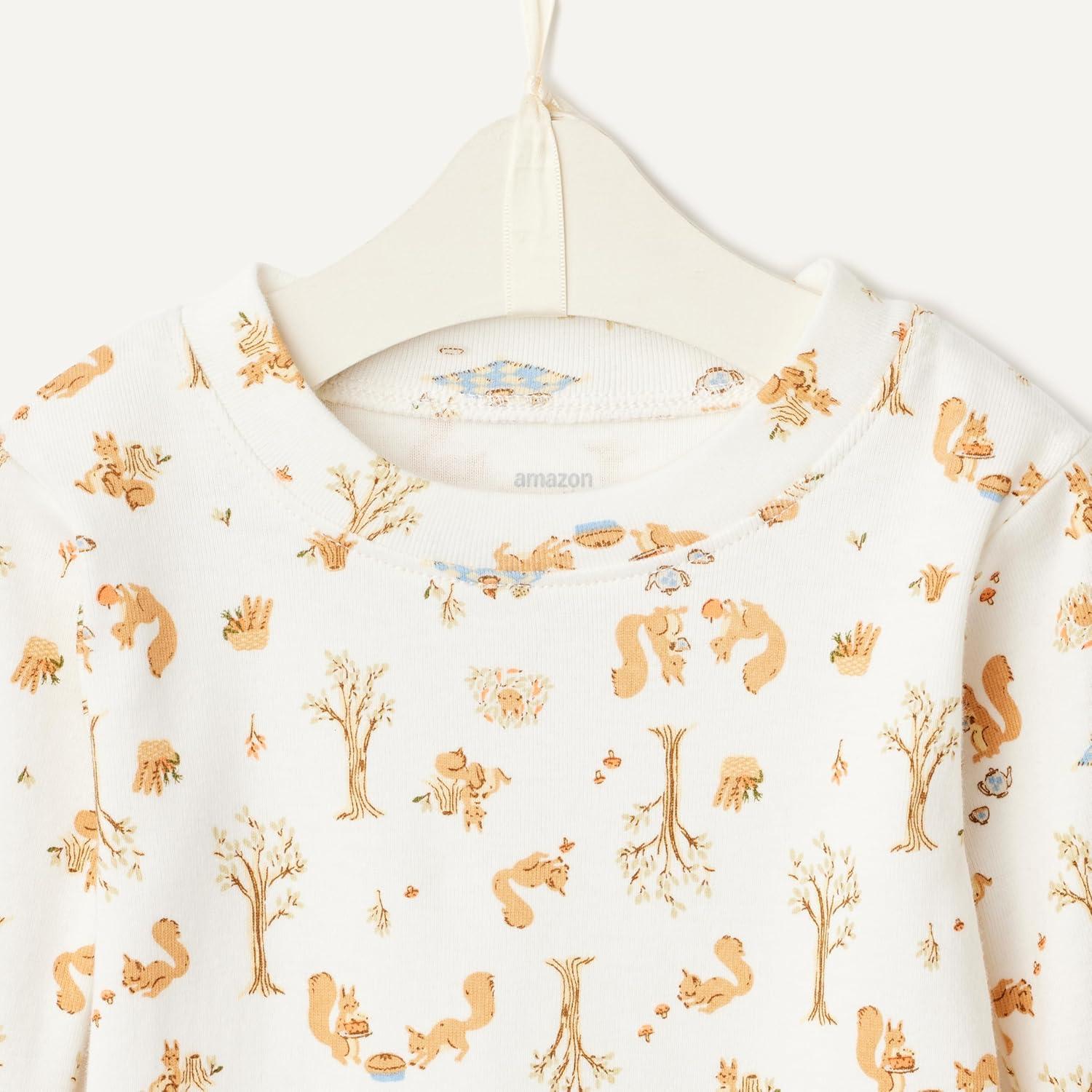 Amazon Essentials Unisex-Baby Snug-Fit Cotton Pajamas(Pale Yellow/Squirrel Picnic)