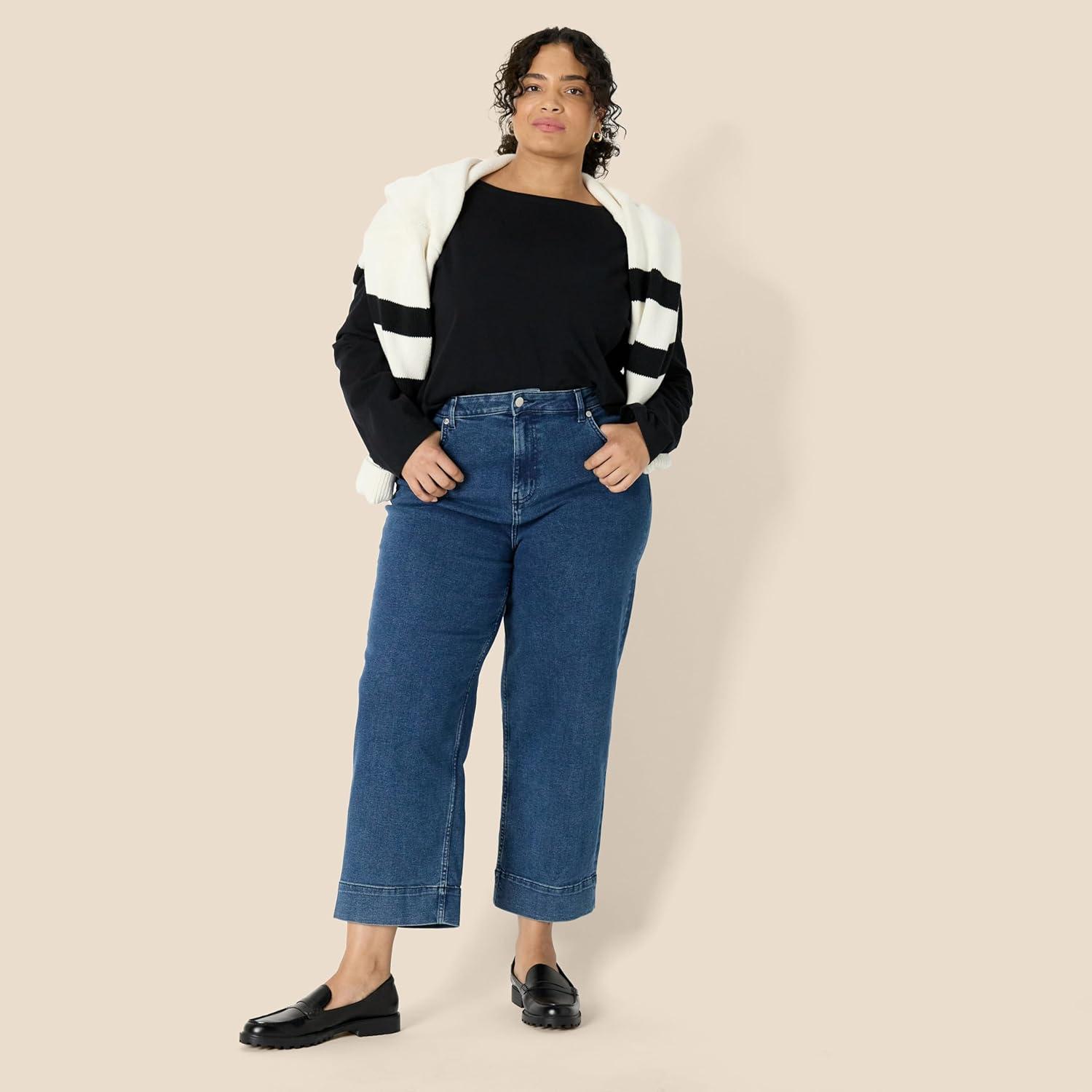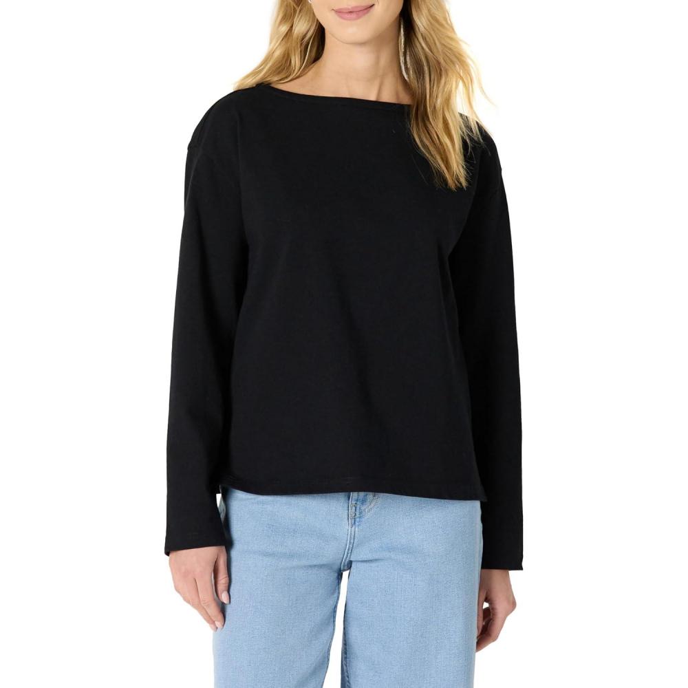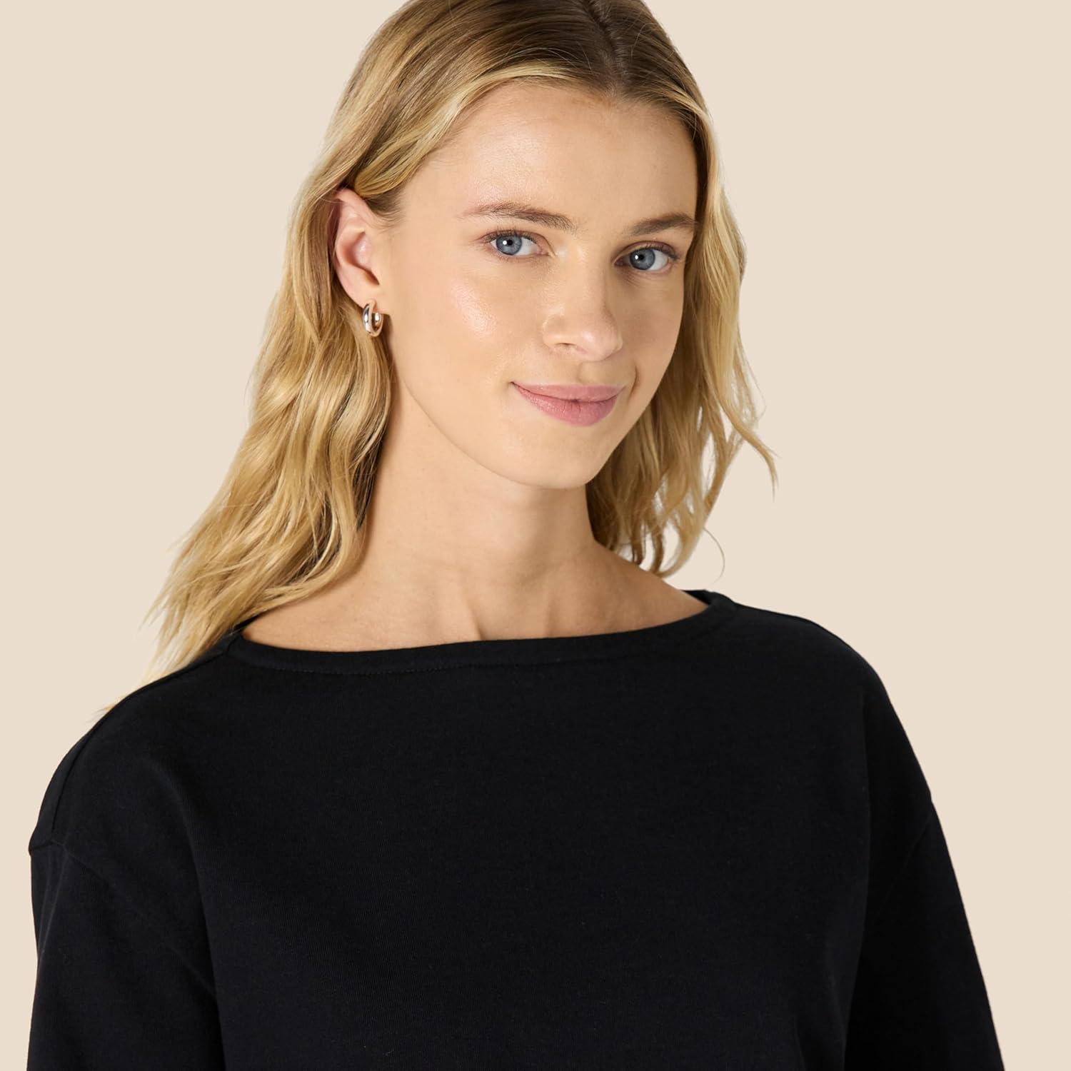 Amazon Essentials Women’s 100% Cotton Heavyweight Long-Sleeve Boatneck Top(Black)