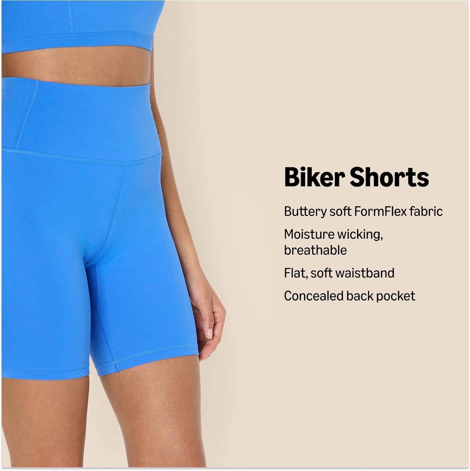 Amazon Essentials Women's Active FormFlex Buttery Soft High Waist Yoga Biker Shorts(Ocean Blue)