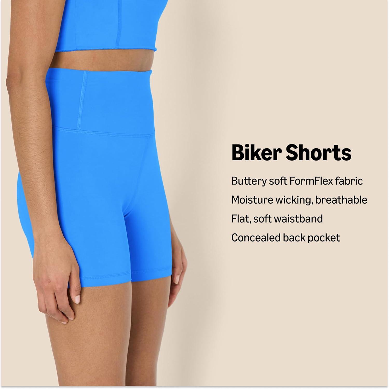 Amazon Essentials Women’s Active FormFlex Buttery Soft High Waist Yoga Biker Shorts(Ocean Blue)