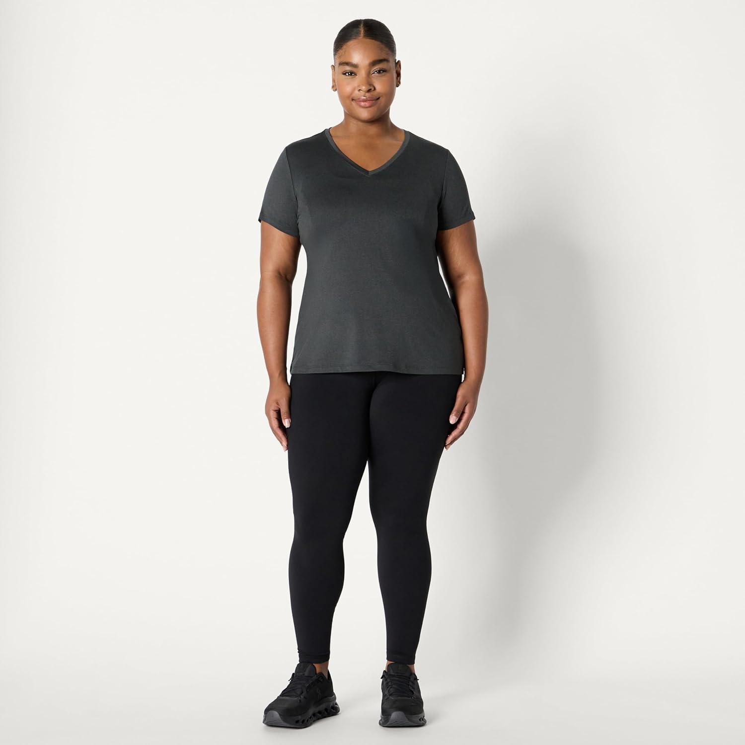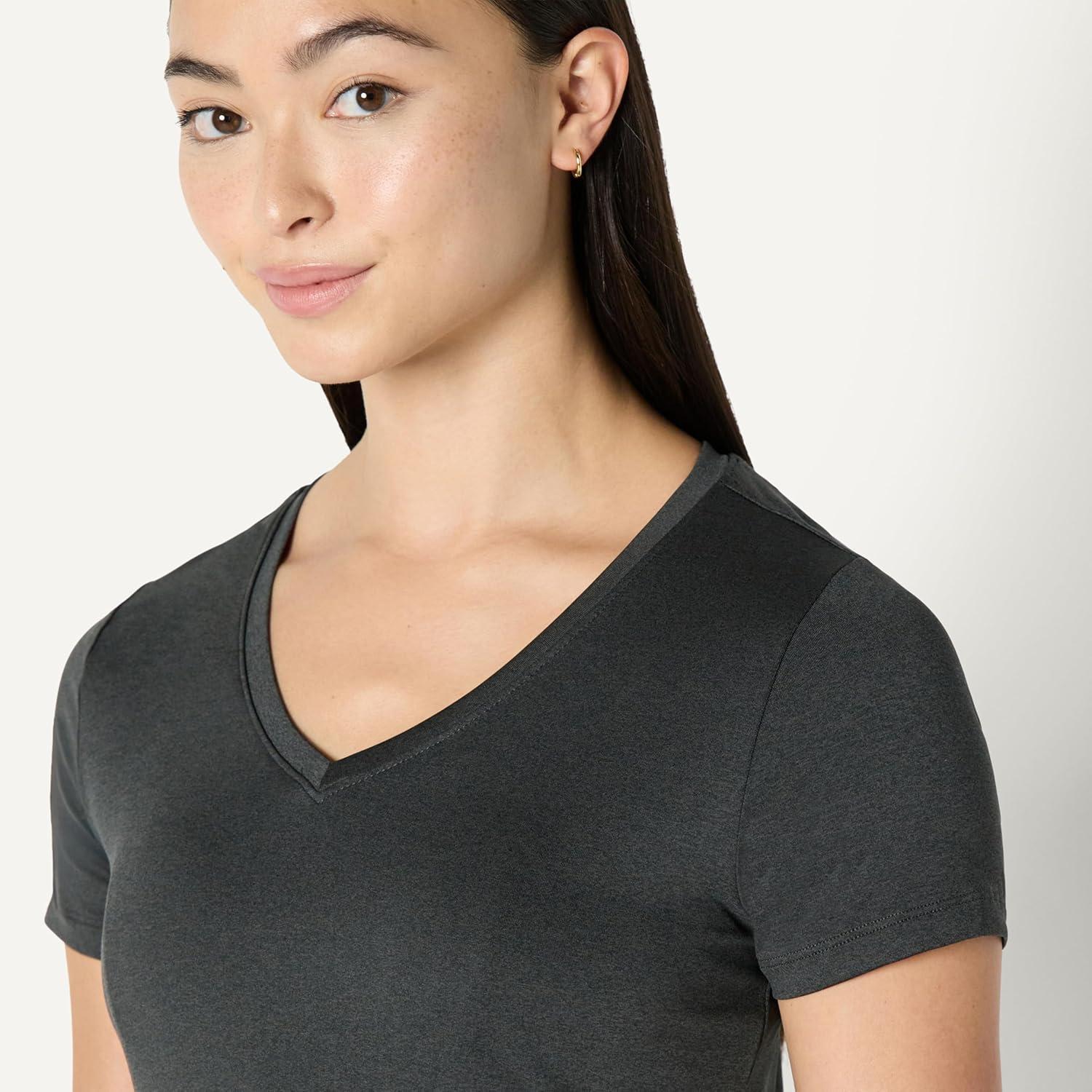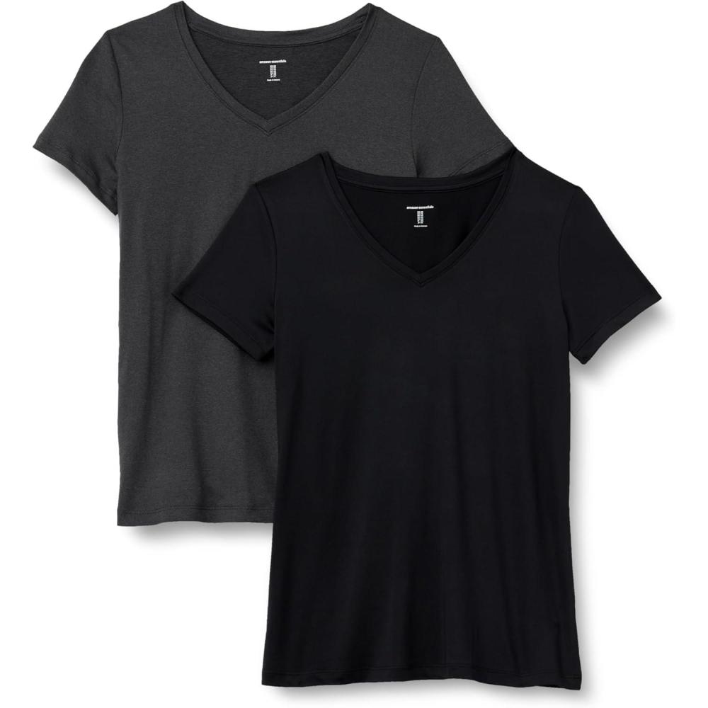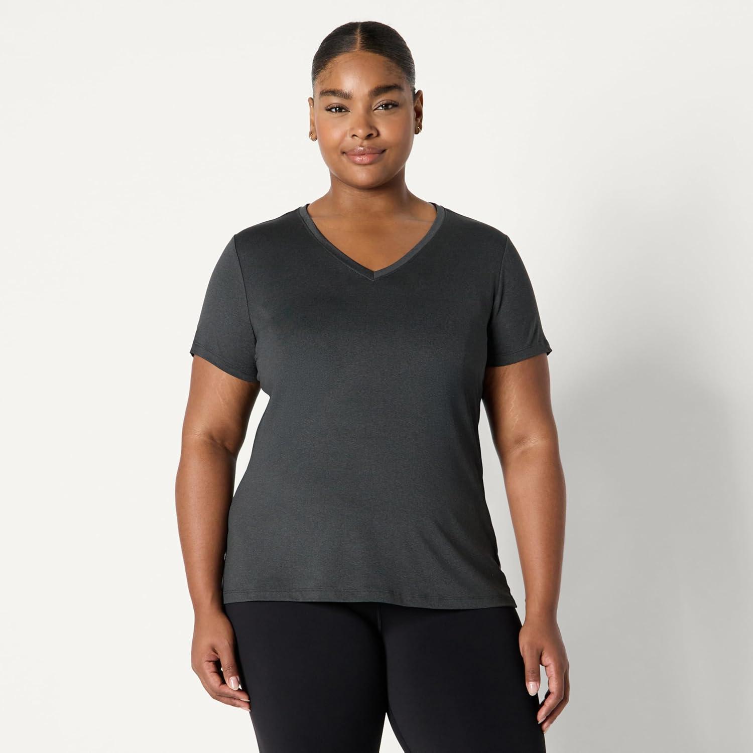 Amazon Essentials Women’s Active Quick Dry Tech Stretch Short-Sleeve V-Neck T-Shirt (Available in Plus Size), Pack of 2(Black/Heather Graphite)