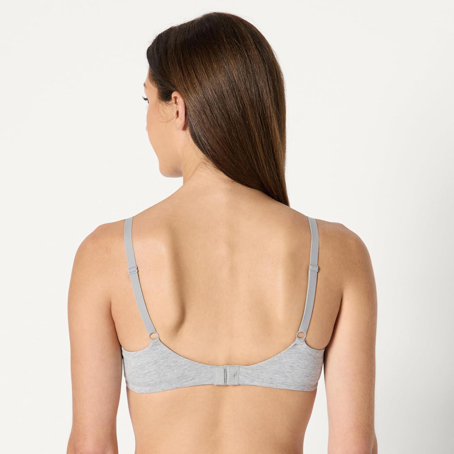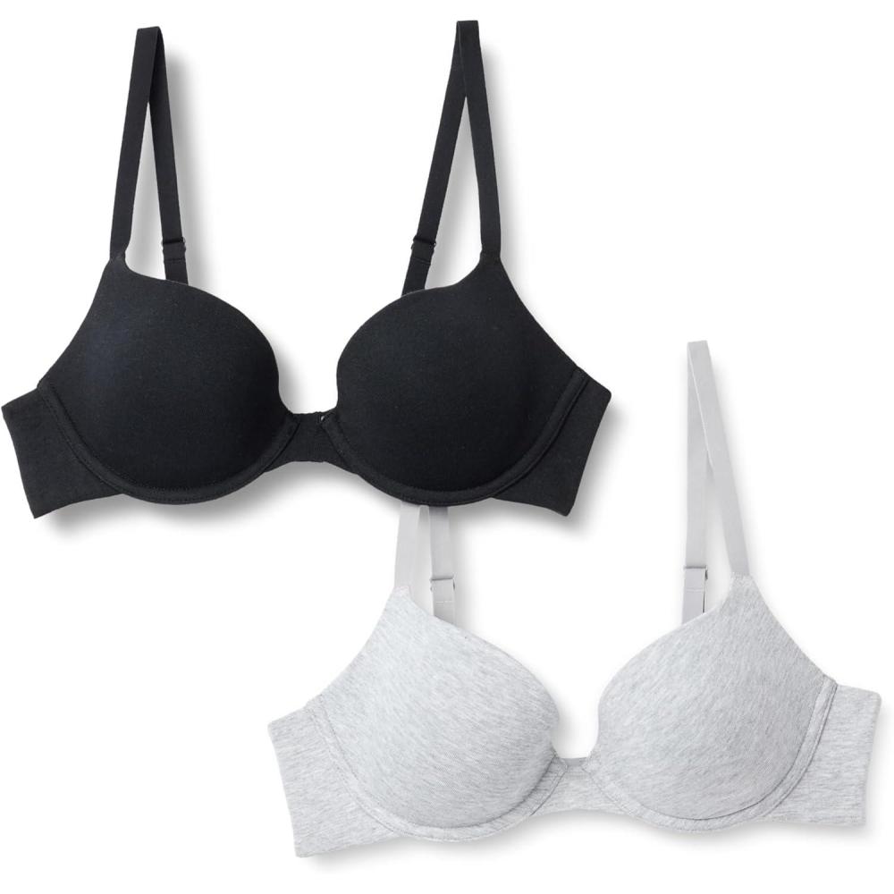 Amazon Essentials Women’s Cotton Jersey Lined Wired Plunge Bra, Pack of 2(Black/Grey Heather)