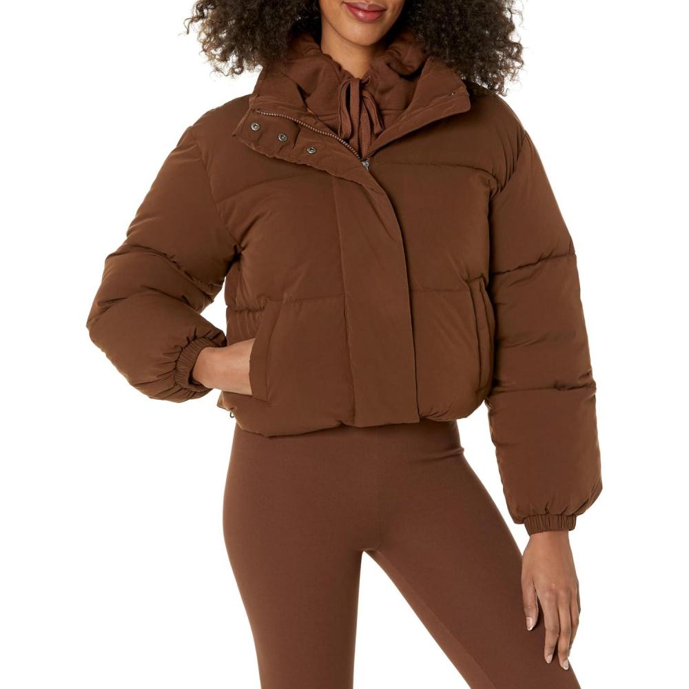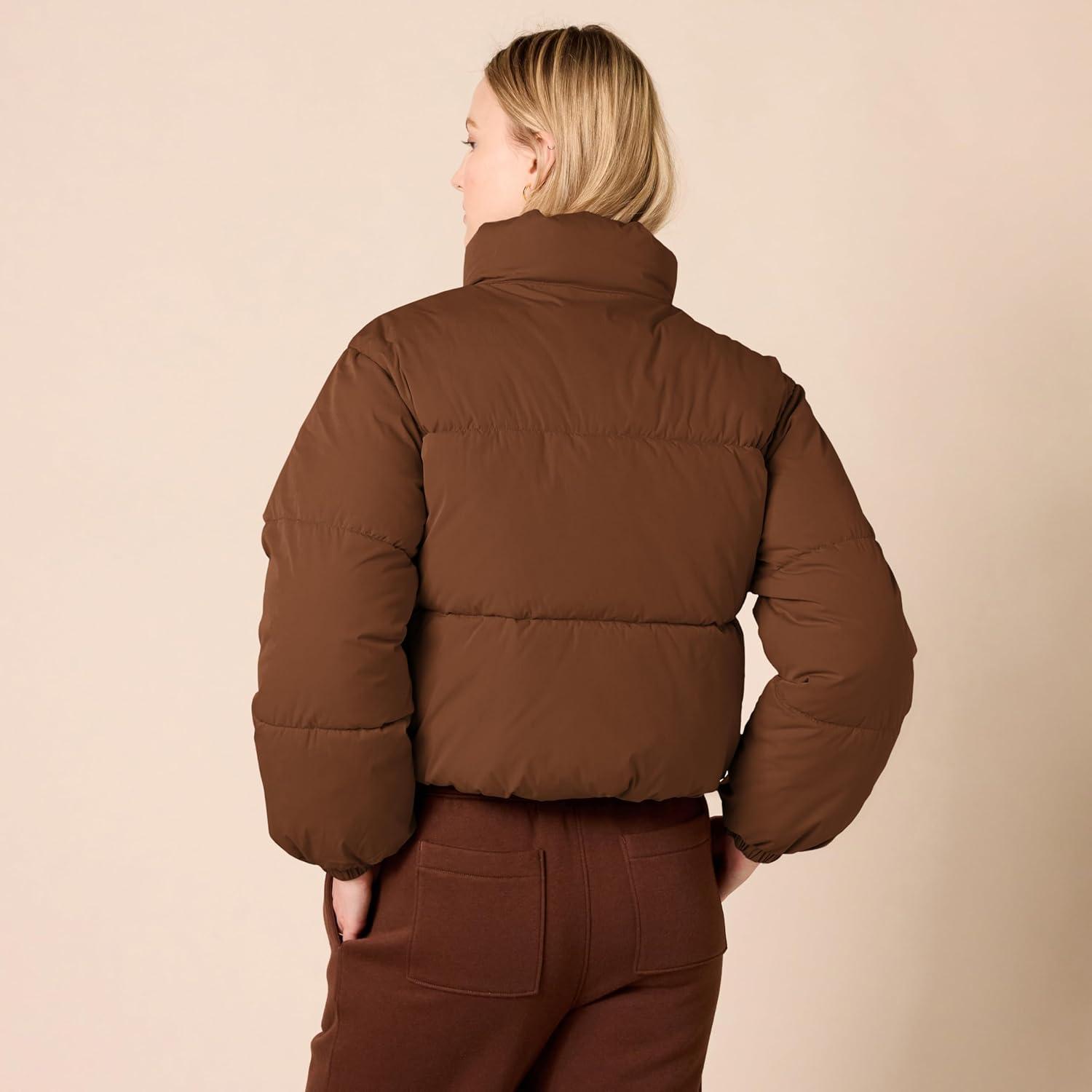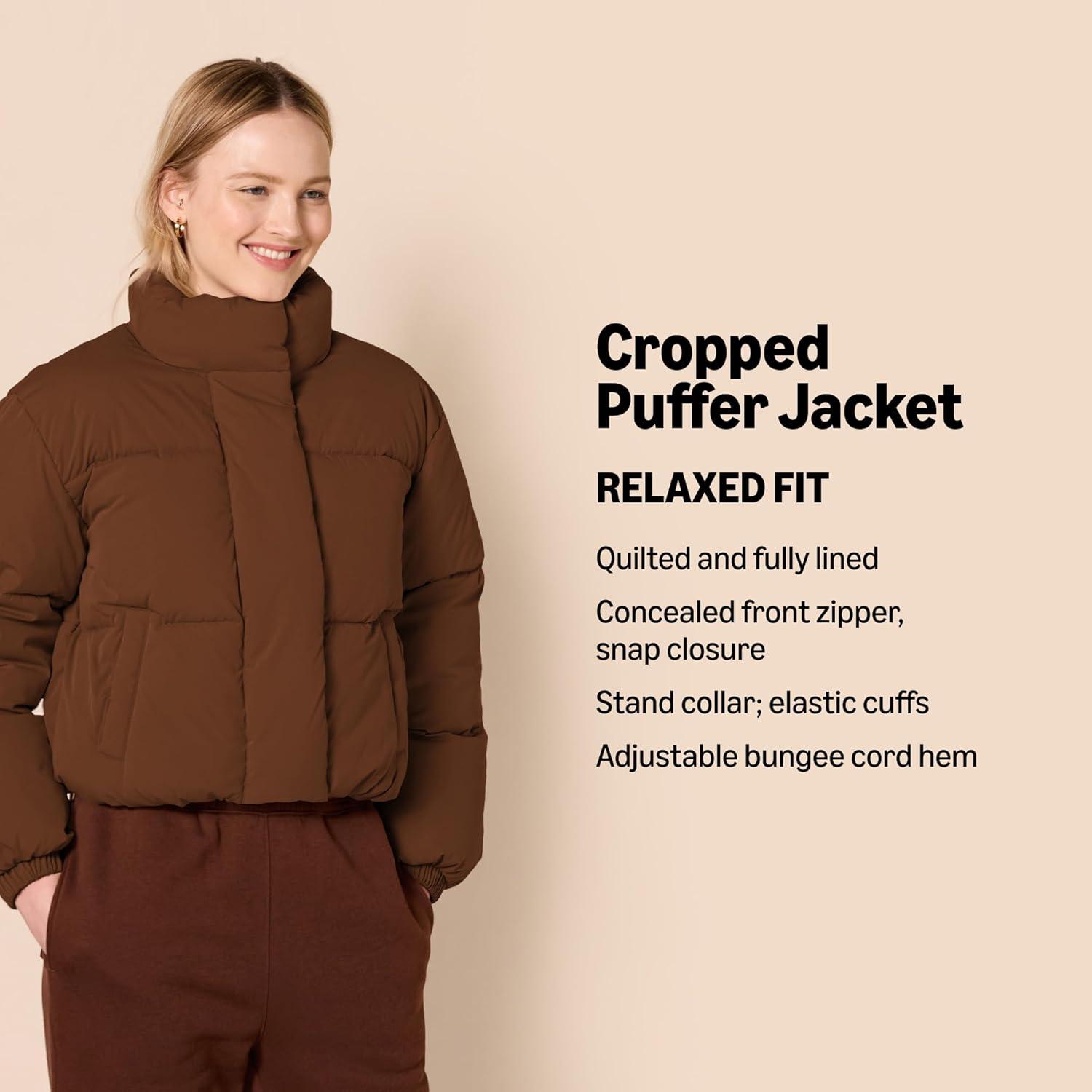 Amazon Essentials Womens Cropped Full-Zip Puffer Jacket (Quilted Matte or Sherpa Fleece)(Deep Brown)