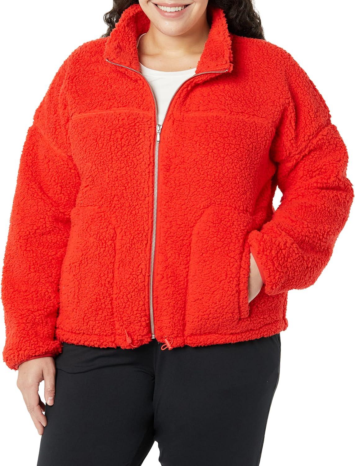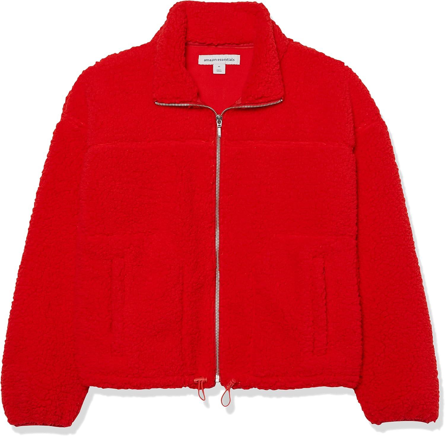 Amazon Essentials Women's Fleece Zip-Up Sherpa Jacket with Stand Neck(Poppy Red)