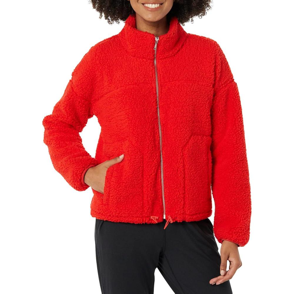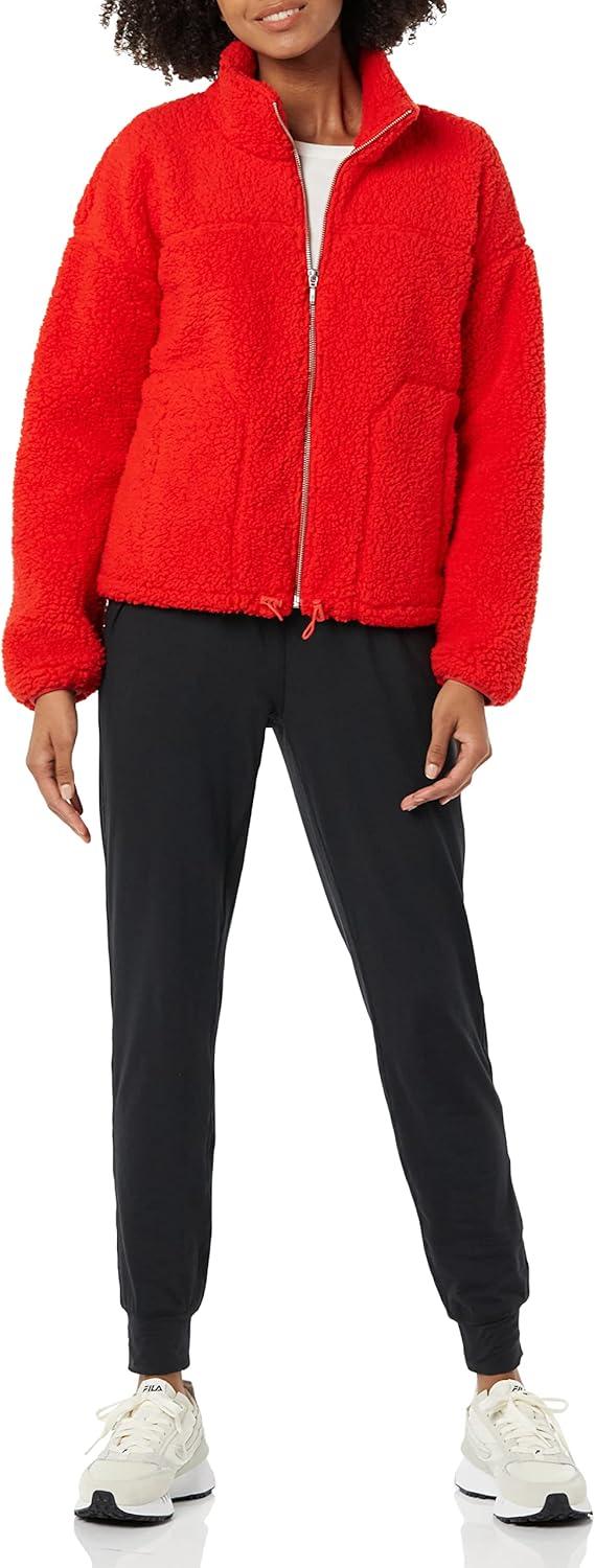Amazon Essentials Women’s Fleece Zip-Up Sherpa Jacket with Stand Neck(Poppy Red)
