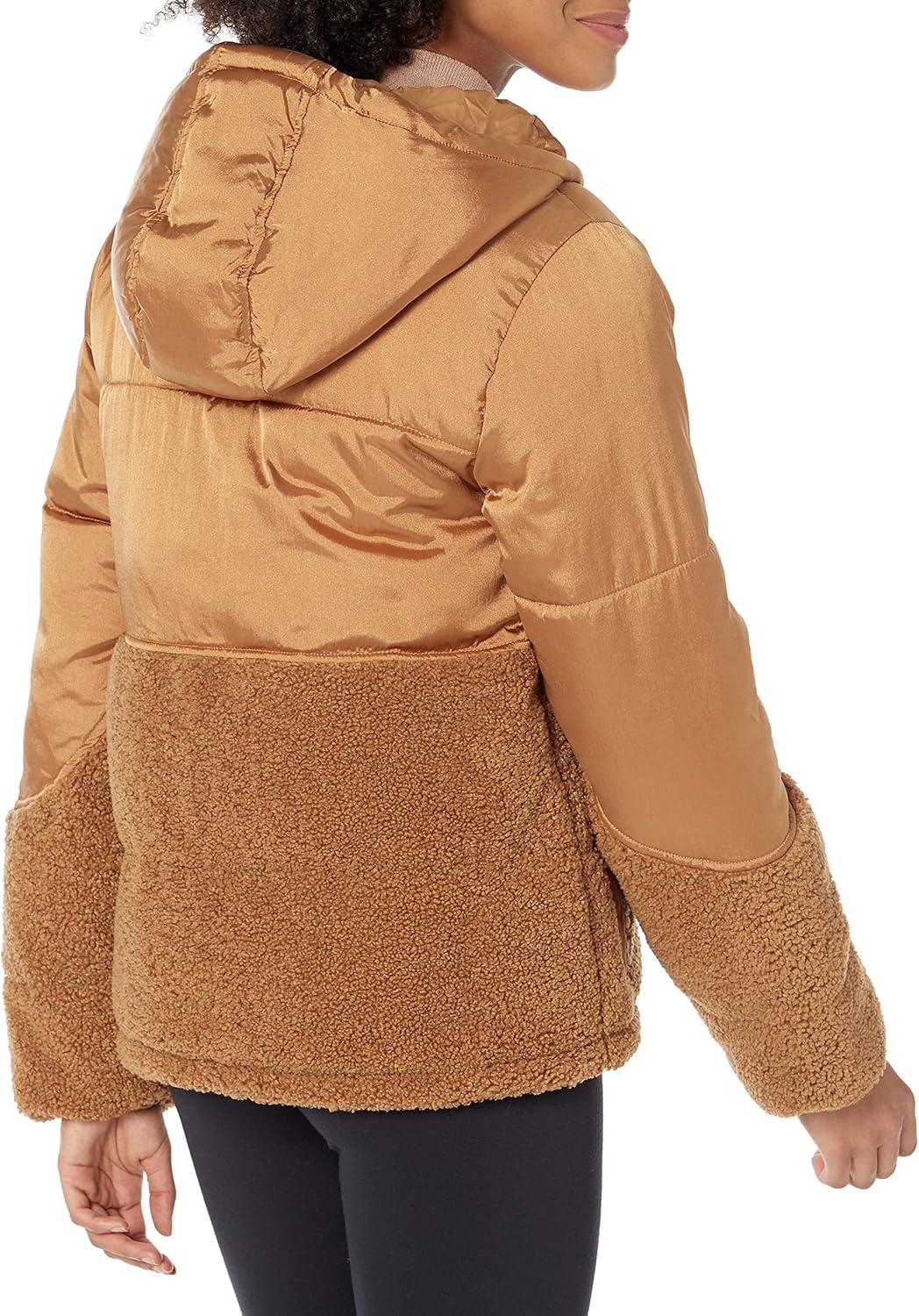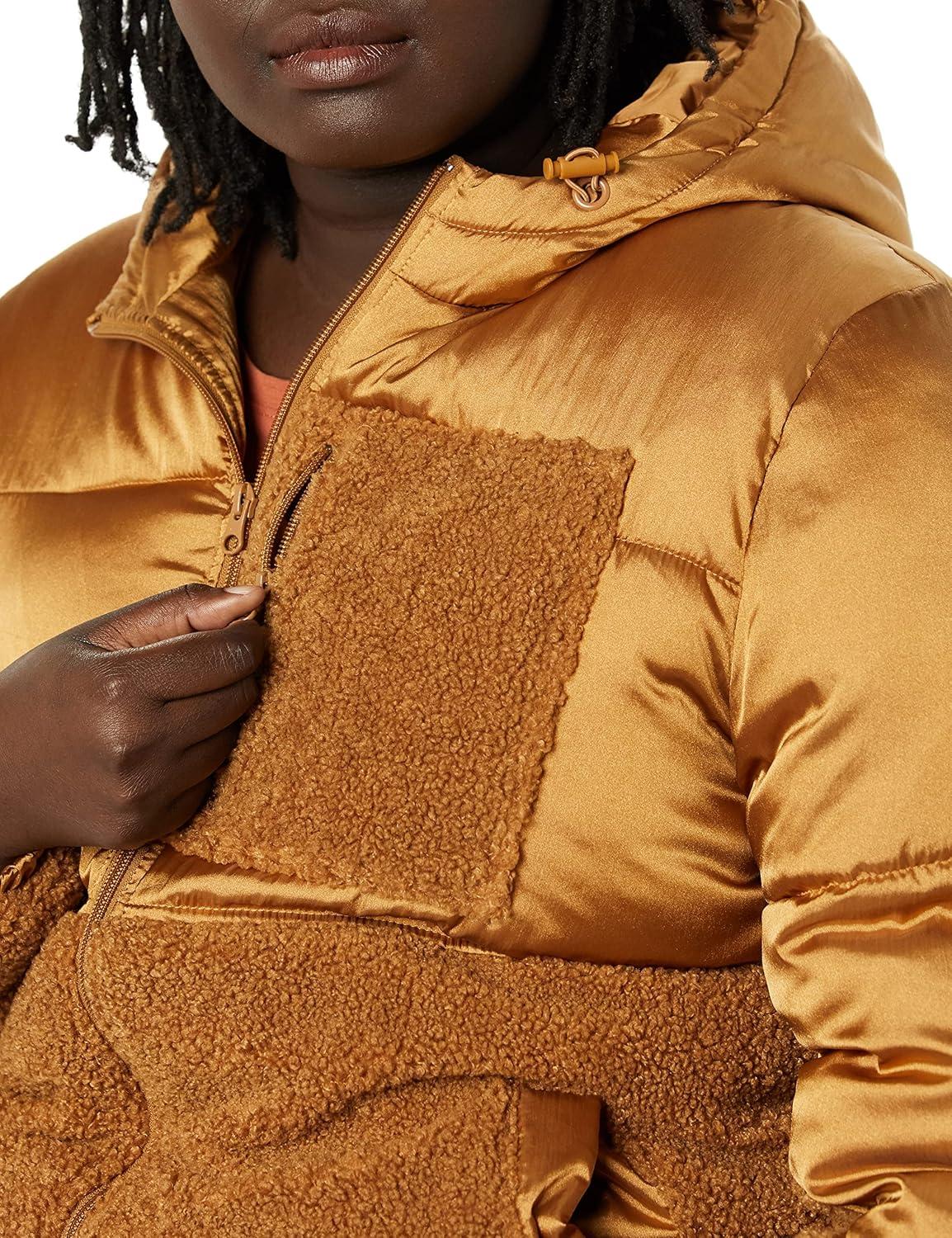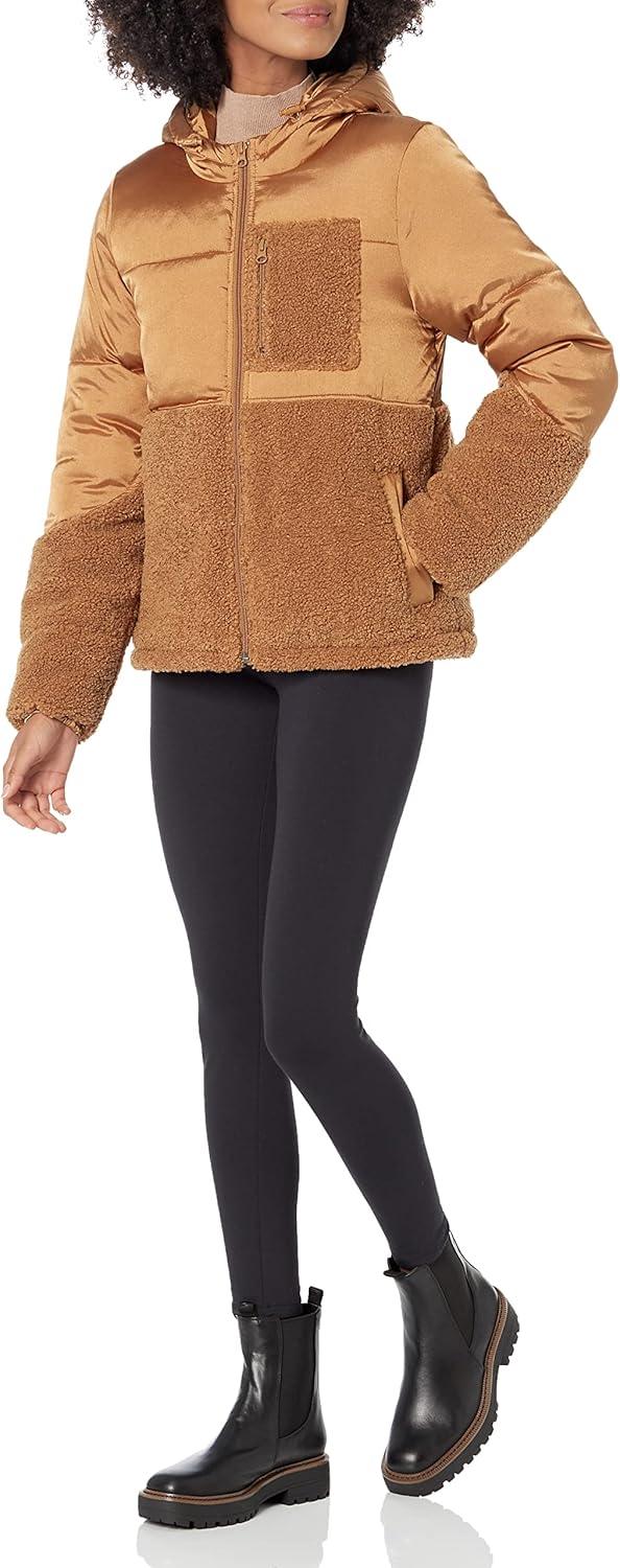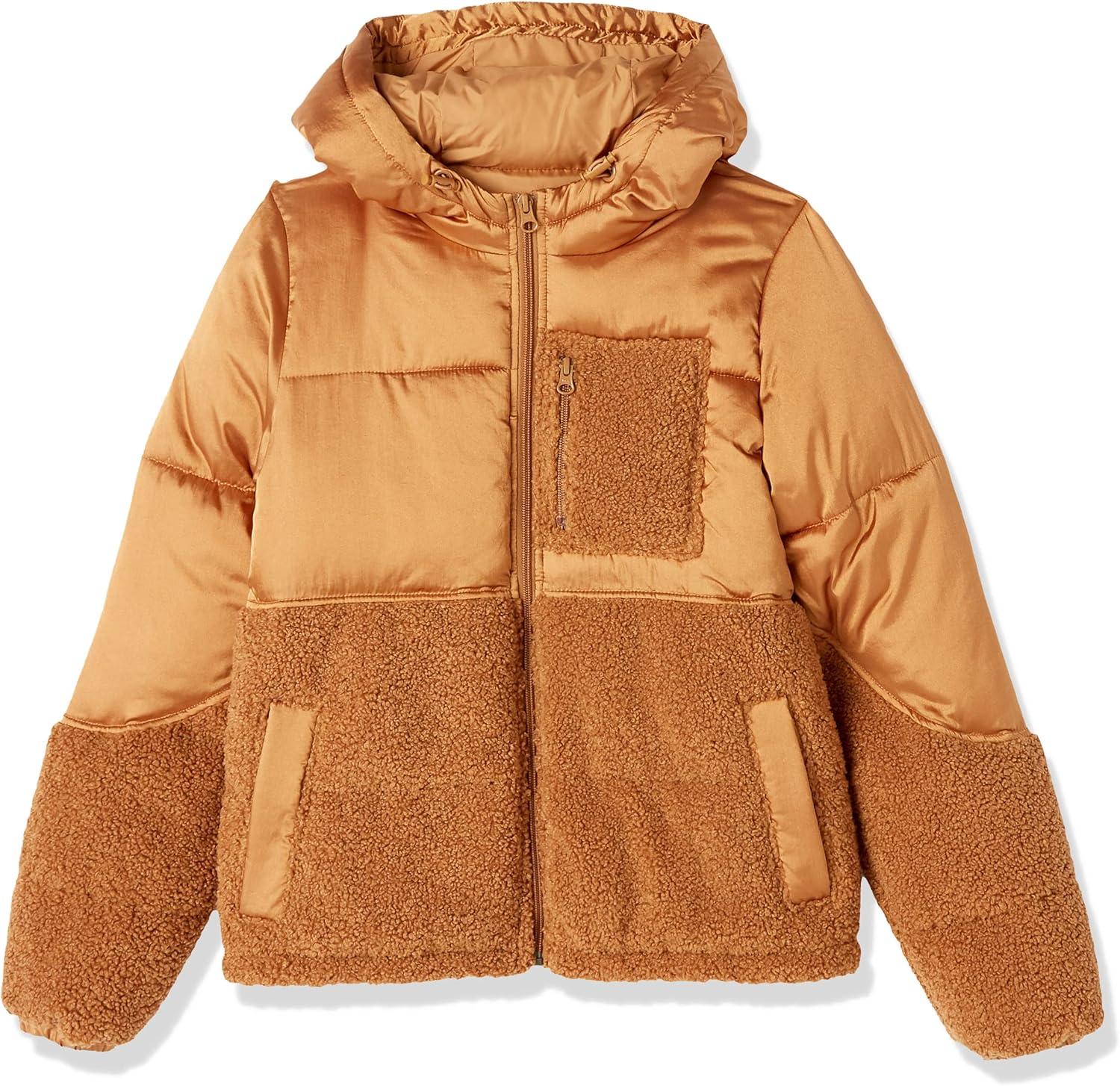 Amazon Essentials womens Full-Zip Sherpa Fleece Hooded Puffer Jacket(Dark Camel)