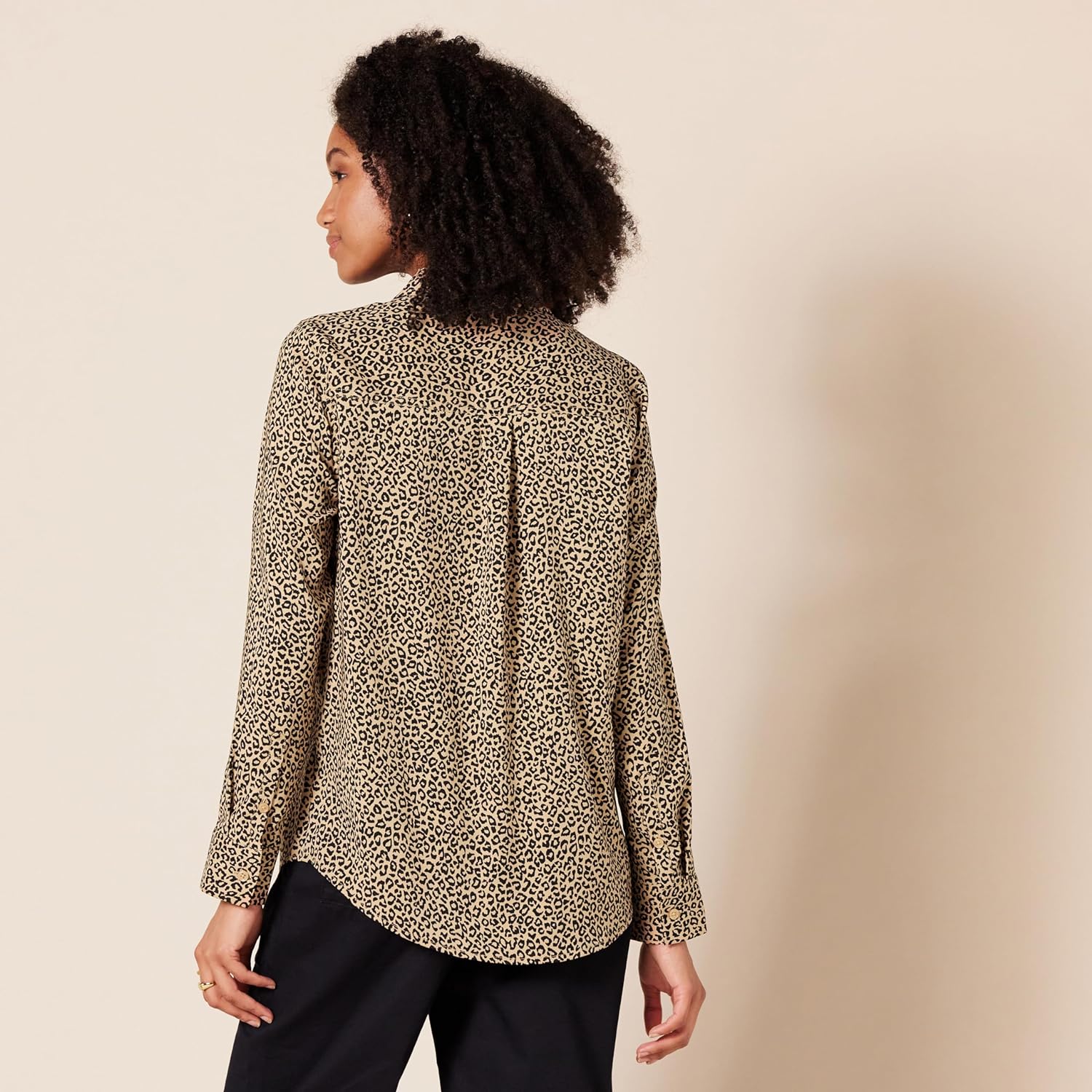 Amazon Essentials Women’s Georgette Long Sleeve Relaxed-Fit Pockets Shirt(Taupe Leopard)