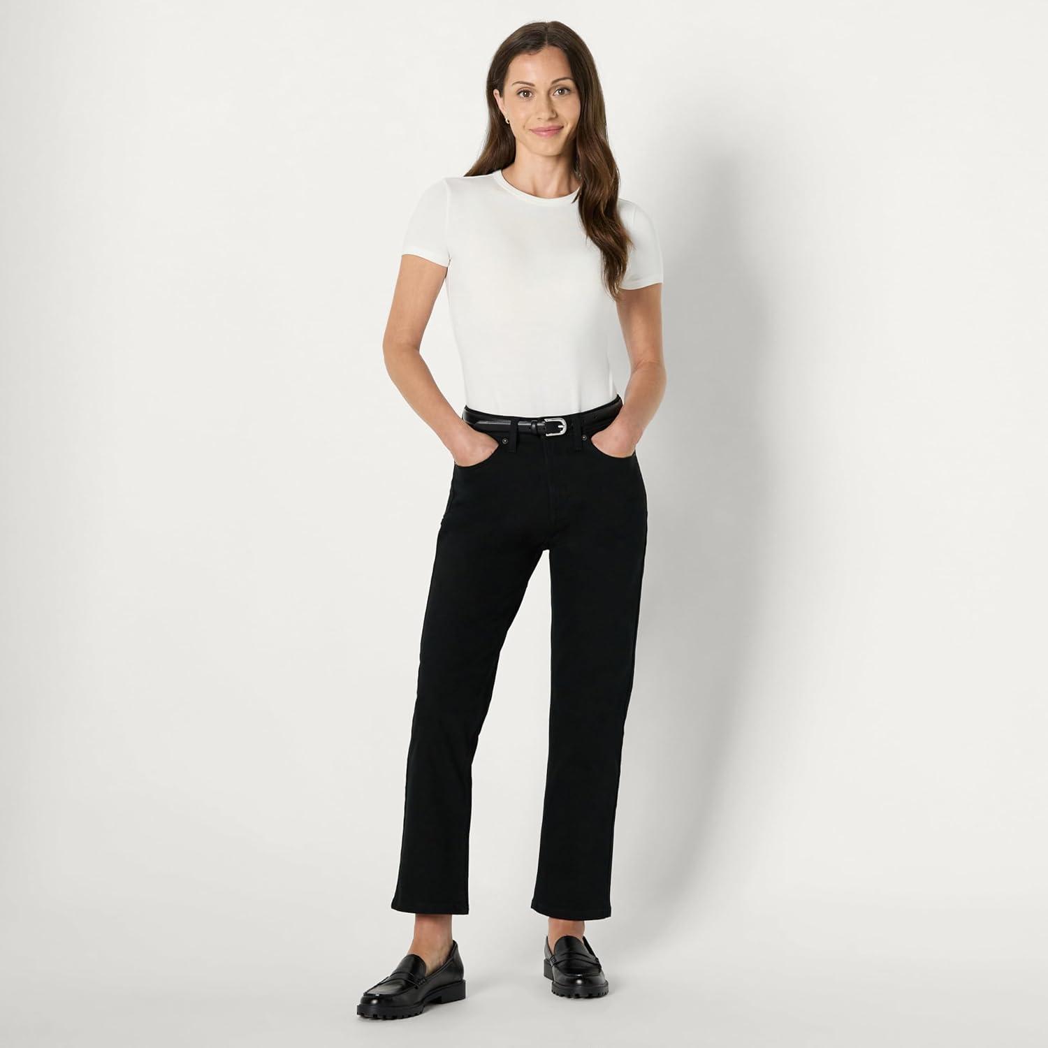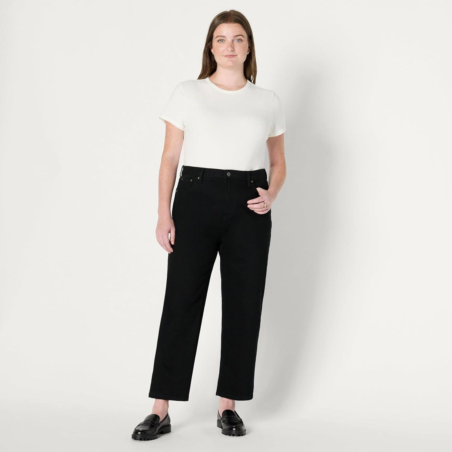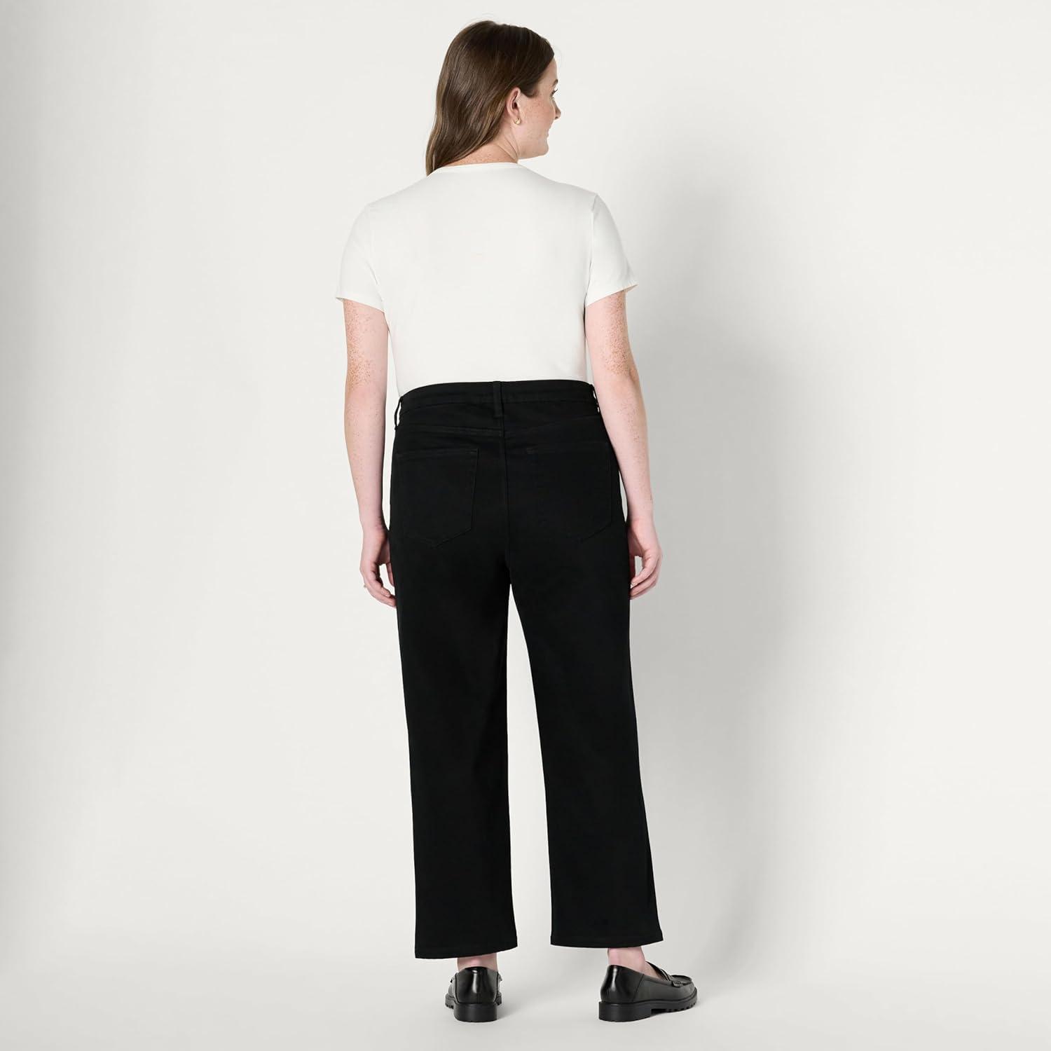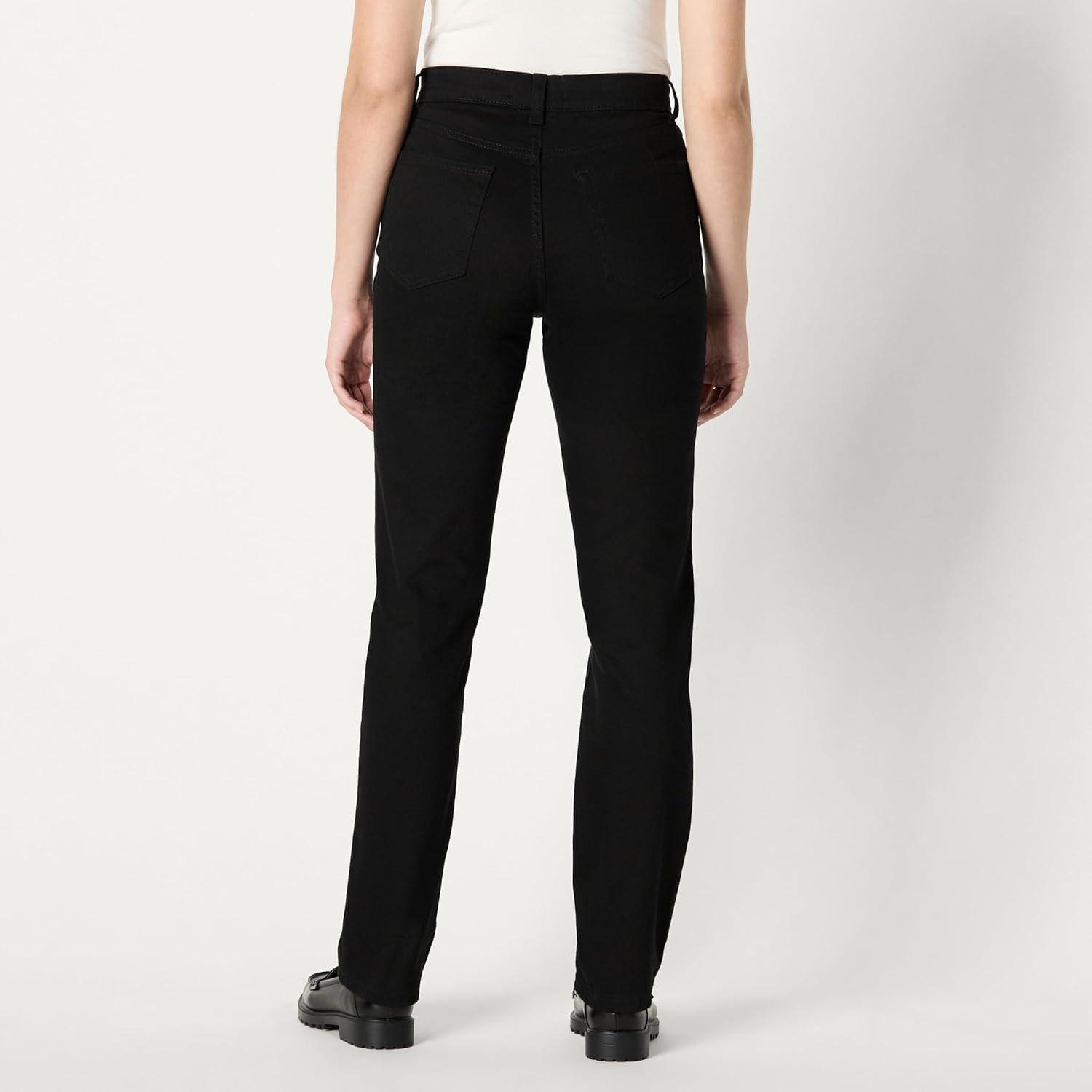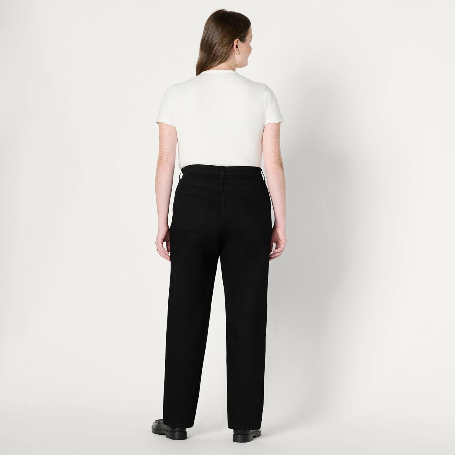 Amazon Essentials Women's High-Rise Straight Leg Jeans(Black)