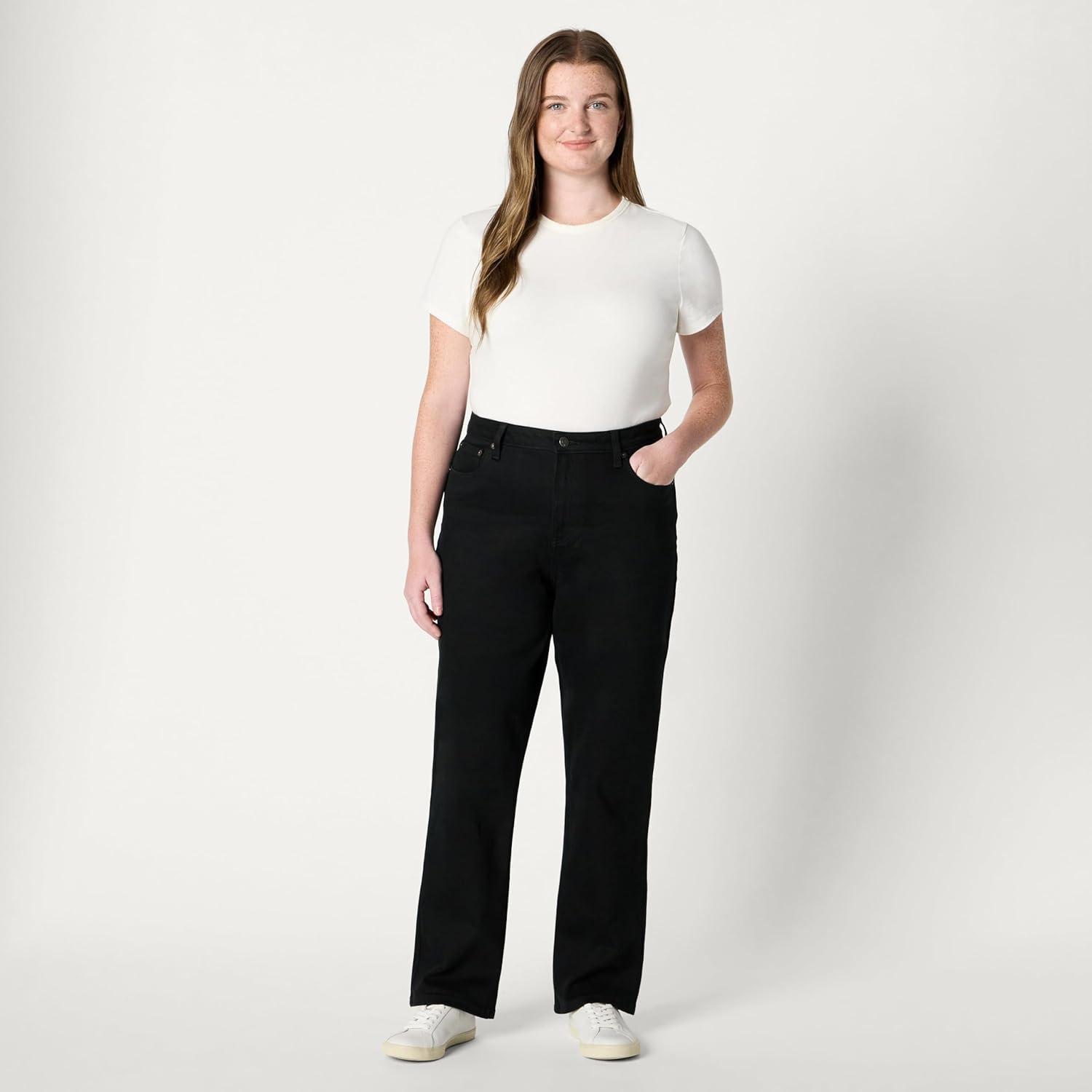 Amazon Essentials Women’s High-Rise Straight Leg Jeans(Black)