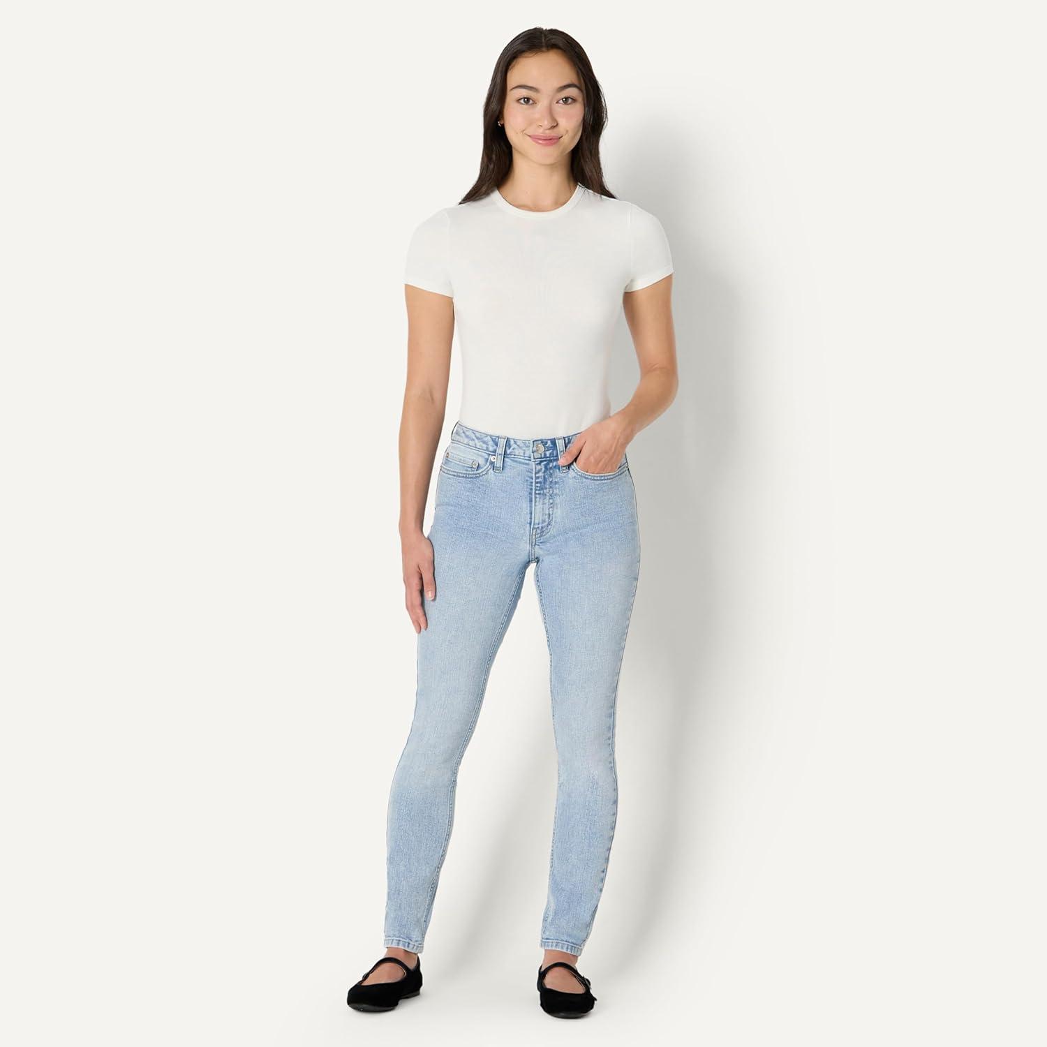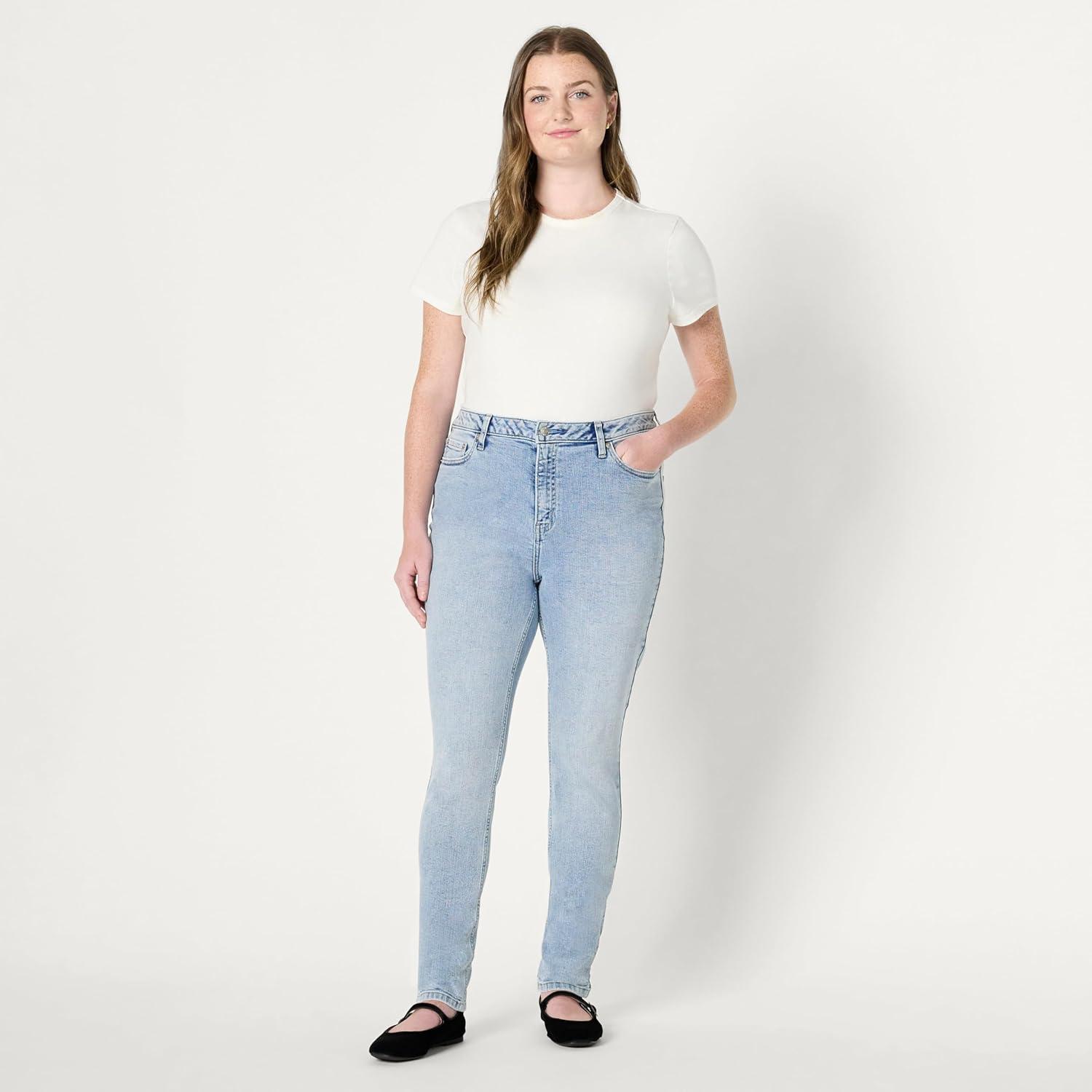Amazon Essentials Women’s High Stretch Mid-Rise Skinny Jeans(Iced Blue Light Wash)