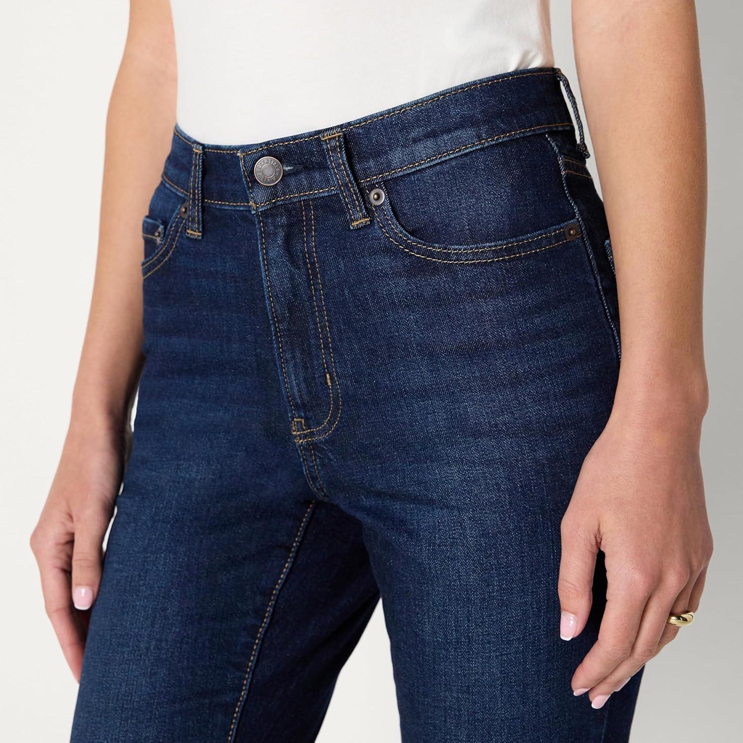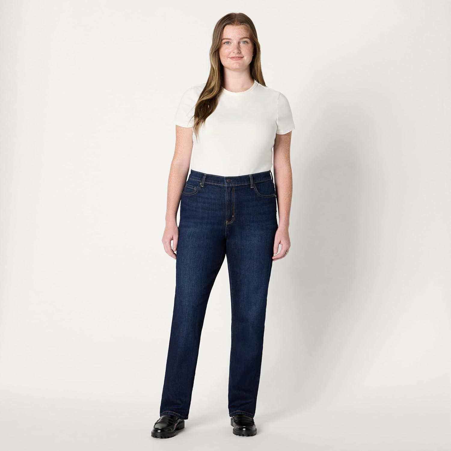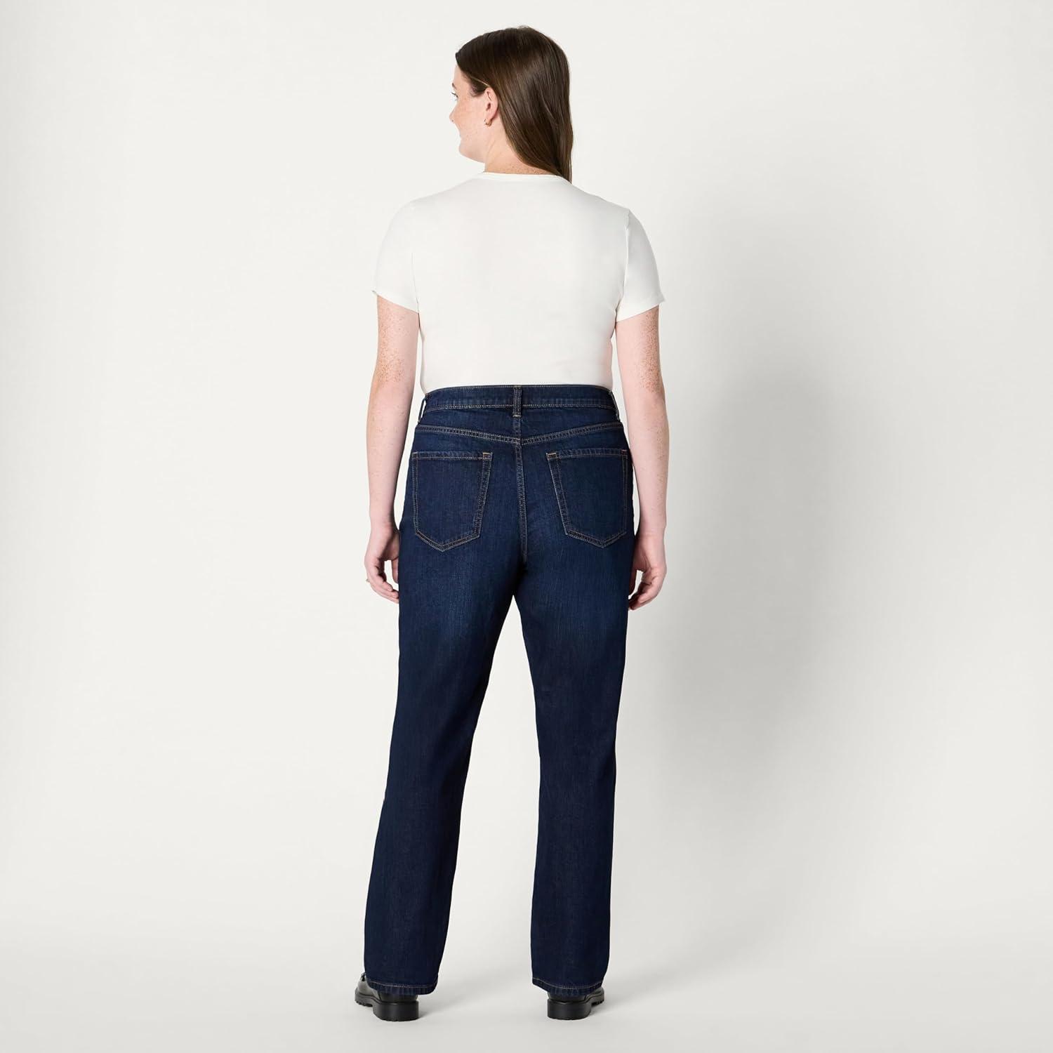 Amazon Essentials Womens Medium Stretch Slim-Fit Mid-Rise Straight Leg Jean(Dark Wash)