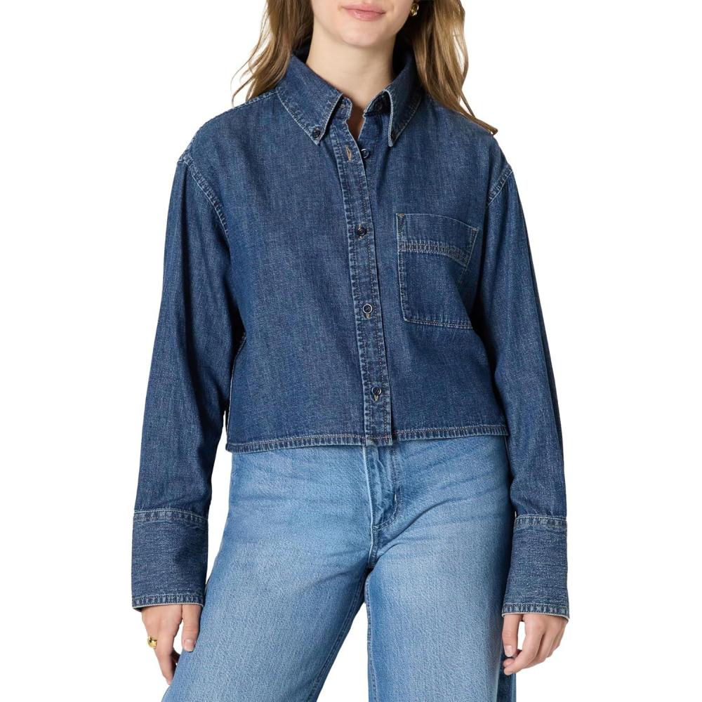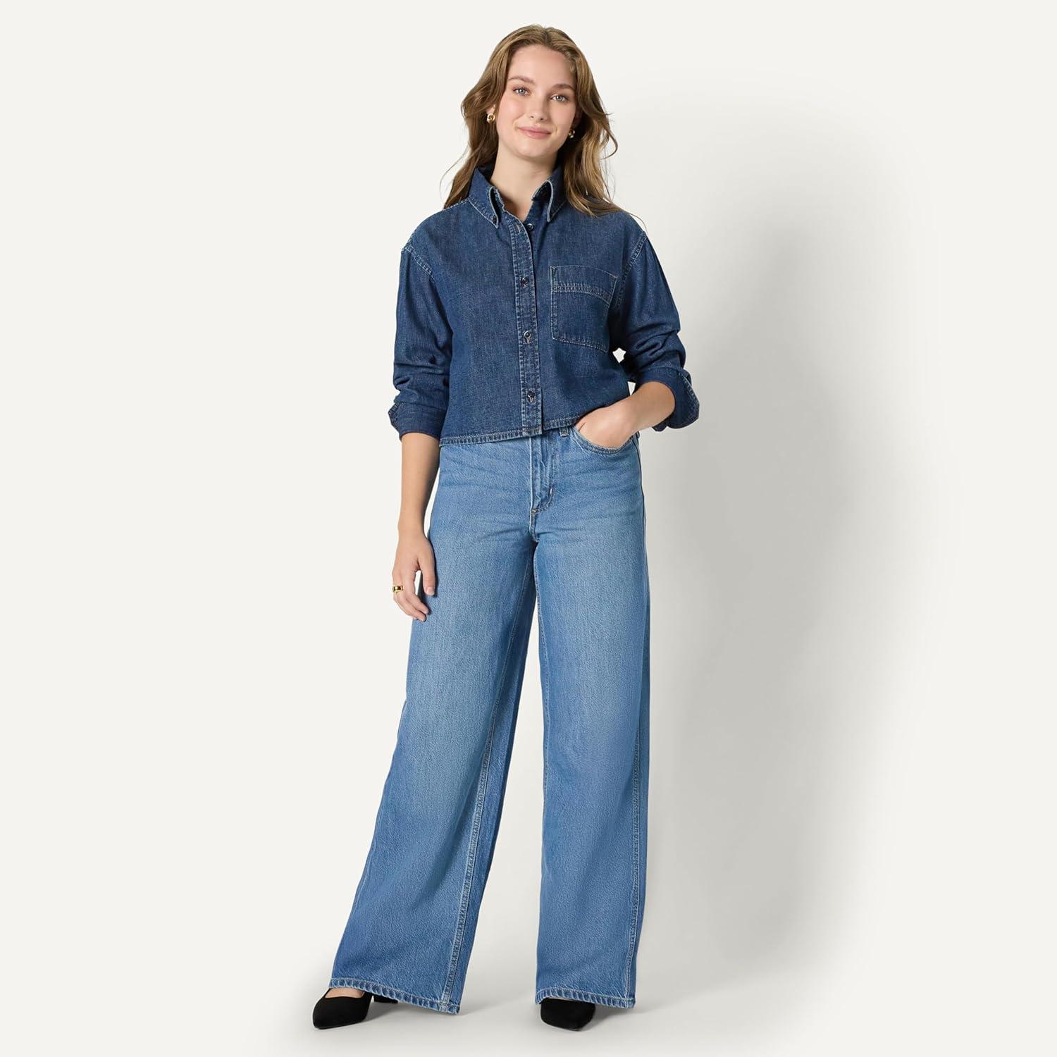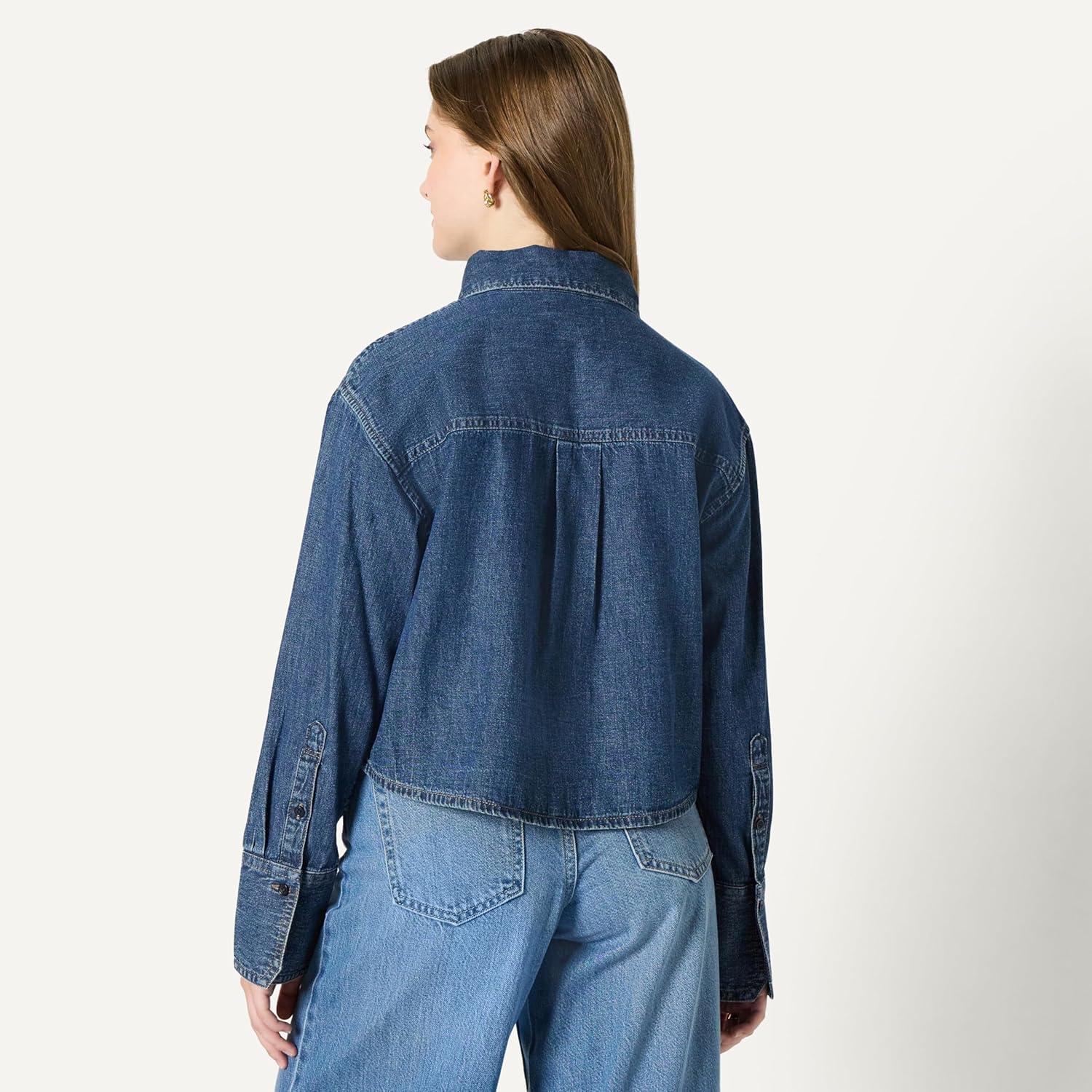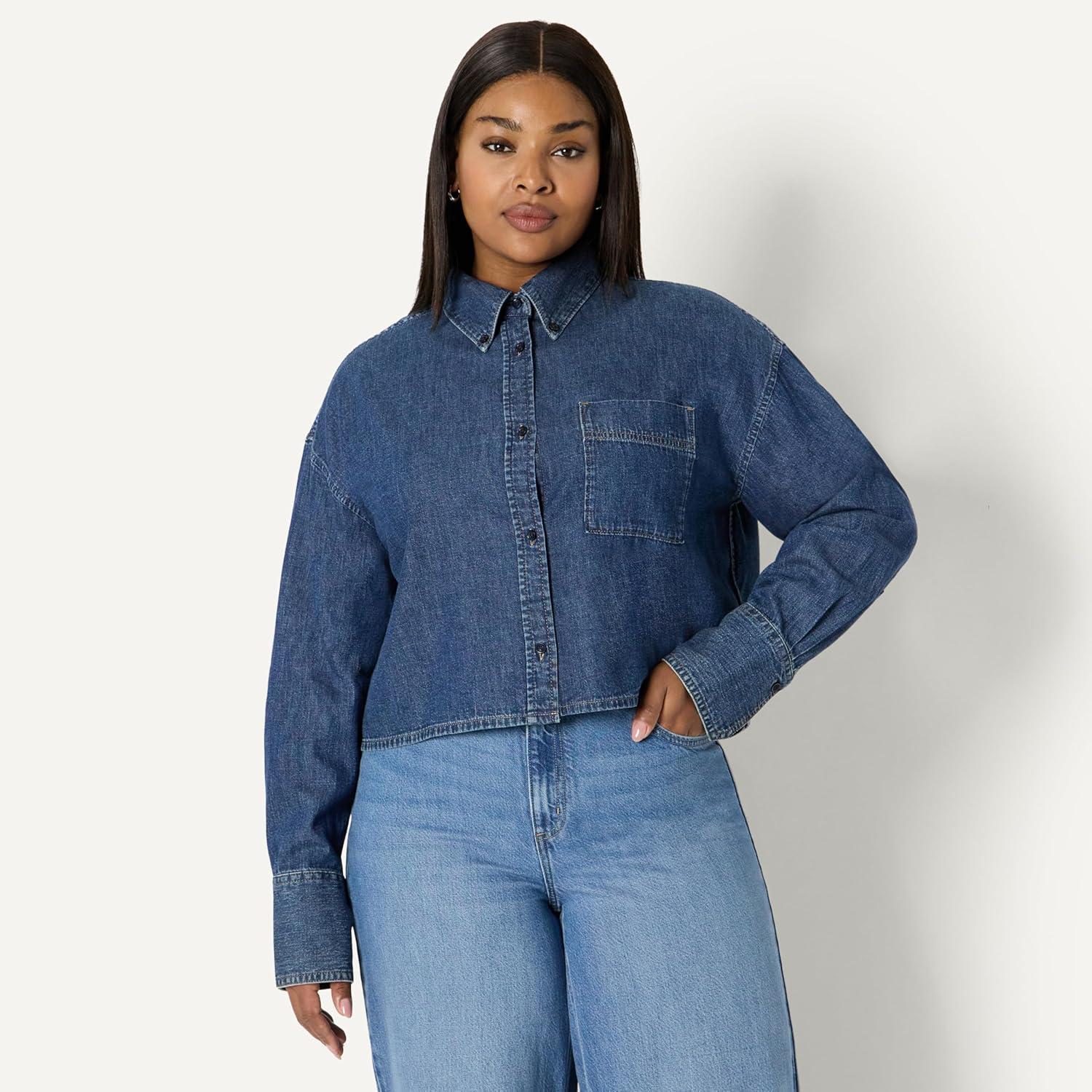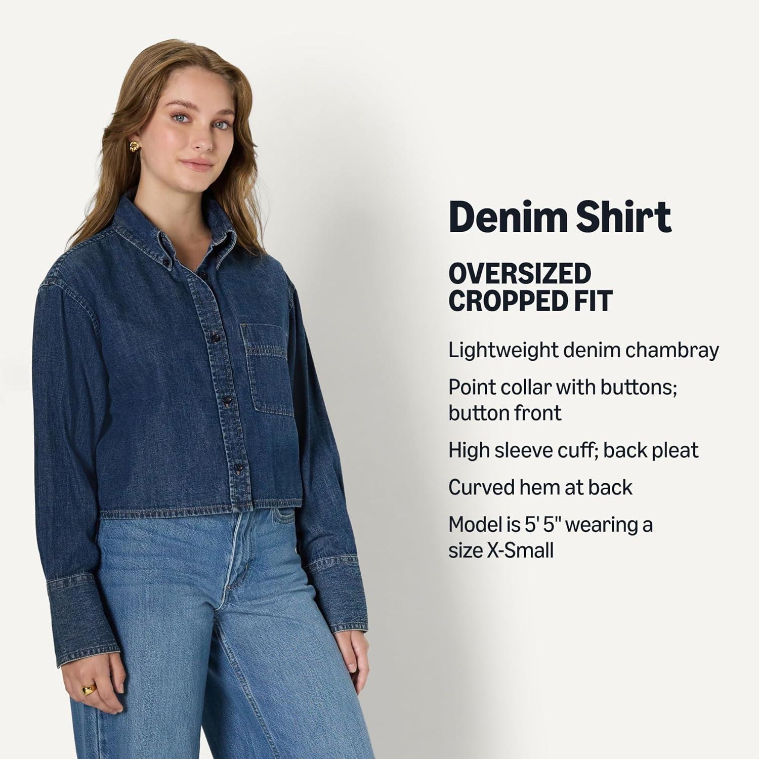 Amazon Essentials Women’s Modern Oversized-Fit Cropped Denim Button-Down Shirt(Rinse)