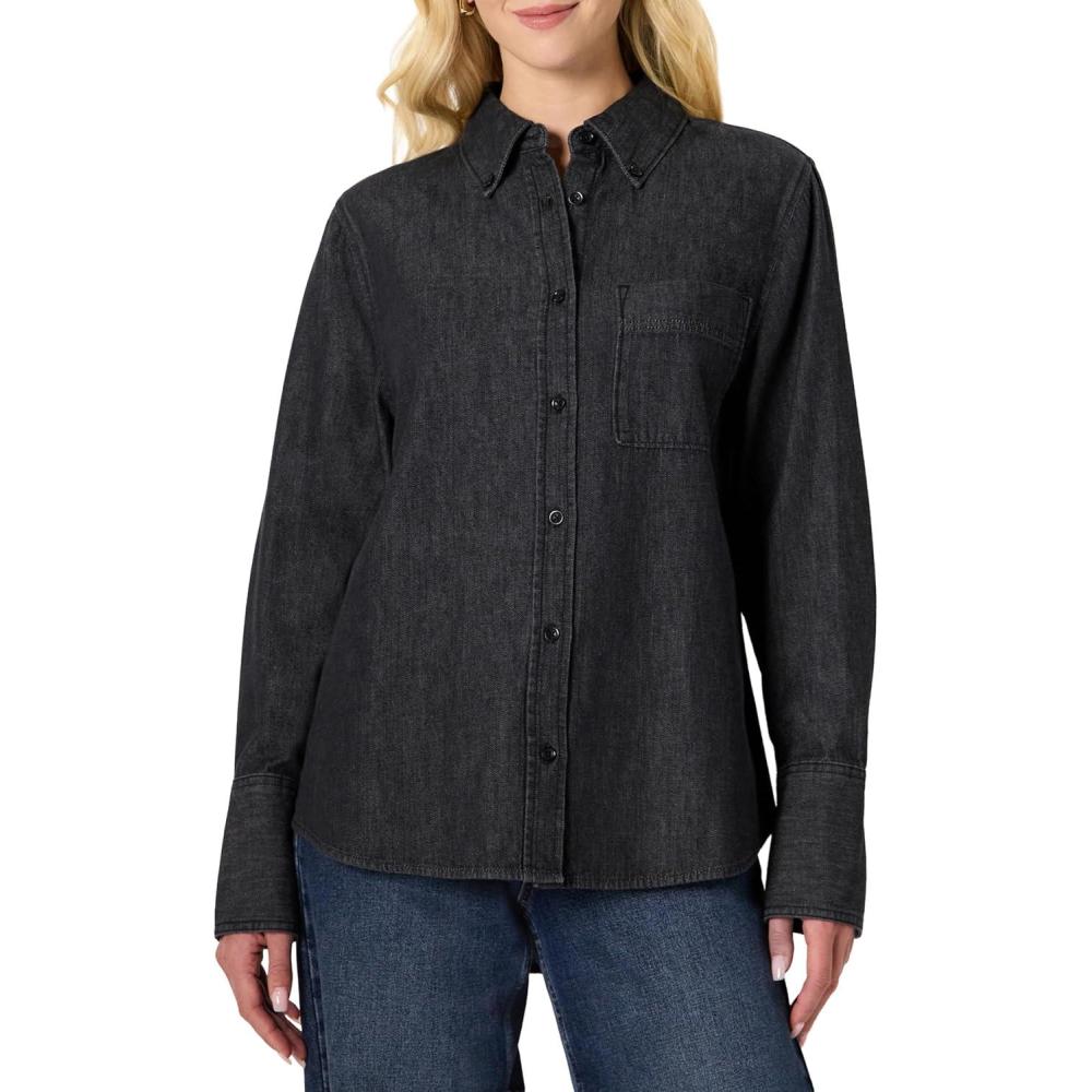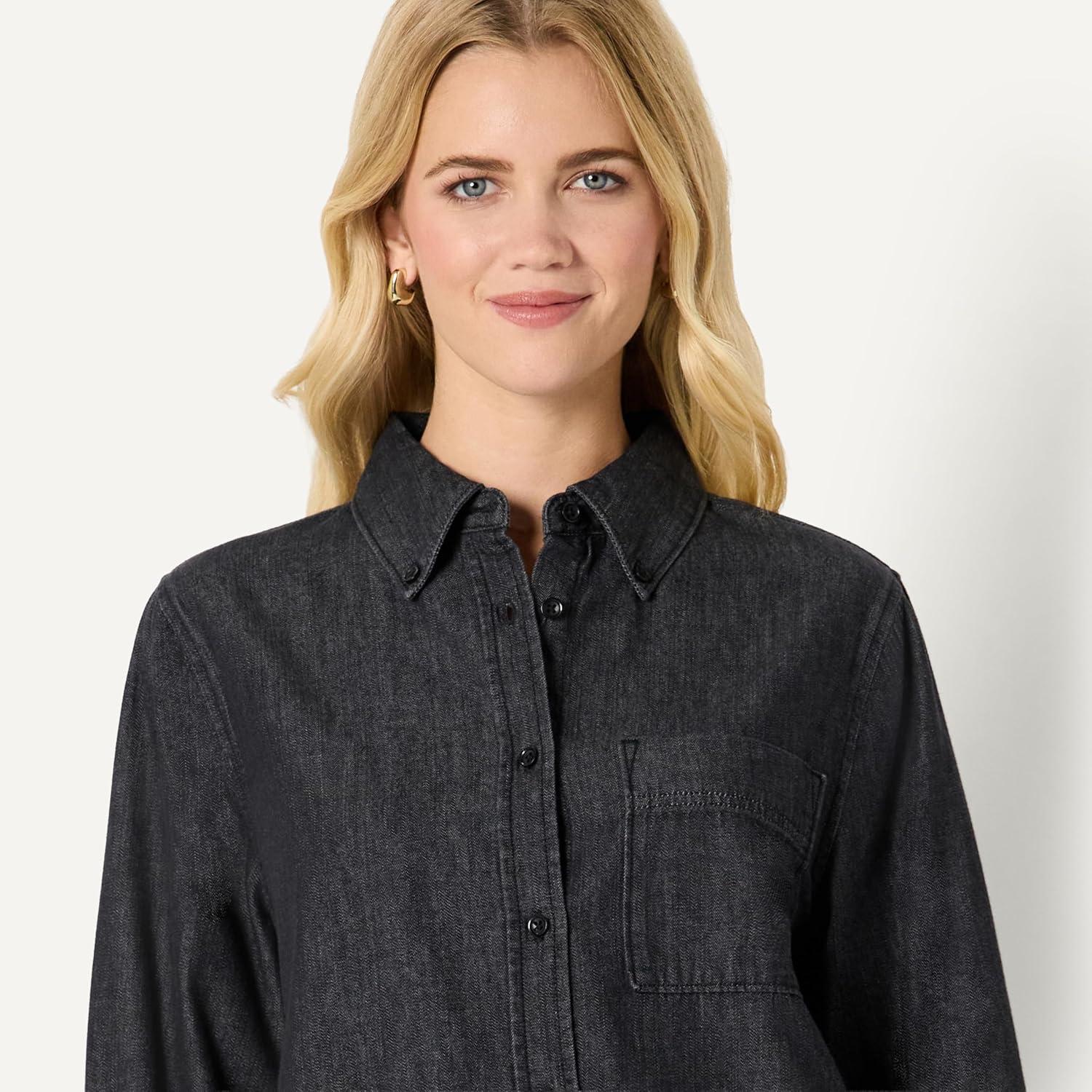 Amazon Essentials Women's Oversized-Fit Denim Button-Down Shirt(Black)