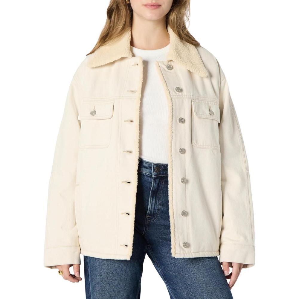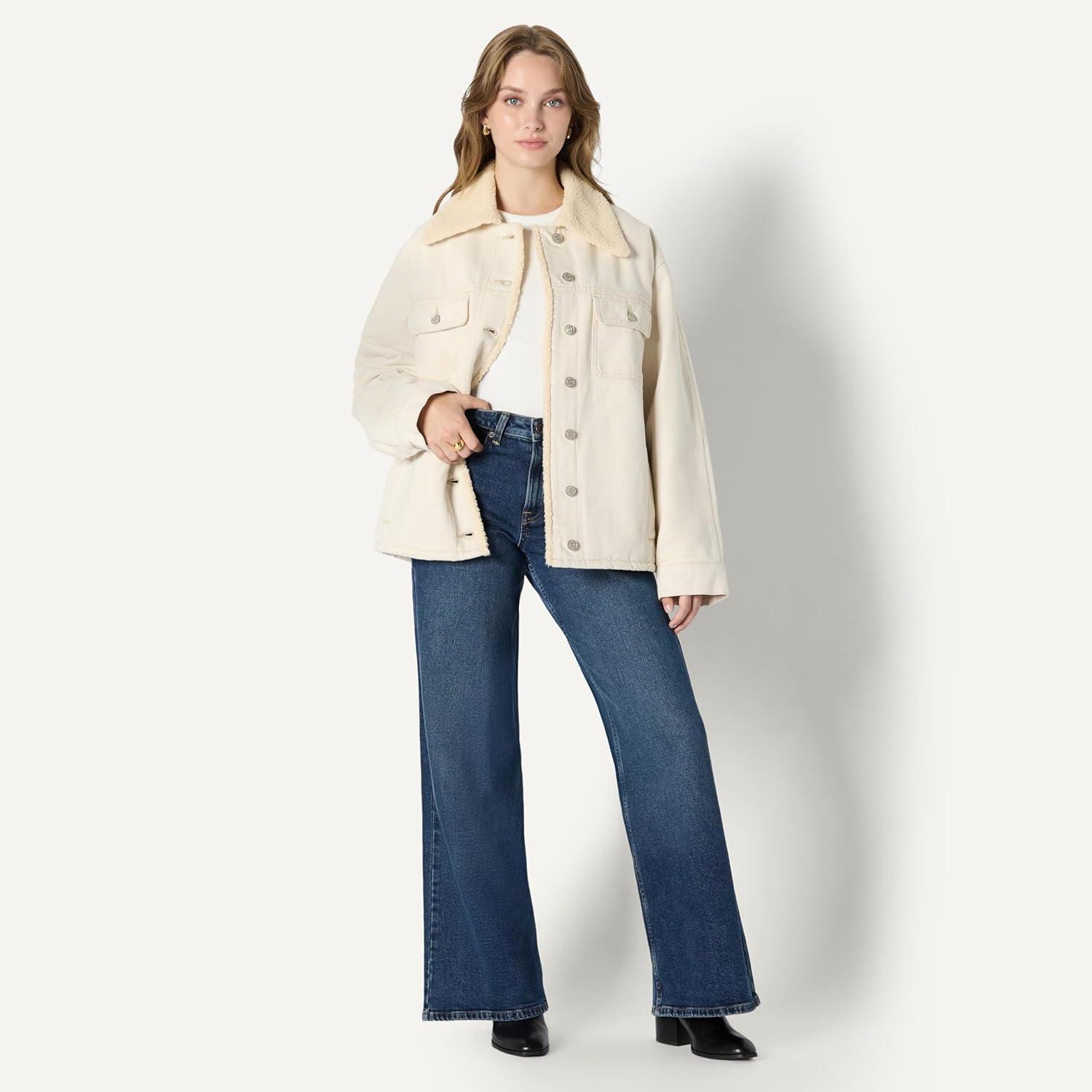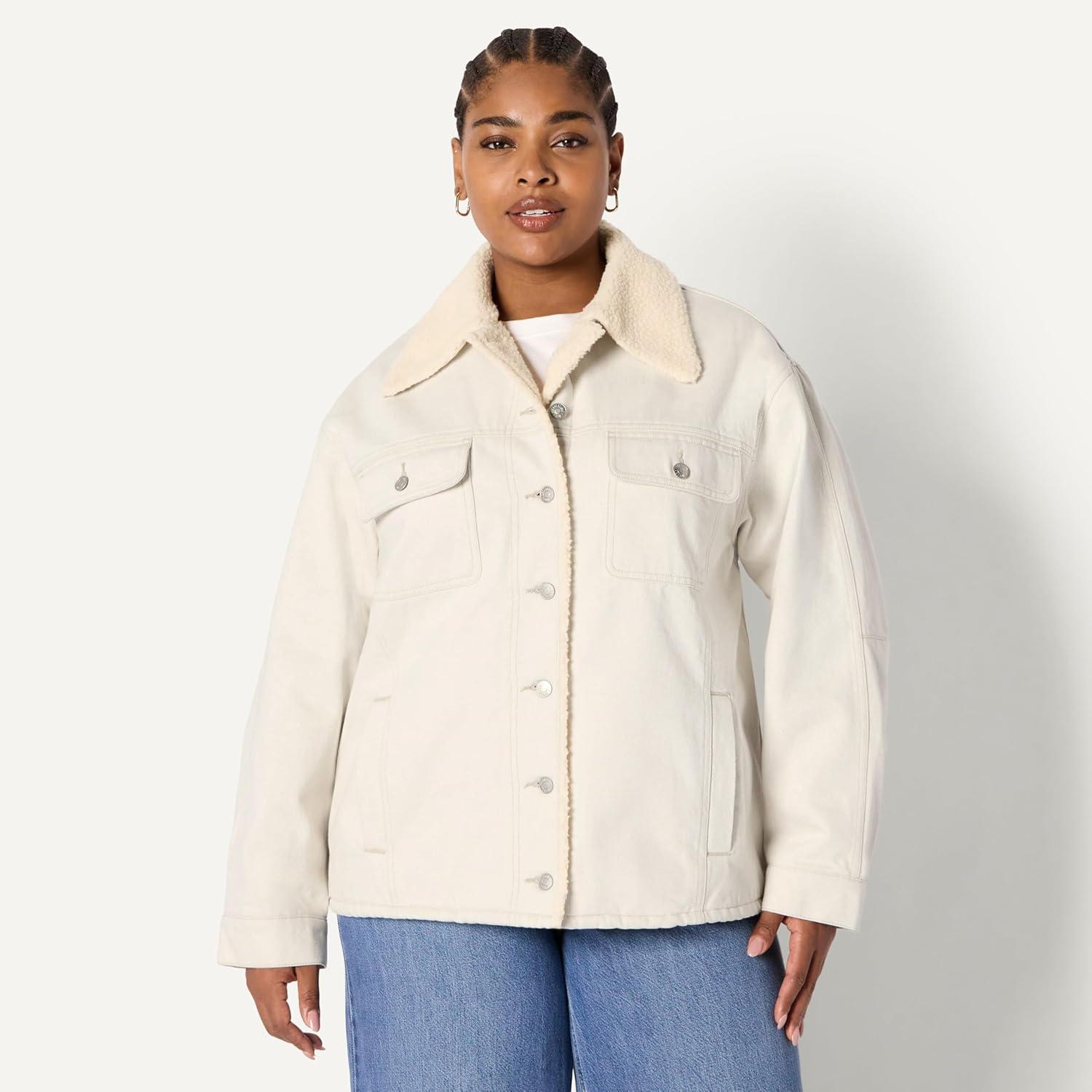 Amazon Essentials Womens Oversized-Fit Faux-Shearling Lined Denim Jacket(Ecru)