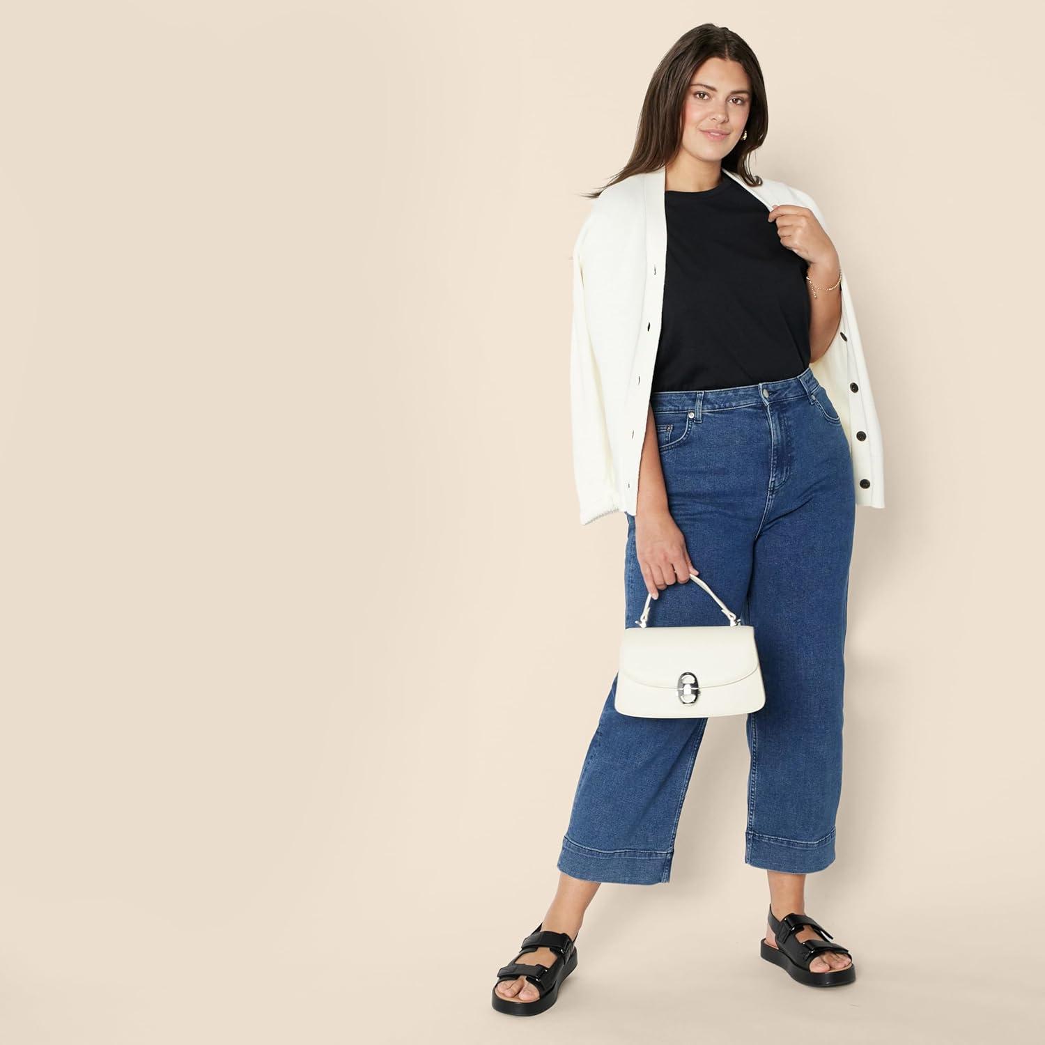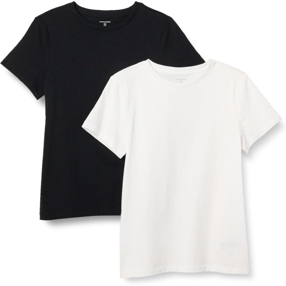 Amazon Essentials Womens Regular Fit 100% Cotton Crewneck Short Sleeve T-Shirt(Black/White)