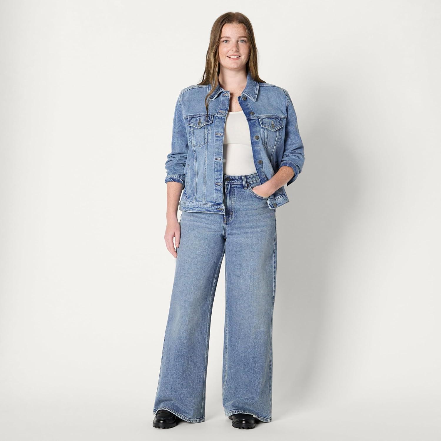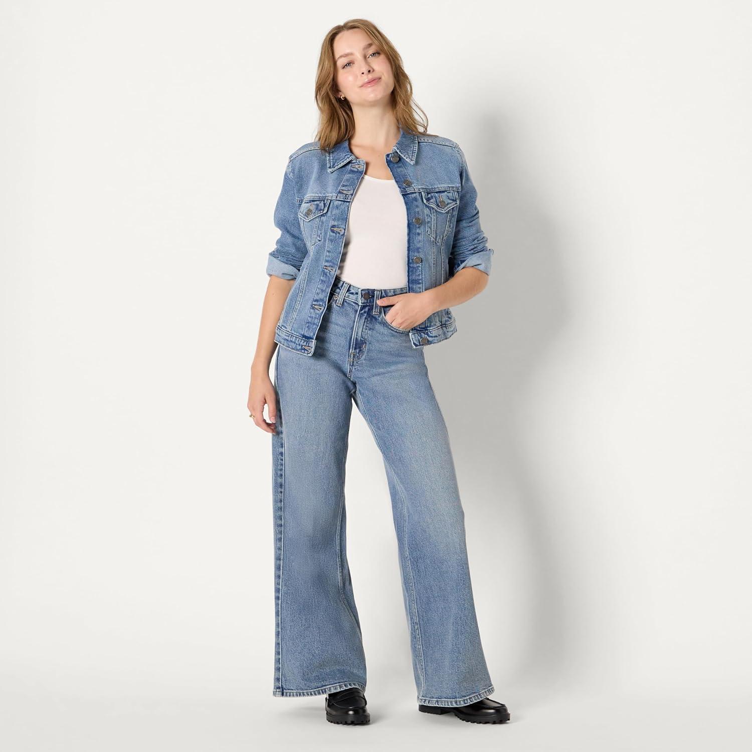 Amazon Essentials Women’s Regular-Fit Low Stretch Denim Button-Front Trucker Jacket(Authentic Medium Wash)