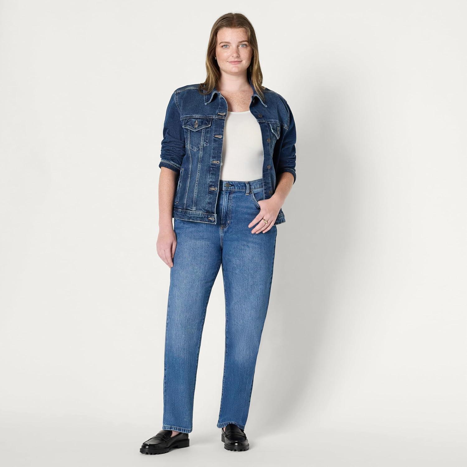 Amazon Essentials Women’s Regular-Fit Low Stretch Denim Button-Front Trucker Jacket(Iced Light Wash)