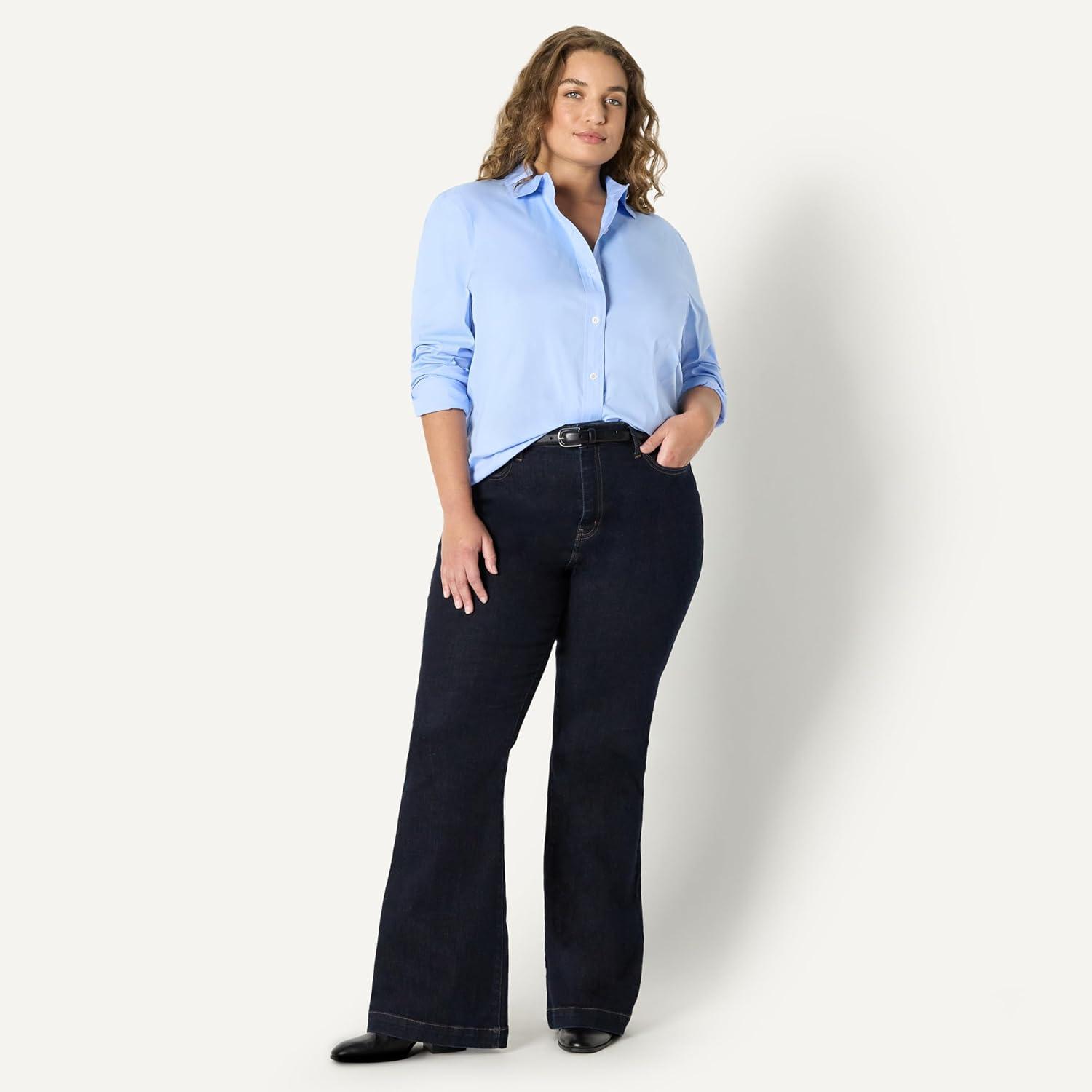 Amazon Essentials Women’s Regular-Fit Stretch Poplin Button-Up Dress Shirt(Navy)