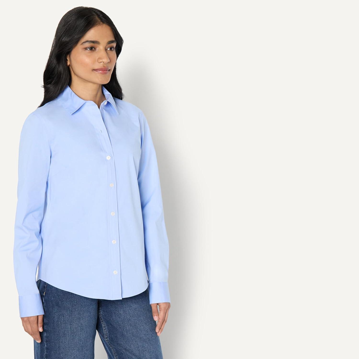 Amazon Essentials Women’s Regular-Fit Stretch Poplin Button-Up Dress Shirt(Powder Blue)