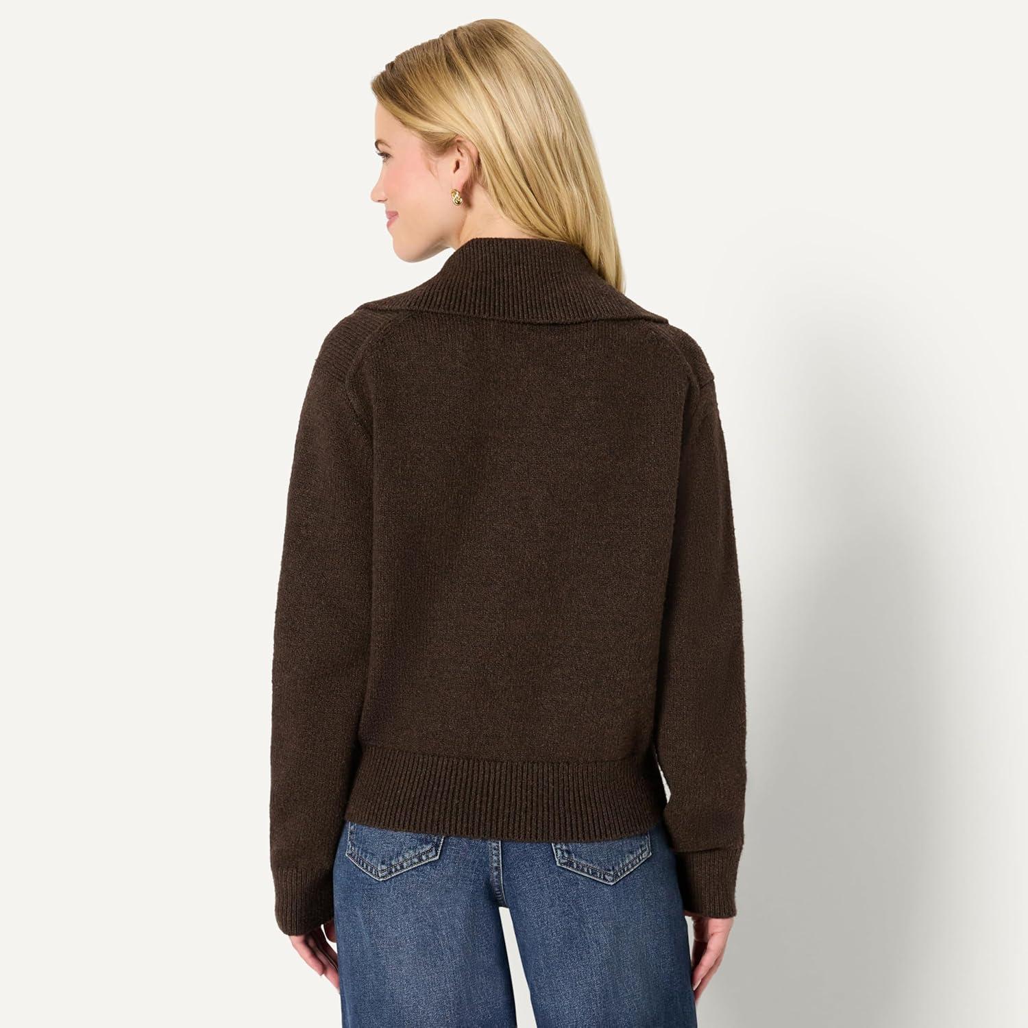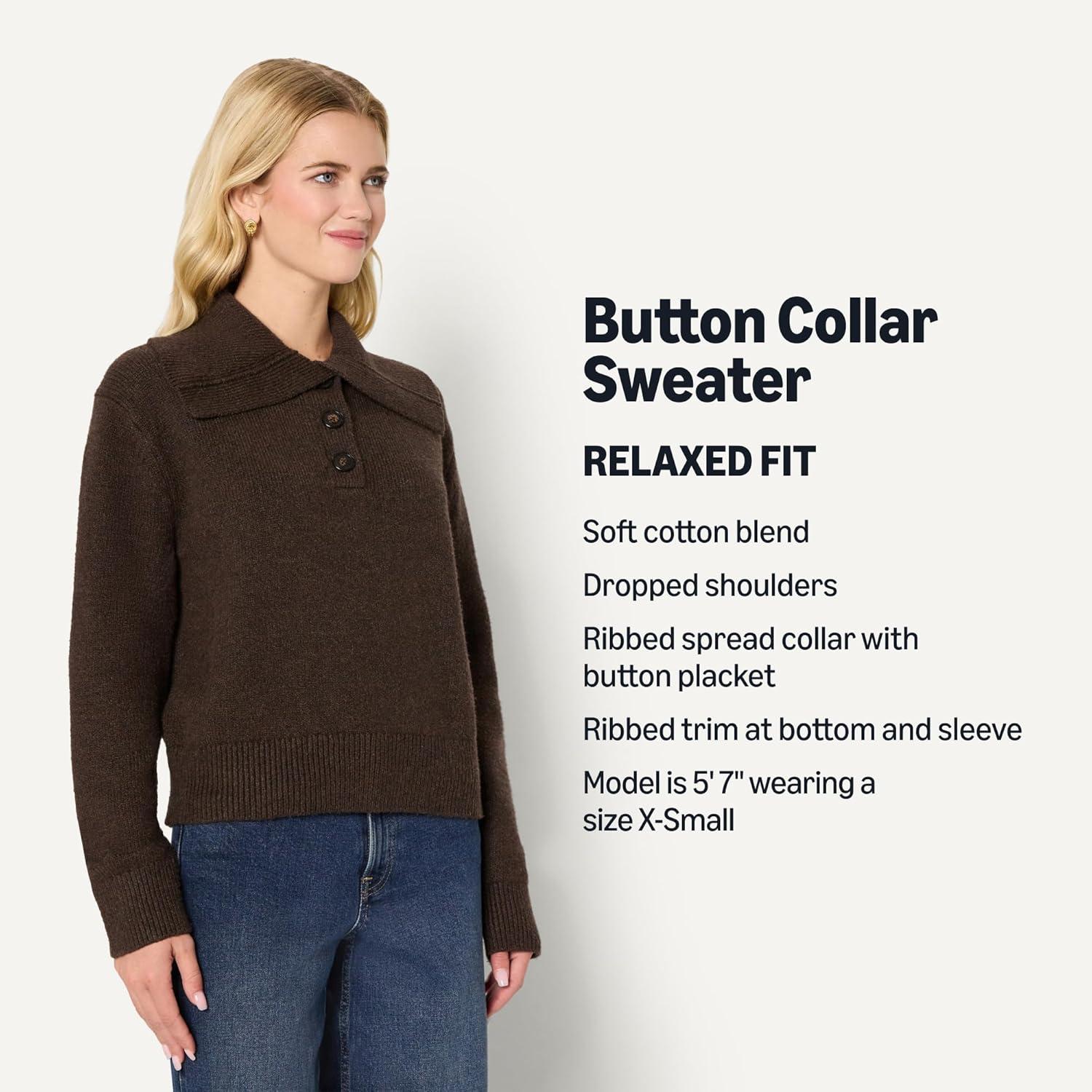Amazon Essentials Womens Relaxed-Fit Button Collar Sweater(Chocolate Heather)