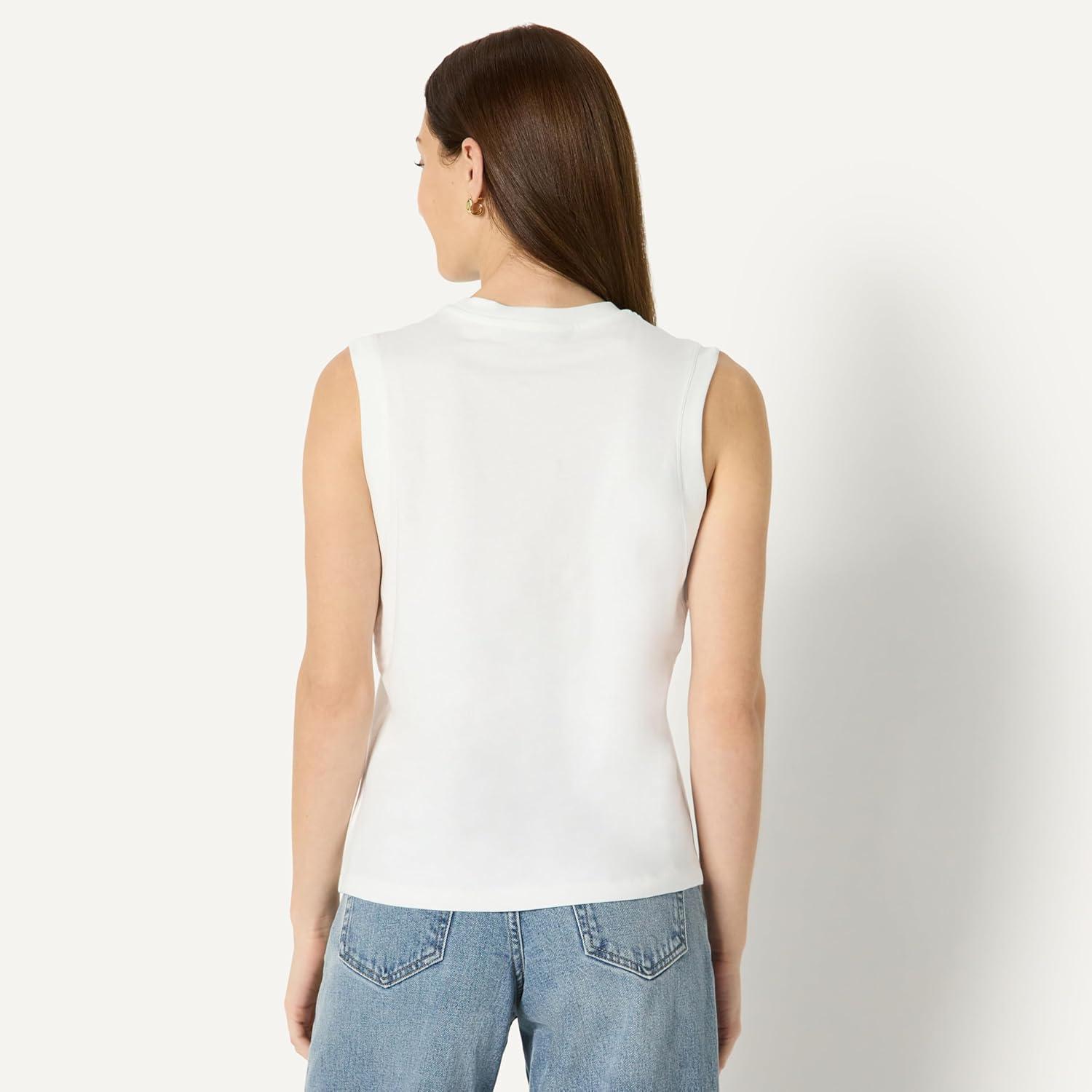 Amazon Essentials Women’s Relaxed-Fit Cotton Muscle Tee(White)