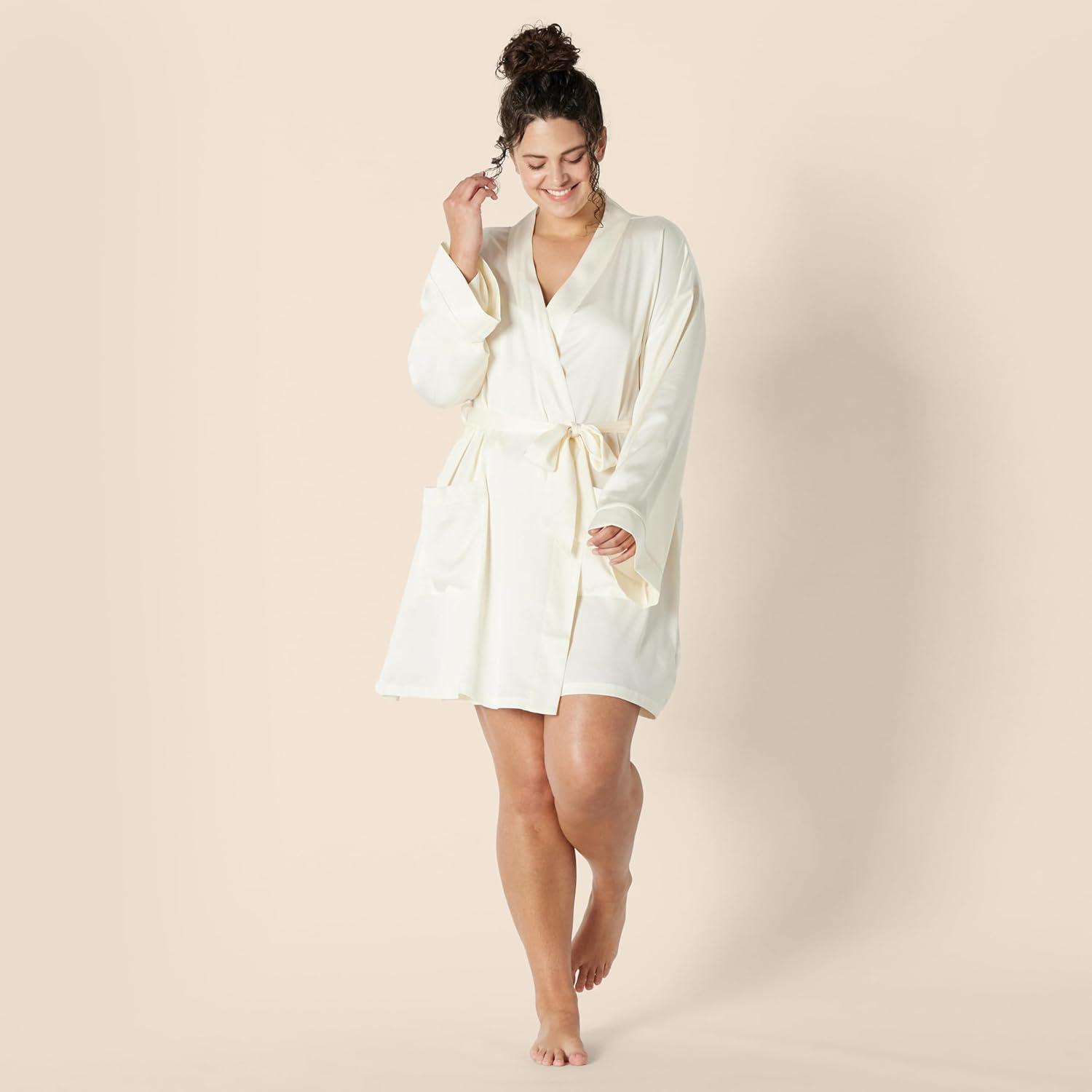 Amazon Essentials Women's Relaxed-Fit Satin Sleep Robe(Ivory)