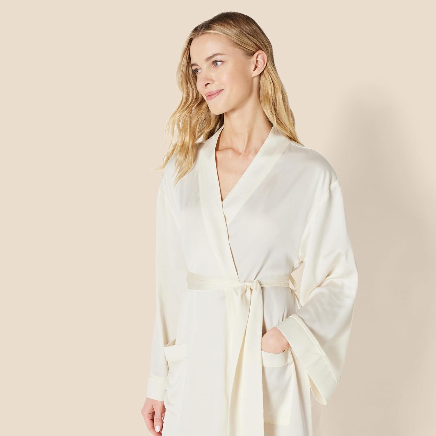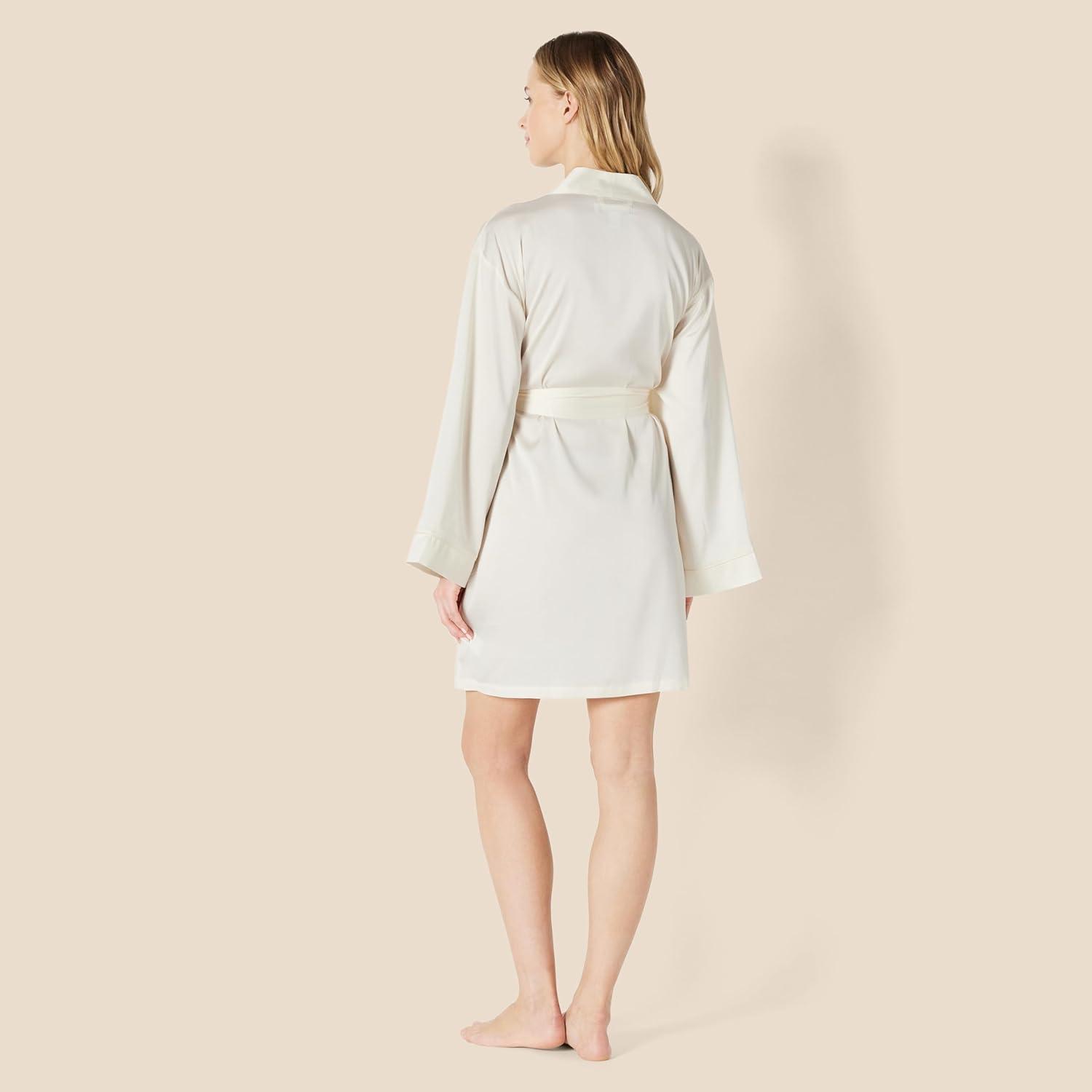 Amazon Essentials Women’s Relaxed-Fit Satin Sleep Robe(Ivory)