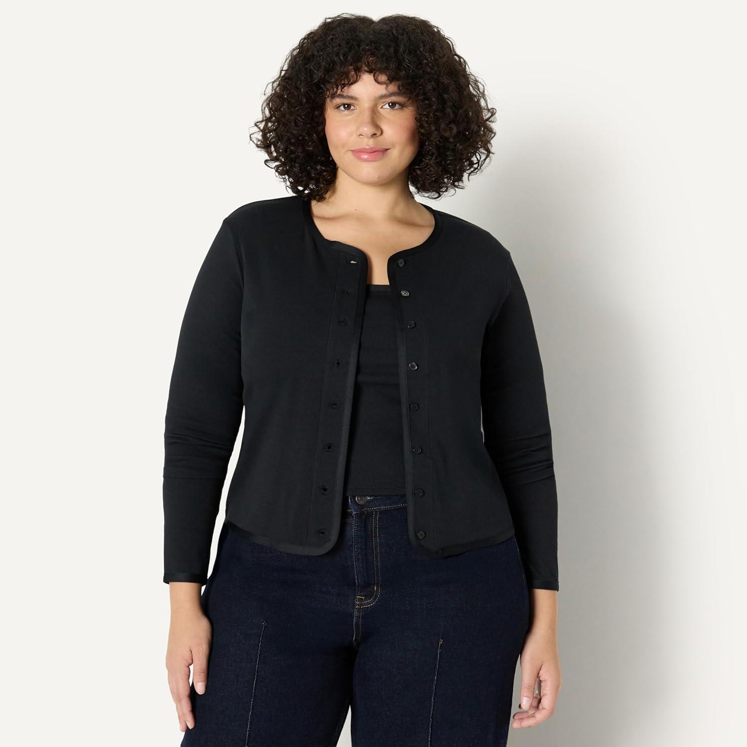 Amazon Essentials Women’s Slim-Fit Ribbed Cardigan & Cami Set with Removable Straps(Black)