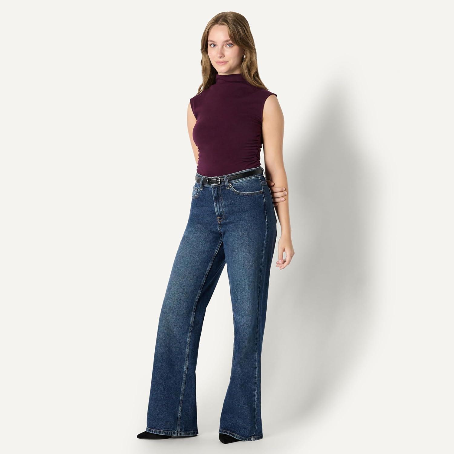 Amazon Essentials Women’s Slim-Fit Sleeveless High-Neck Top(Burgundy)